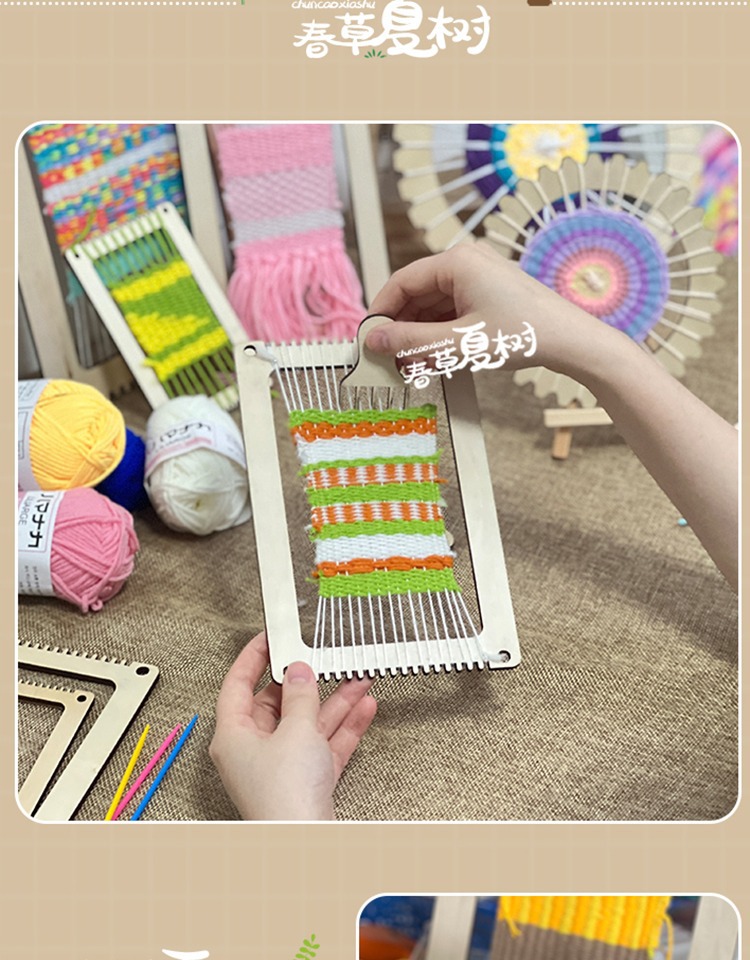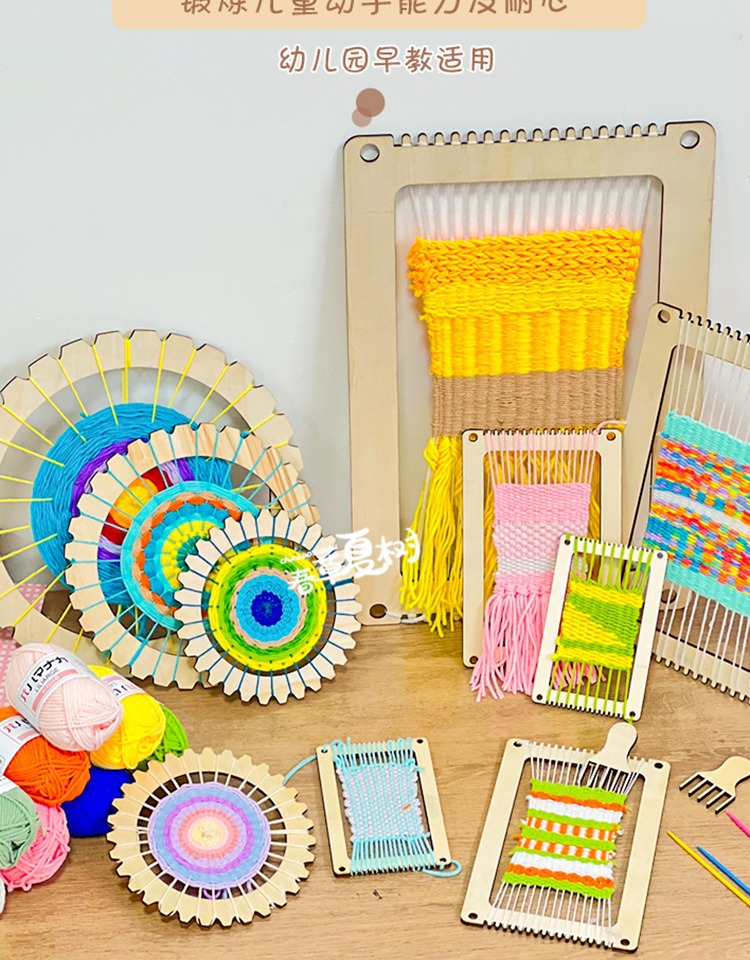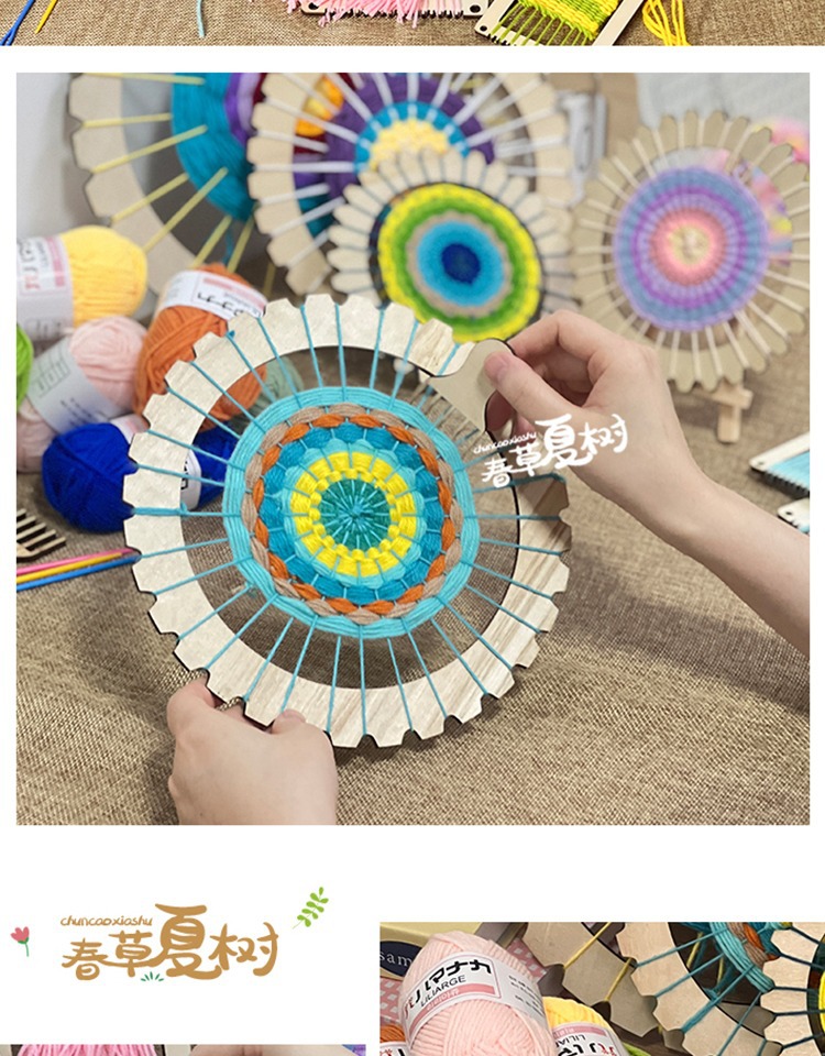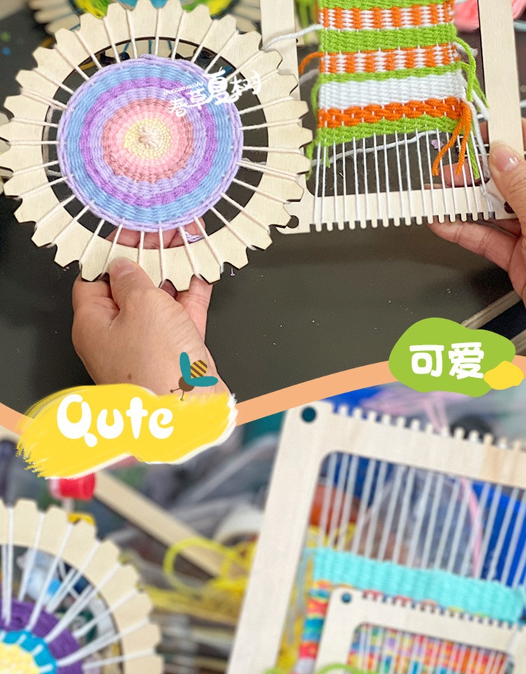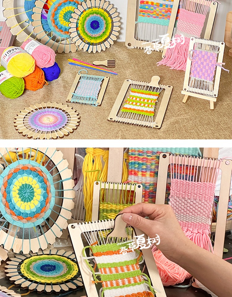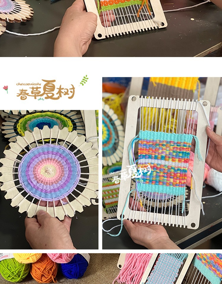개학 시즌 어린이 DIY 수제 재료 패키지 나무 직기 유치원 지역 양모 뜨개질 우산 팬 장난감스토어 가기