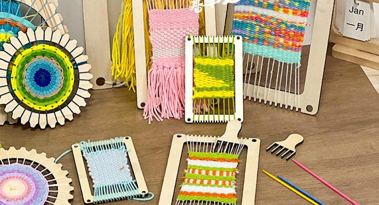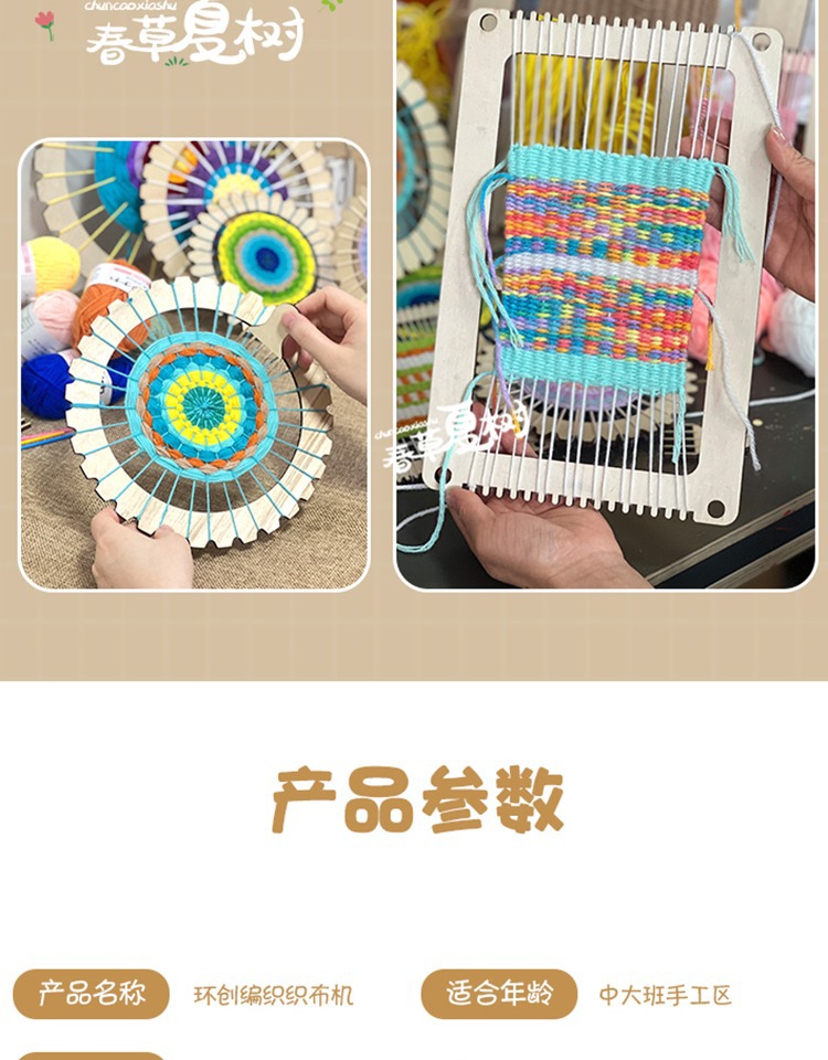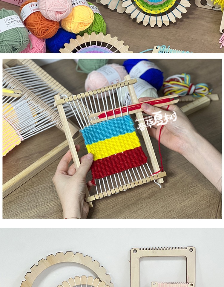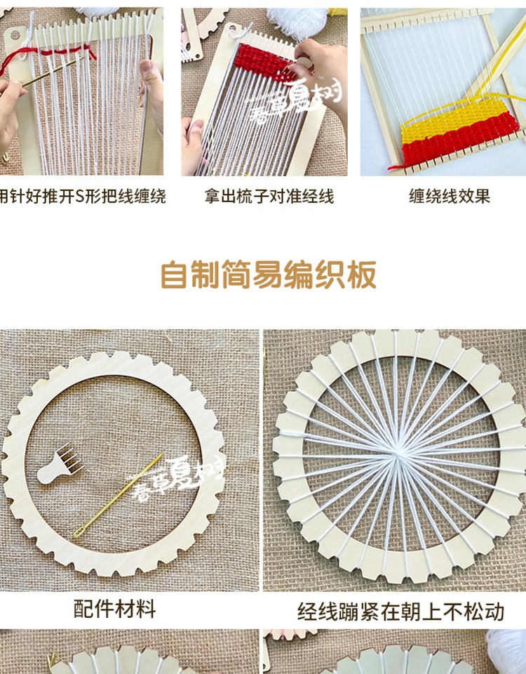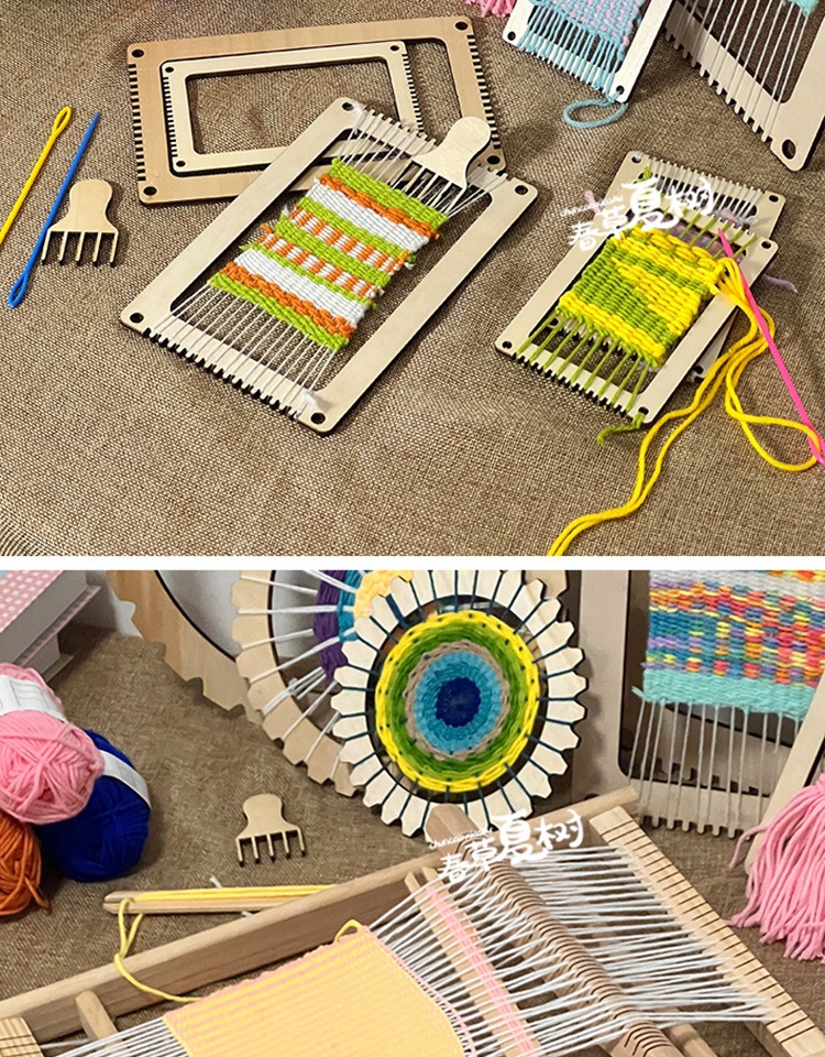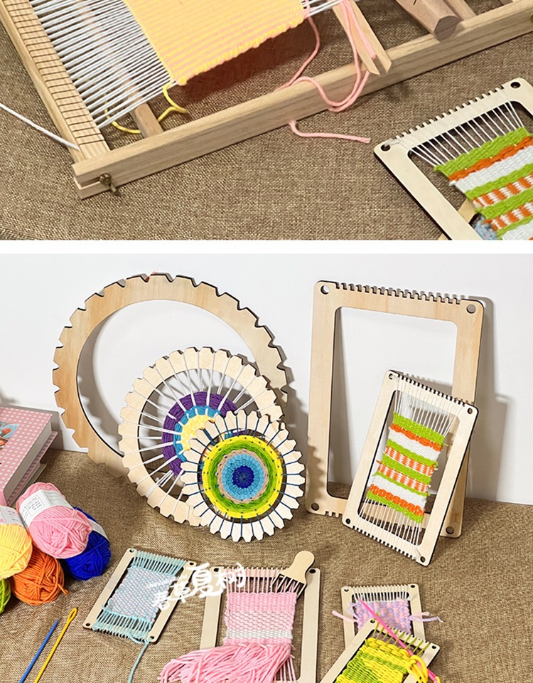 개학 시즌 어린이 DIY 수제 재료 패키지 나무 직기 유치원 지역 양모 뜨개질 우산 팬 장난감스토어 가기
