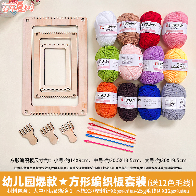 • ★ 유치원 핫 아이템 ★ 사각 우븐 보드 세트에는 12가지 색상의 울이 포함되어 있습니다.