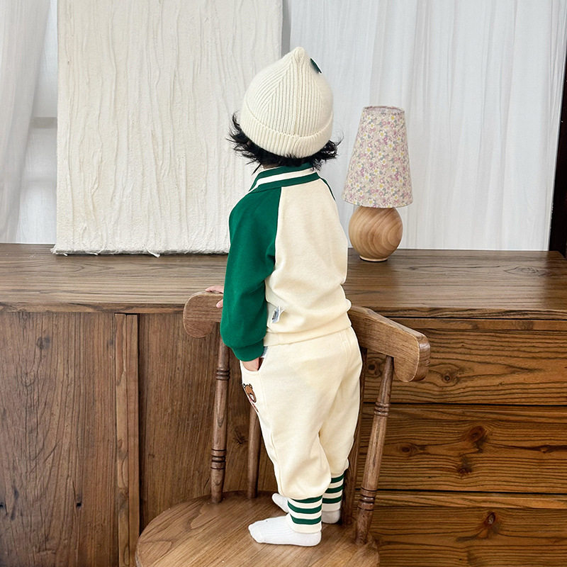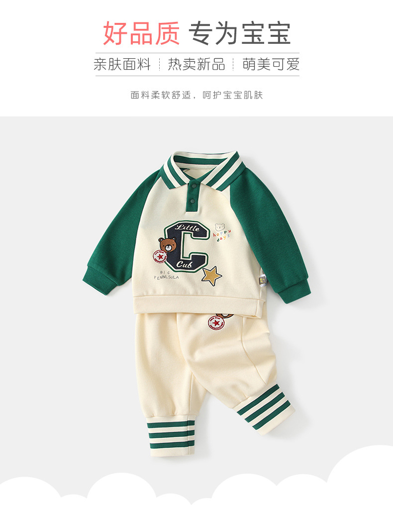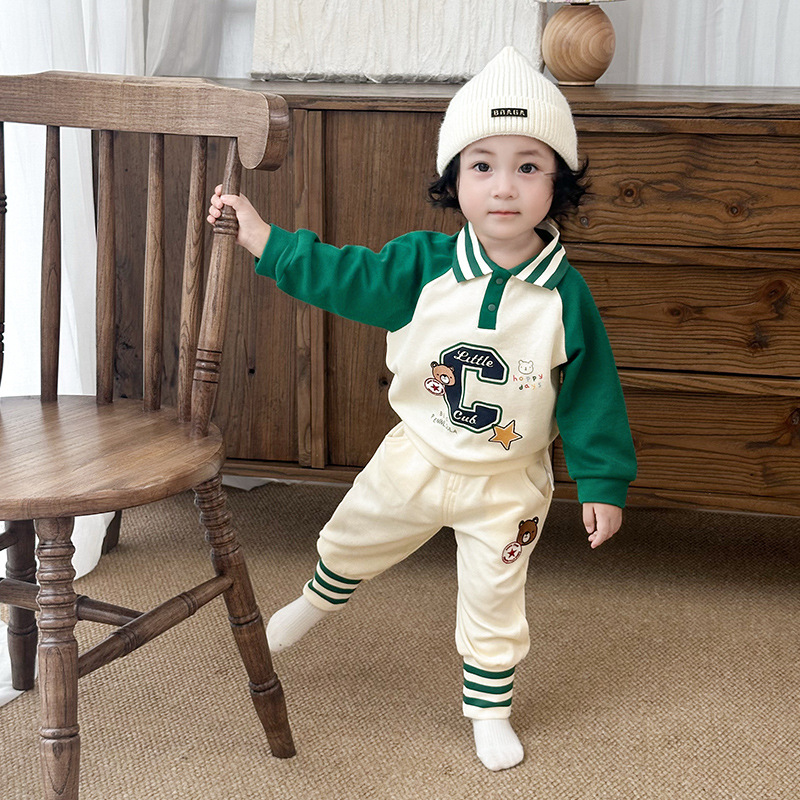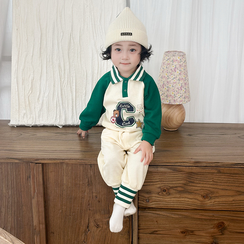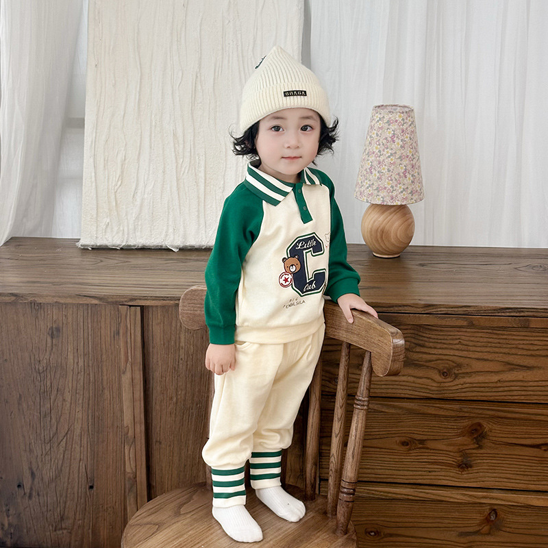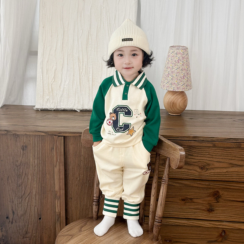아동복 2025 가을 신제품 아기 소년 정장 서양식 옷깃 곰 소년 옷 스플릿 스웨트 셔츠 투피스 세트스토어 가기