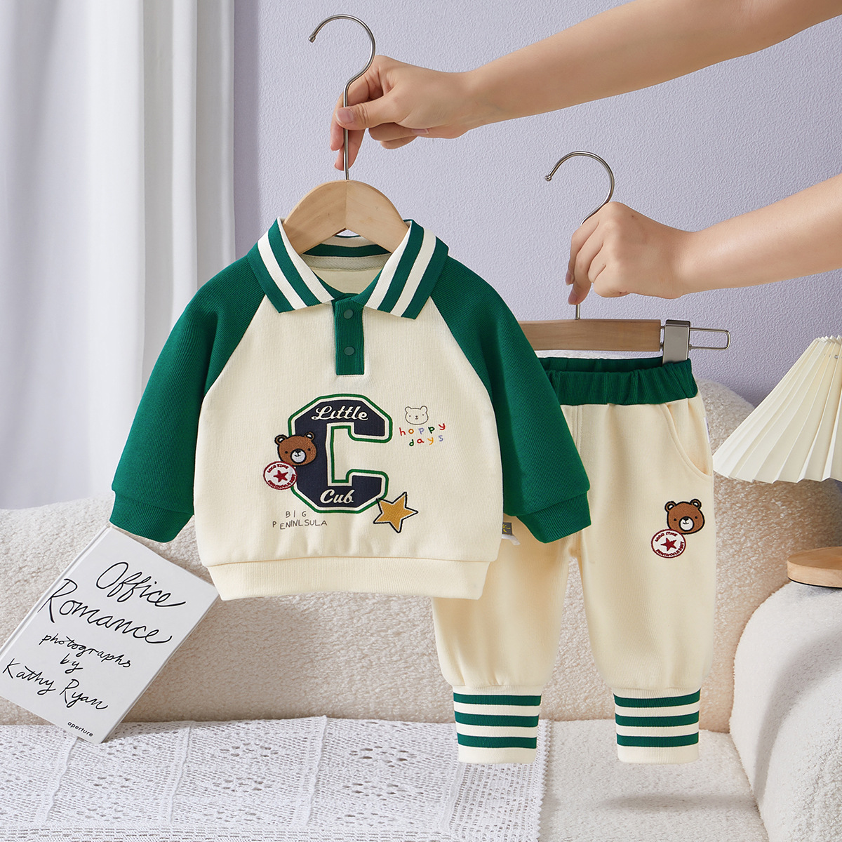 아동복 2025 가을 신제품 아기 소년 정장 서양식 옷깃 곰 소년 옷 스플릿 스웨트 셔츠 투피스 세트