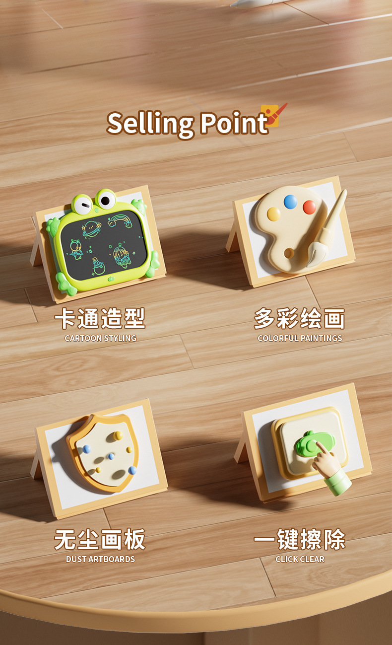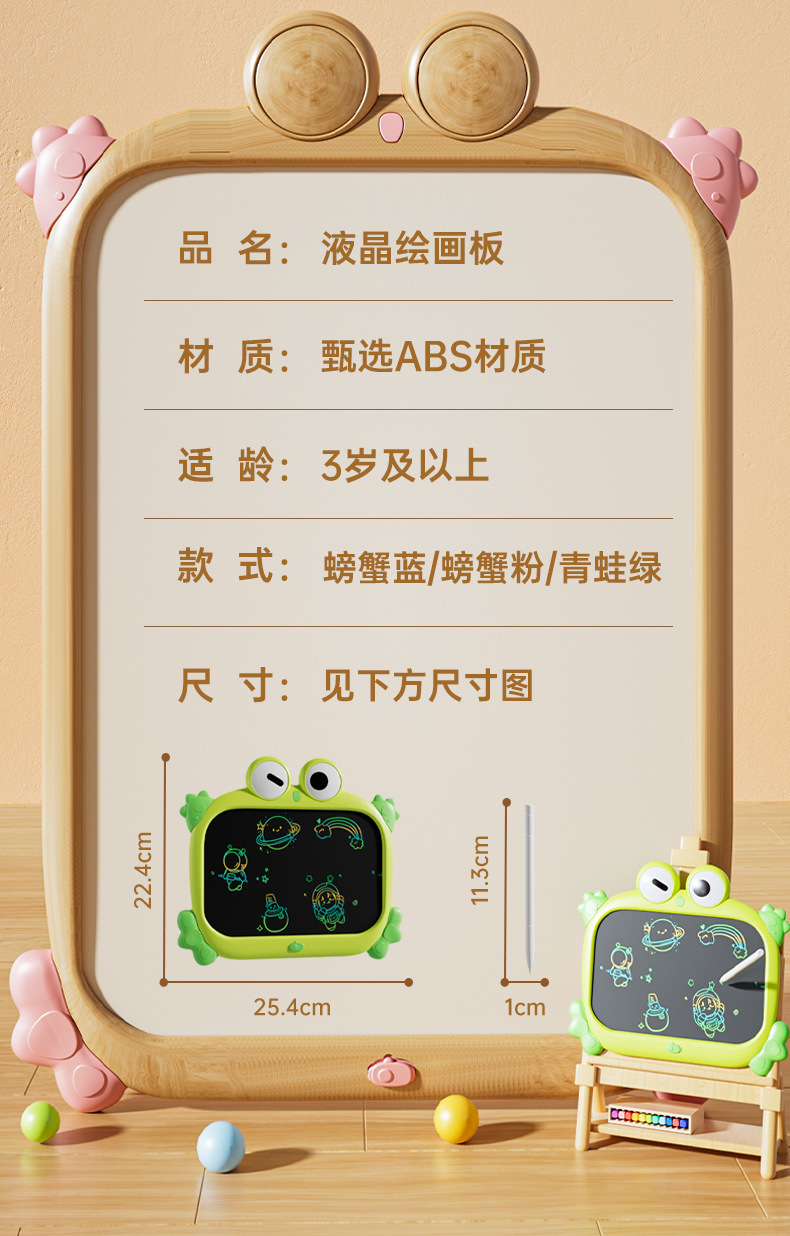국경 간 인기 어린이 LCD 필기 보드 만화 스타일 게 개구리 컬러 펜 드로잉 쓰기 보드 드로잉 보드스토어 가기
