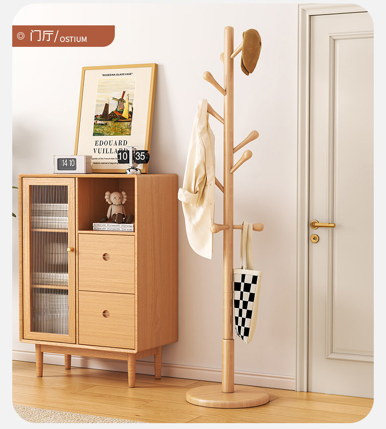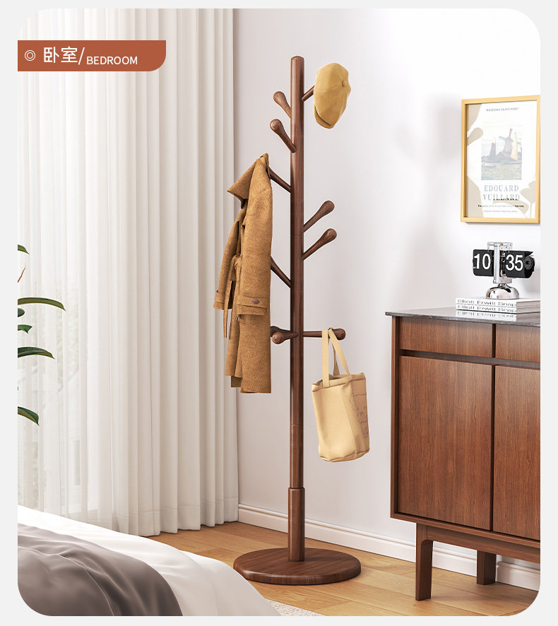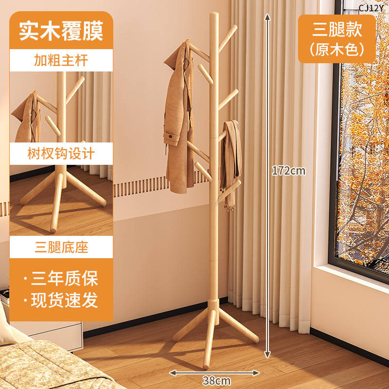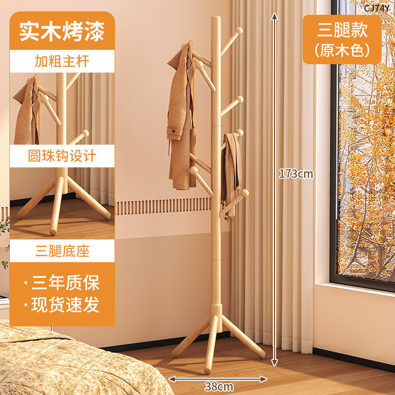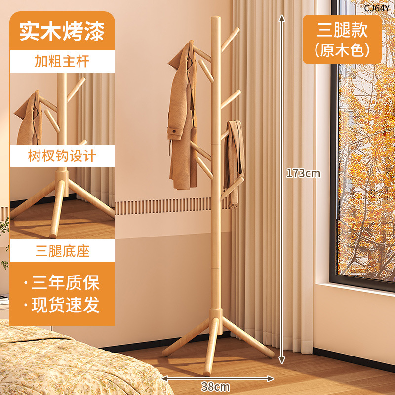 단단한 나무 옷걸이, 바닥 옷걸이, 침실 가정용 옷걸이, 간단한 수직 너도밤나무 옷걸이, 실내 가방 걸이스토어 가기