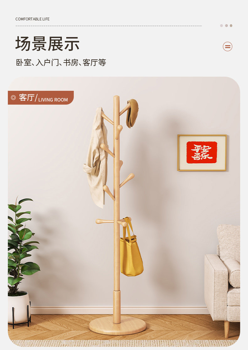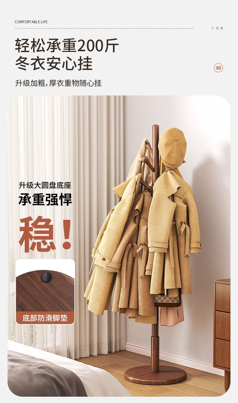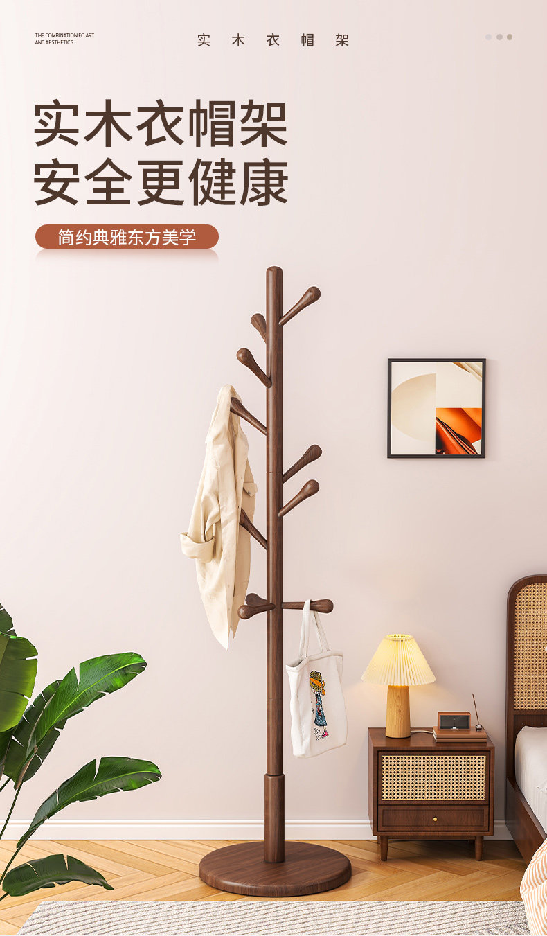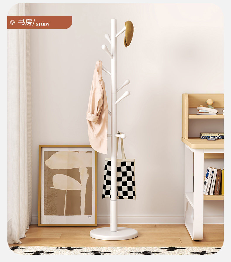 단단한 나무 옷걸이, 바닥 옷걸이, 침실 가정용 옷걸이, 간단한 수직 너도밤나무 옷걸이, 실내 가방 걸이스토어 가기