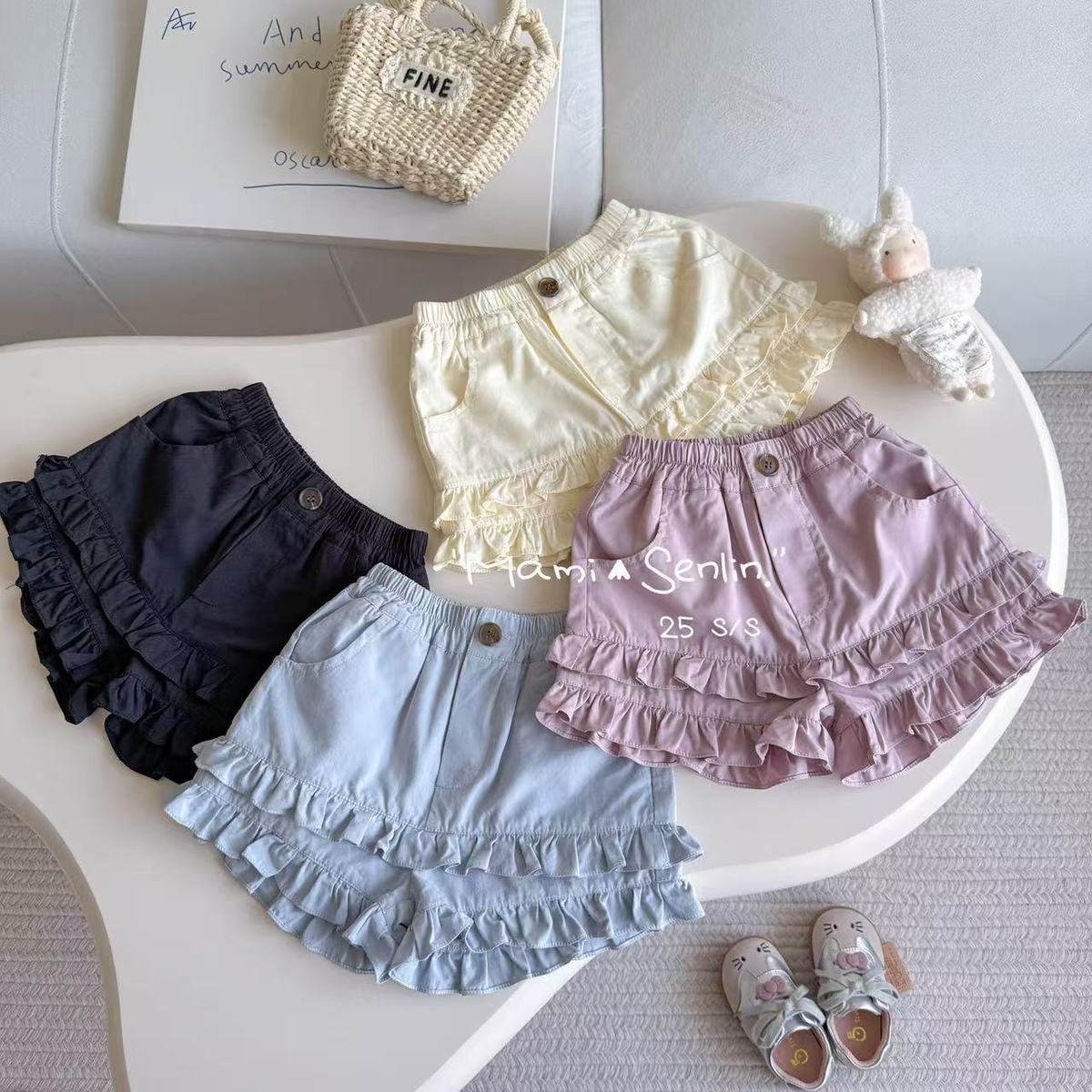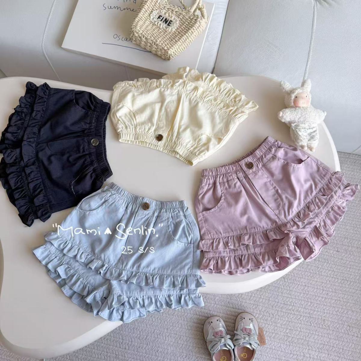 여자 반바지 2025 여름 새로운 한국 스타일 어린이 다목적 느슨한 컬러 레이스 코튼 캐주얼 바지 아기 소녀스토어 가기