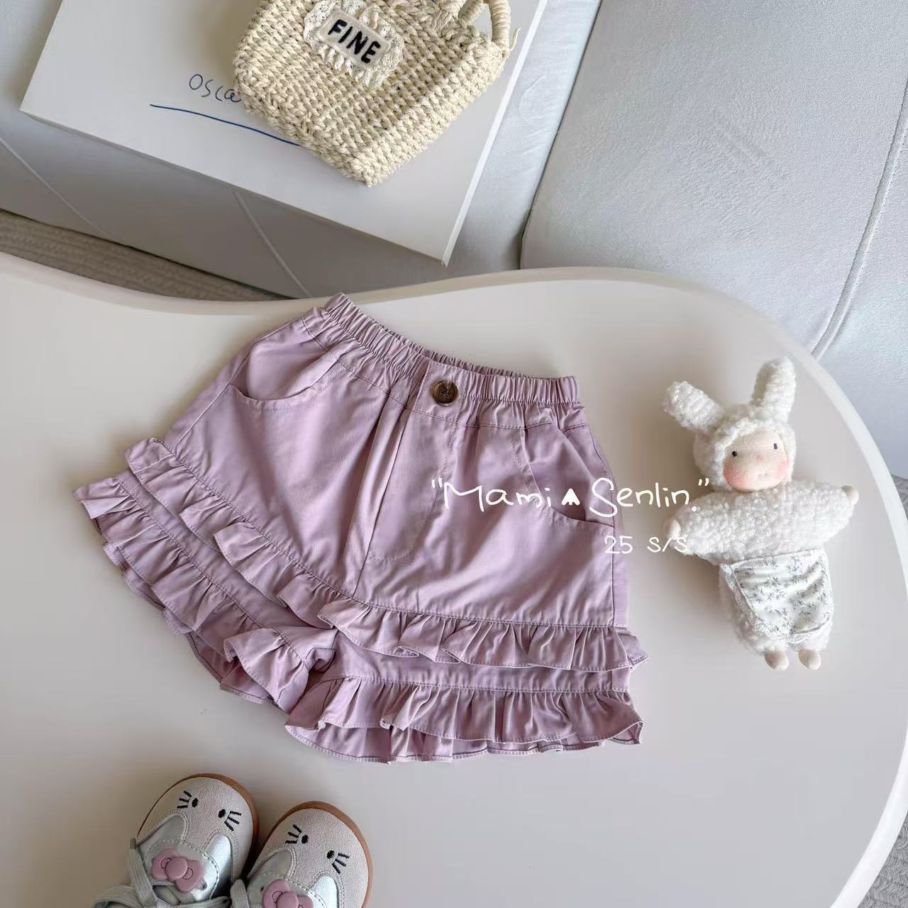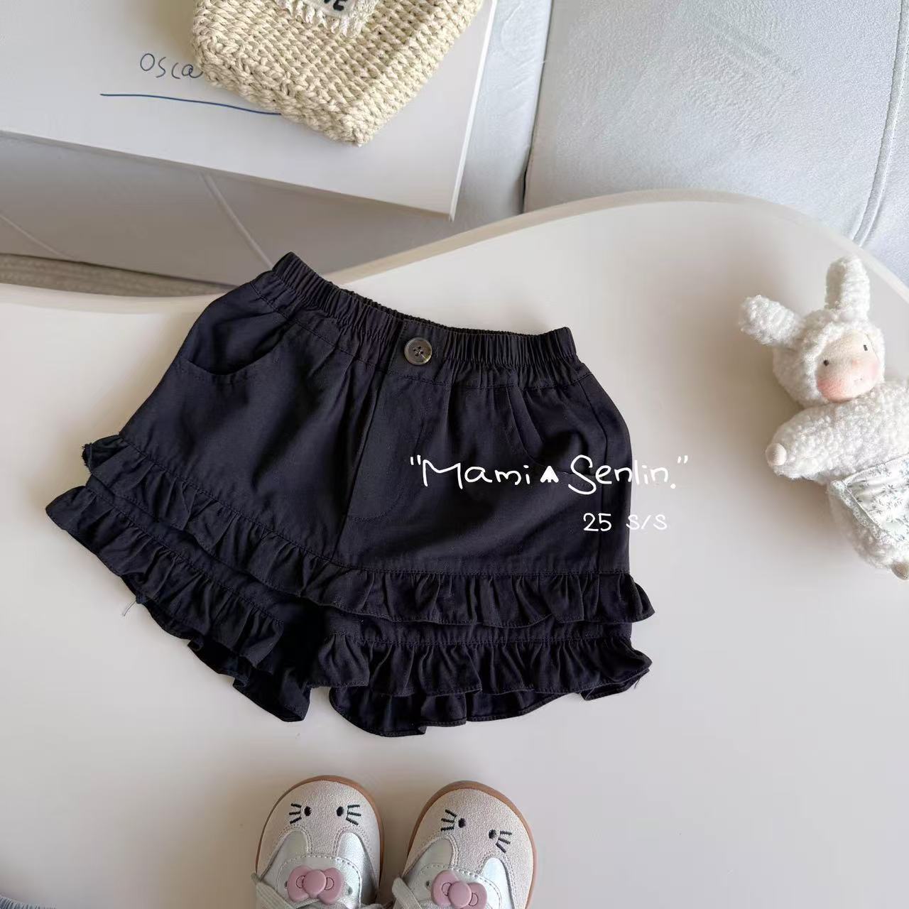 여자 반바지 2025 여름 새로운 한국 스타일 어린이 다목적 느슨한 컬러 레이스 코튼 캐주얼 바지 아기 소녀