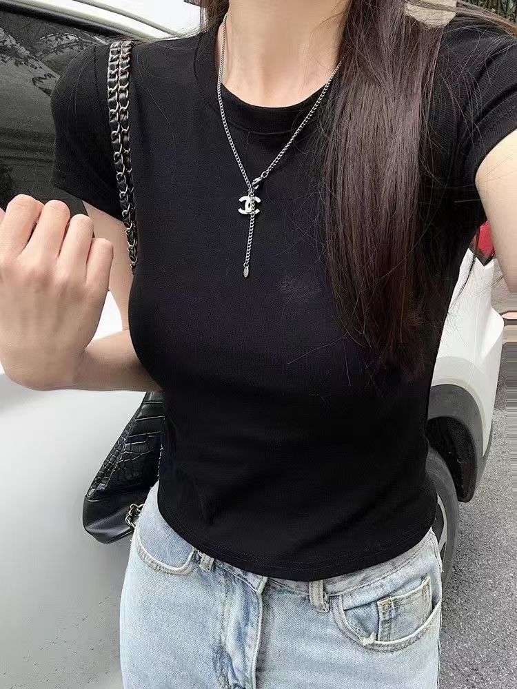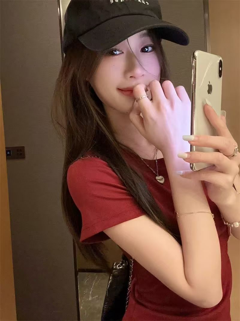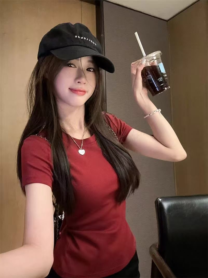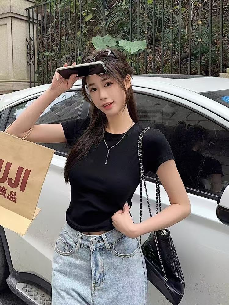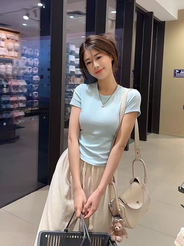 한국 스타일 여성용 슬림핏 반팔 티셔츠 2026 여름 허리라인을 강조한 짧은 단색 여성용 ins 스타일 상의 패셔너블하고 다재다능함스토어 가기