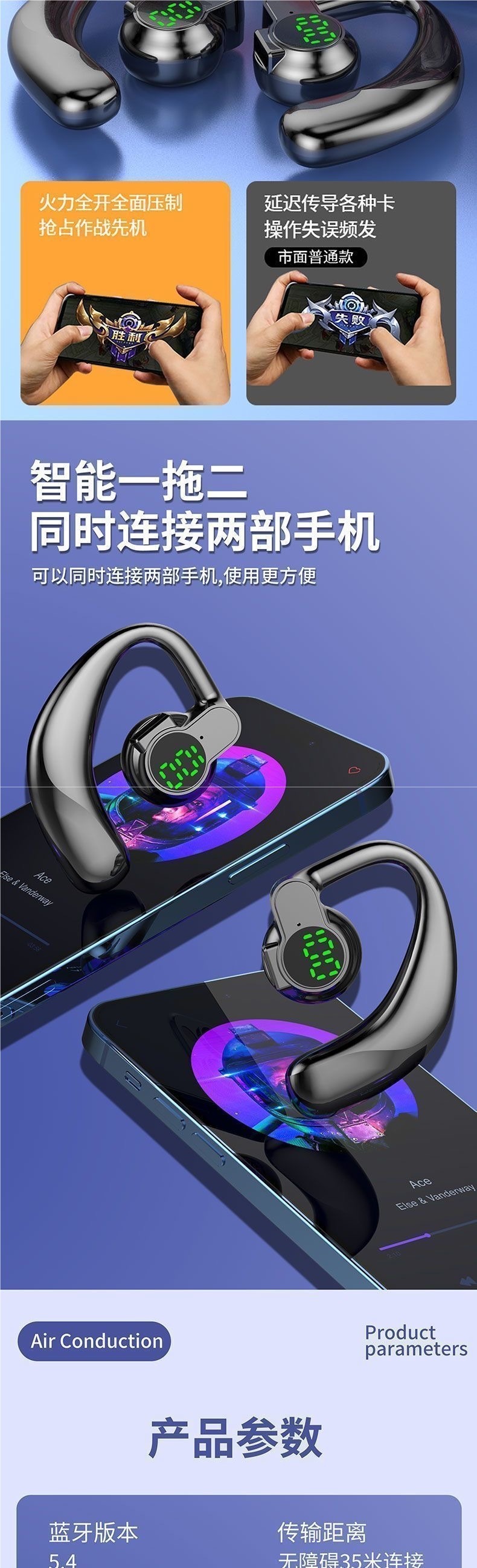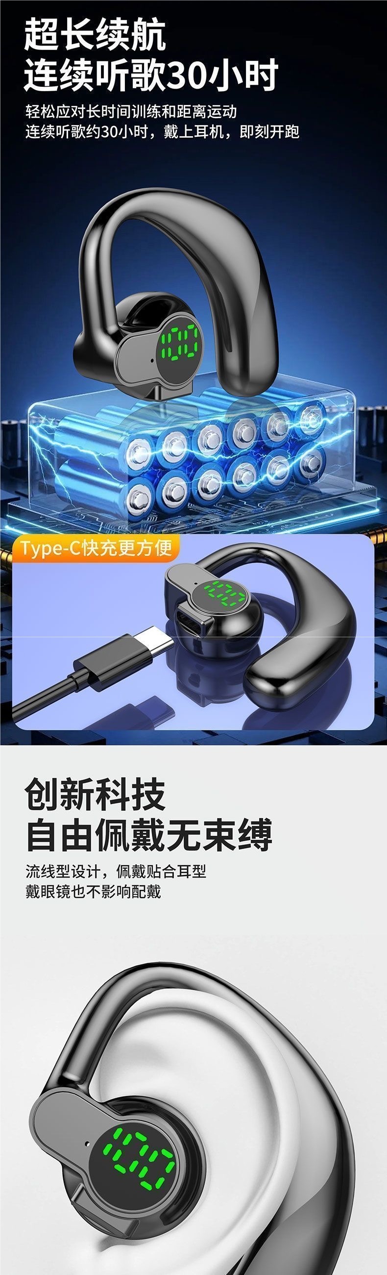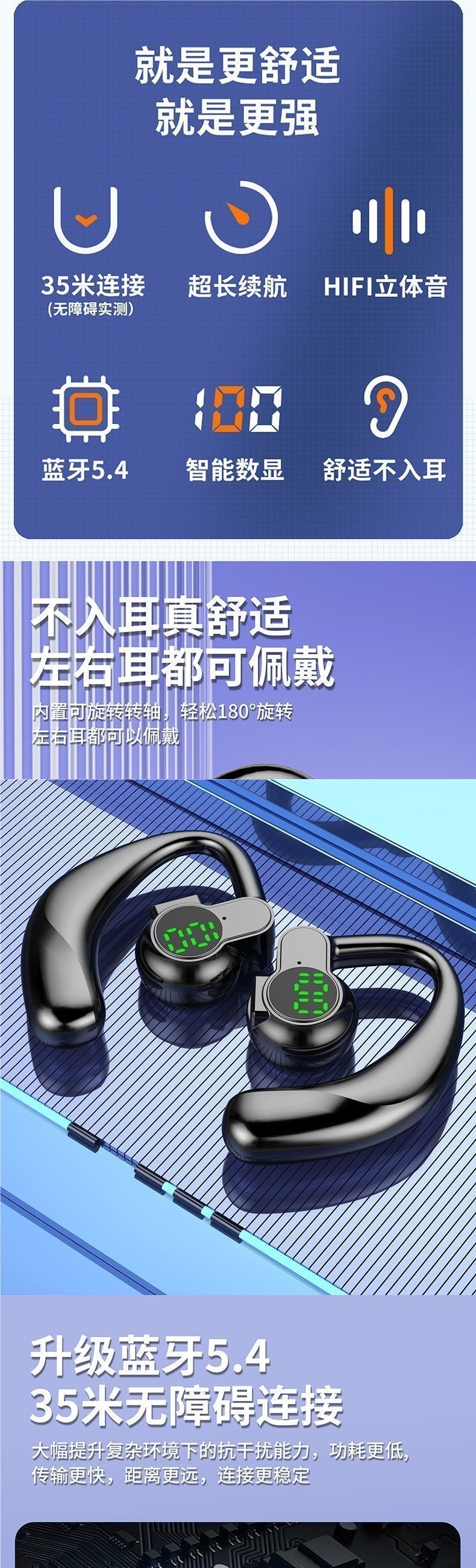 Xiaomi Apple Huawei에 적합한 새로운 회전식 무선 블루투스 헤드셋 귀 장착형 스포츠 초장기 대기 수명스토어 가기