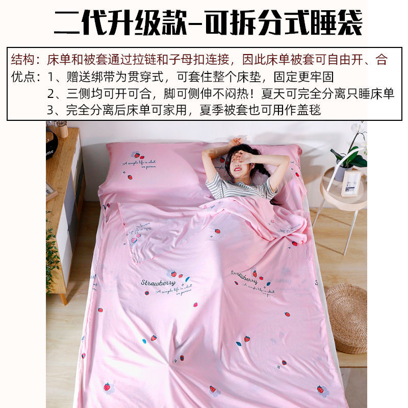 분리형 여행용 더러운 침낭, 휴대용 더블 싱글 호텔 여행용 침대 시트, 두꺼운 더러운 방지 이불 커버, 여행용 수면 보물