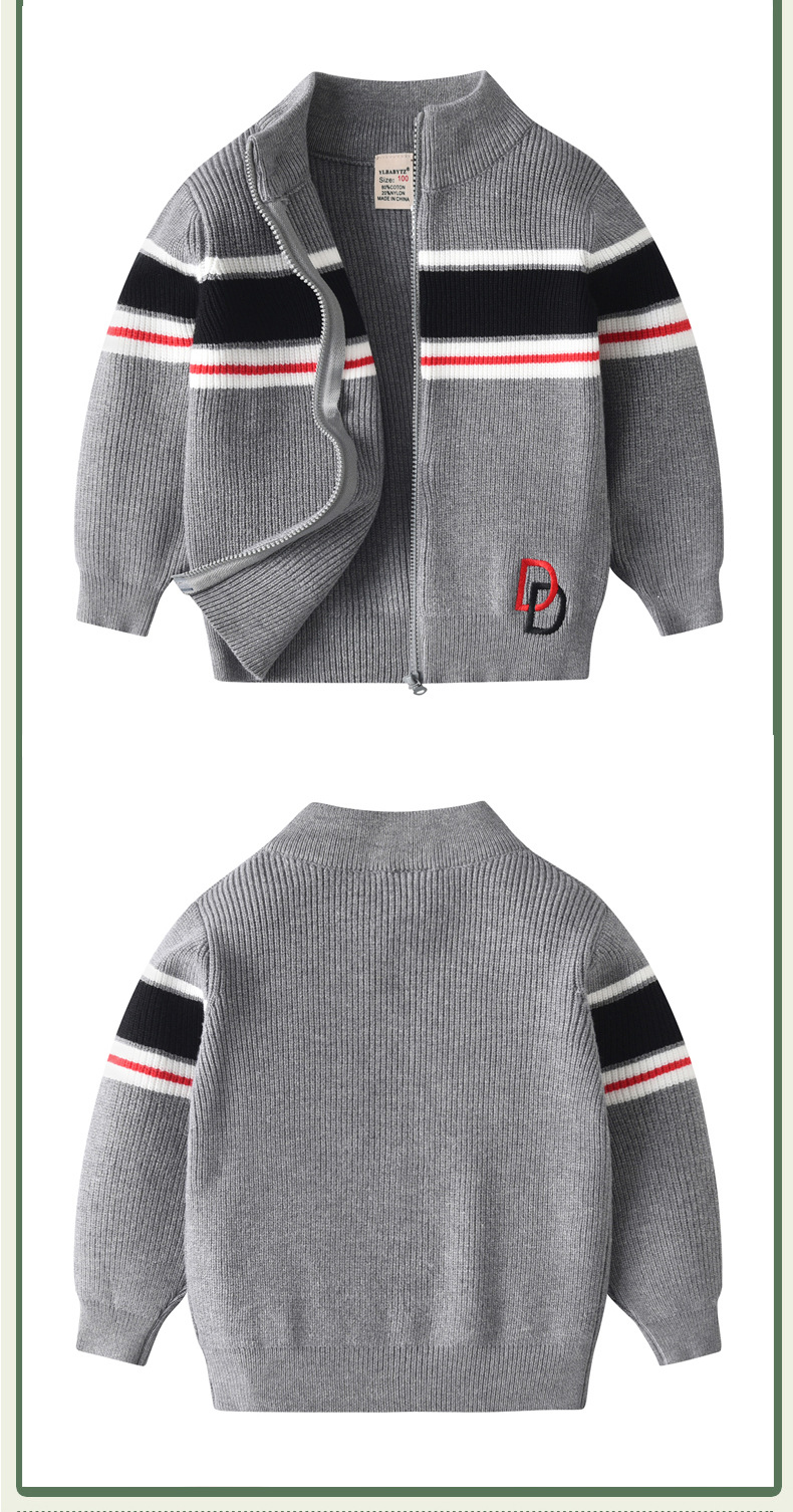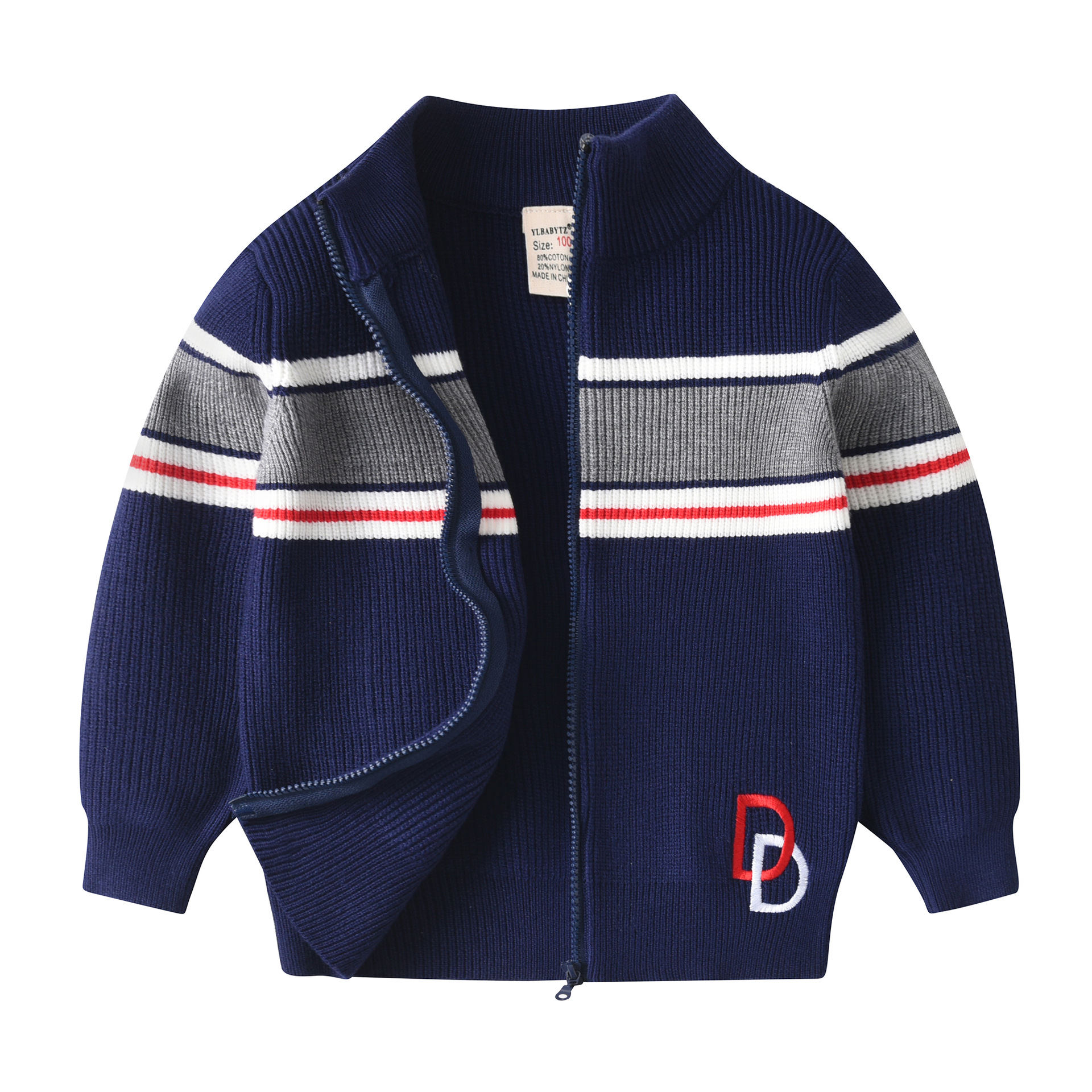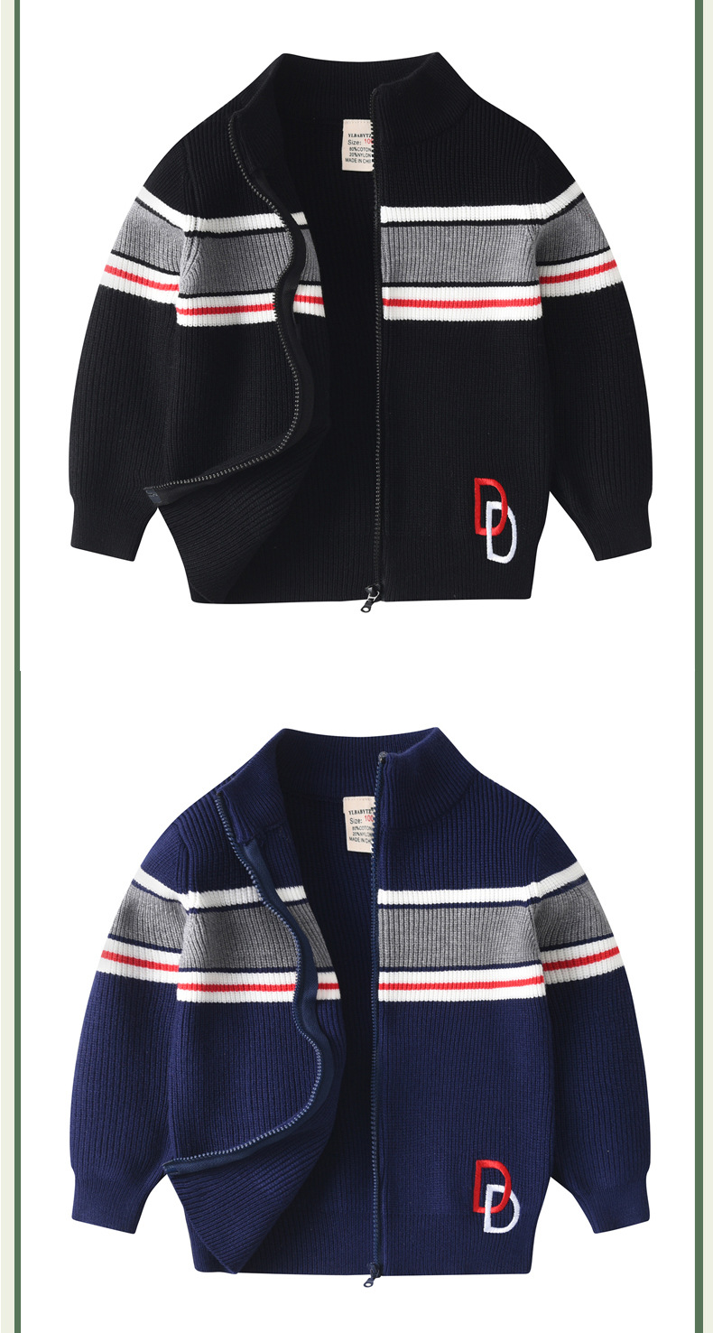 아동용 스웨터 카디건 지퍼 스트라이프 아동용 스웨터 소년 가을, 겨울 모직 재킷 2025 가을, 겨울 새로운 스타일스토어 가기