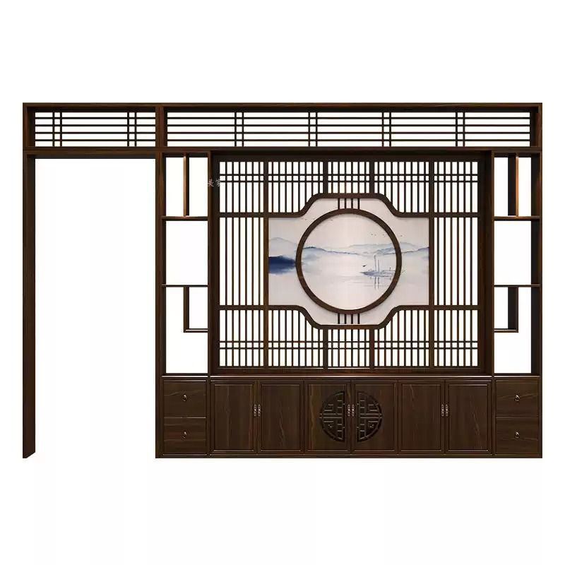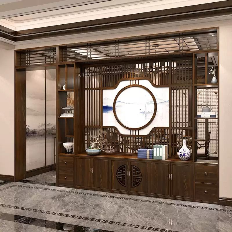 새로운 중국 스타일 아치형 파티션 거실 입구 캐비닛 입구 차단 가정용 단단한 나무 스크린 선반 Moon Cave Bogu Rack