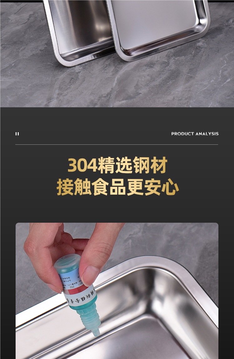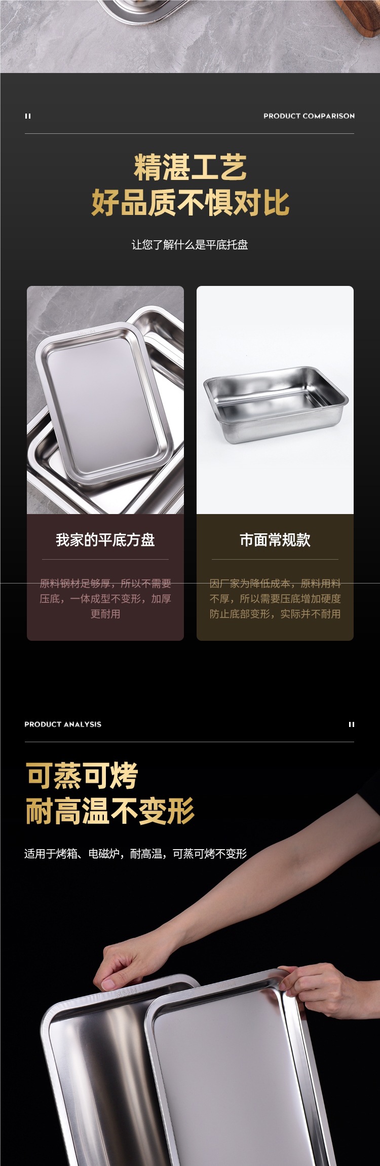 304 스테인레스 스틸 트레이 플랫 바닥 사각형 접시 주방 디너 접시 상업용 두꺼운 찐 밥 접시 구운 생선 접시 바베큐 접시스토어 가기