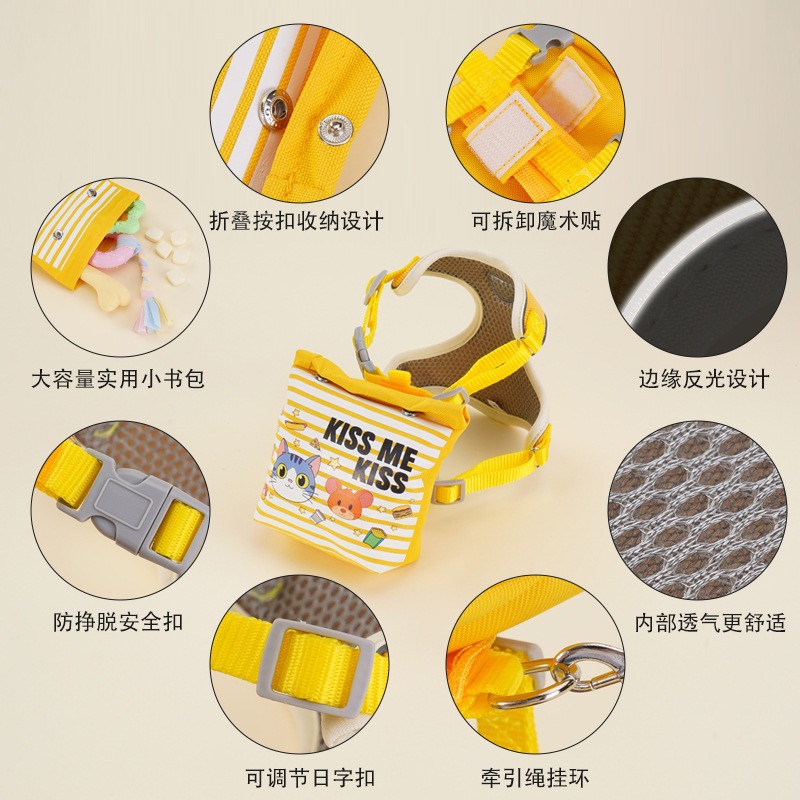 새로운 개 하네스, 고양이 하네스, 초경량 배낭, 소형 하네스, 소형견 산책용 로프, 개 가죽끈.