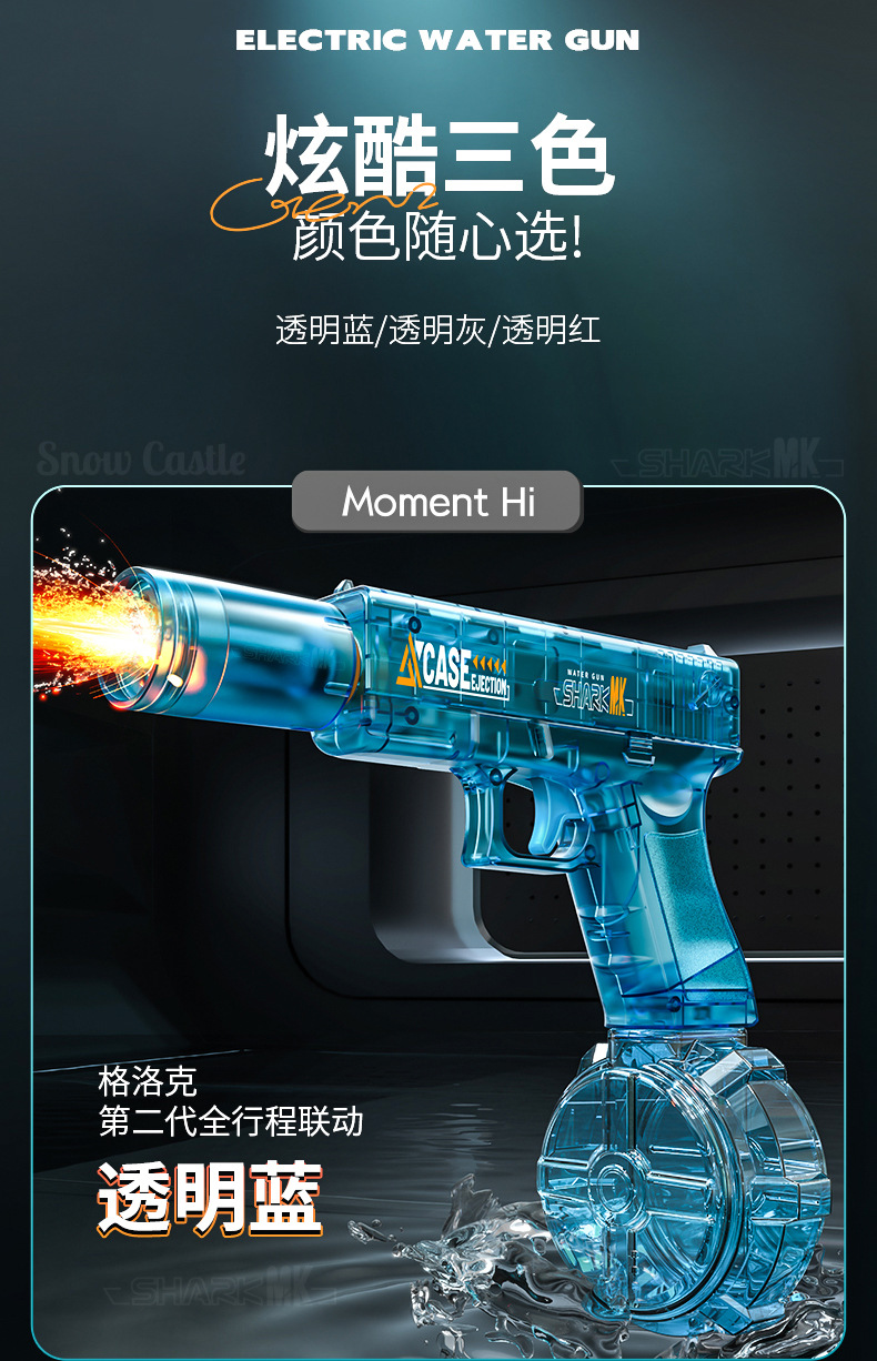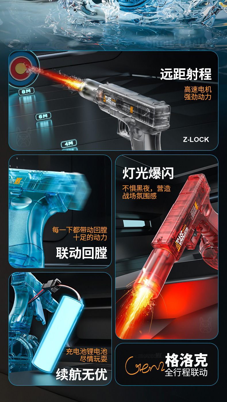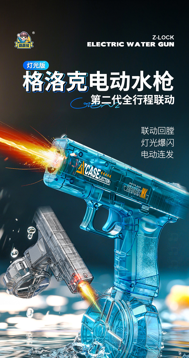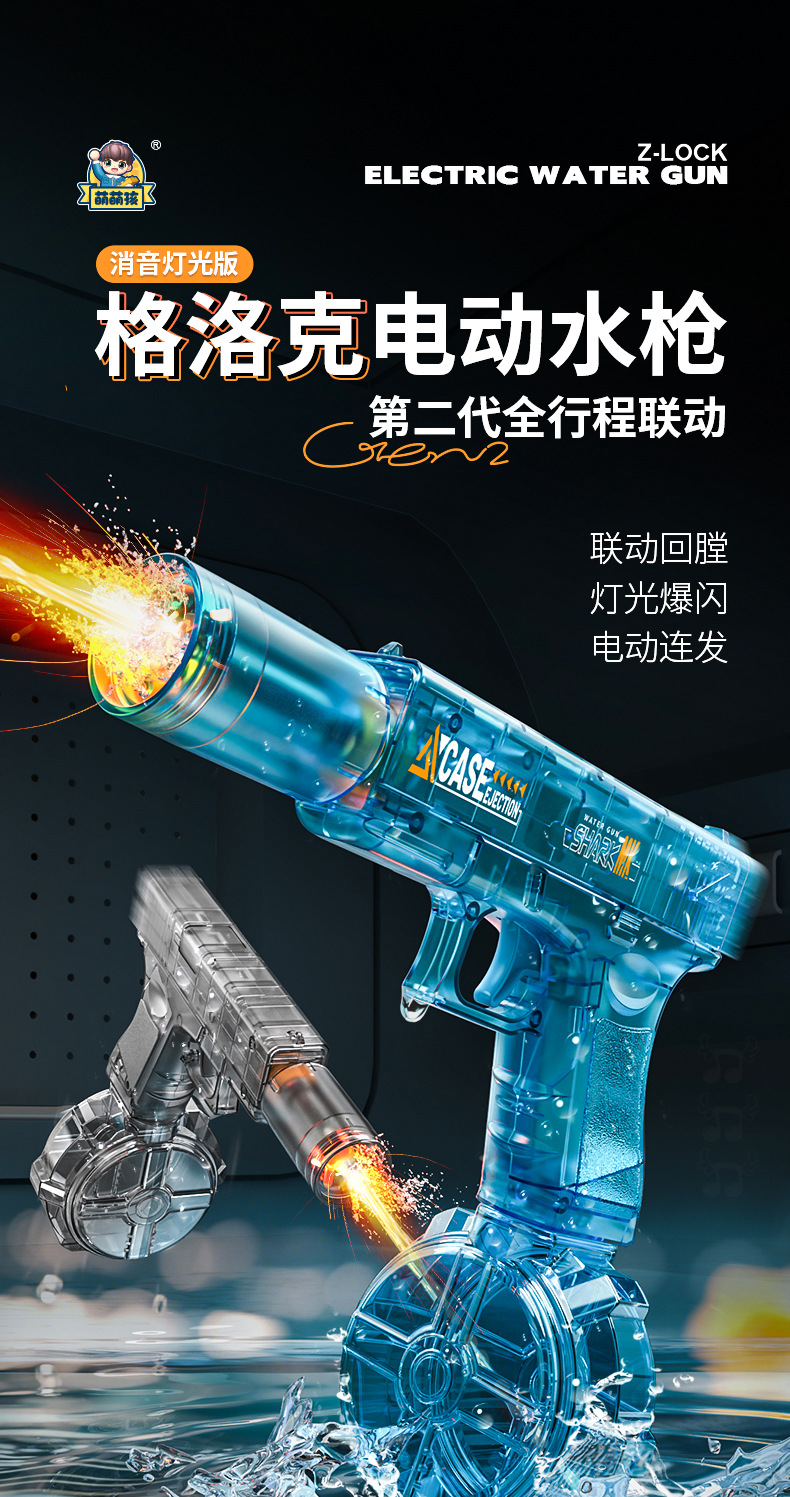 글록 전기 물총 2세대 풀 스트로크 연결 소음기 조명 버전 전기 연속 발사 멋진 조명 깜박임