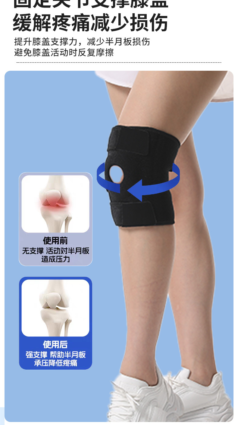 개방형 반월판 무릎 패드, 통기성, 가볍고 얇은 스포츠 등산 남성용 및 여성용 무릎 보호대, 무릎 관절 고정 슬개골 벨트스토어 가기