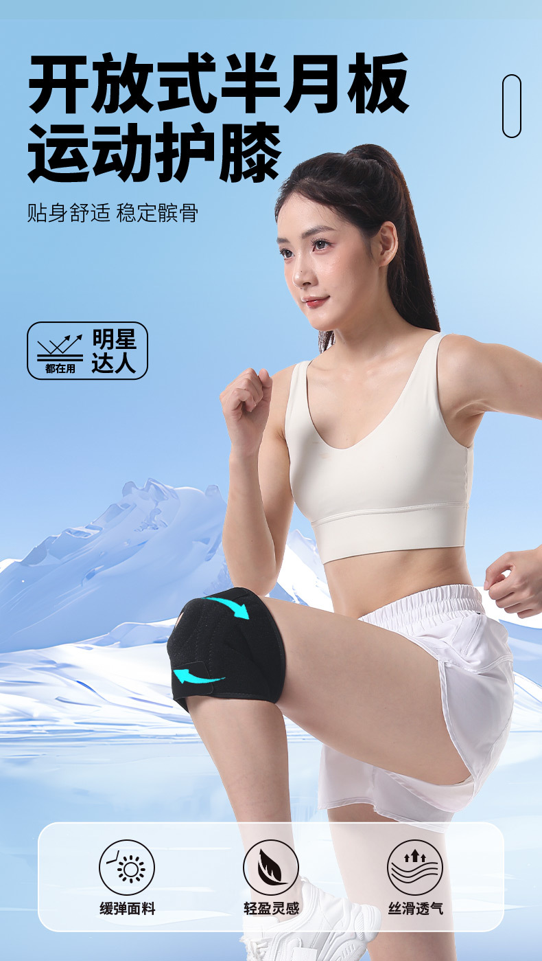 개방형 반월판 무릎 패드, 통기성, 가볍고 얇은 스포츠 등산 남성용 및 여성용 무릎 보호대, 무릎 관절 고정 슬개골 벨트