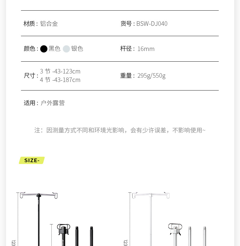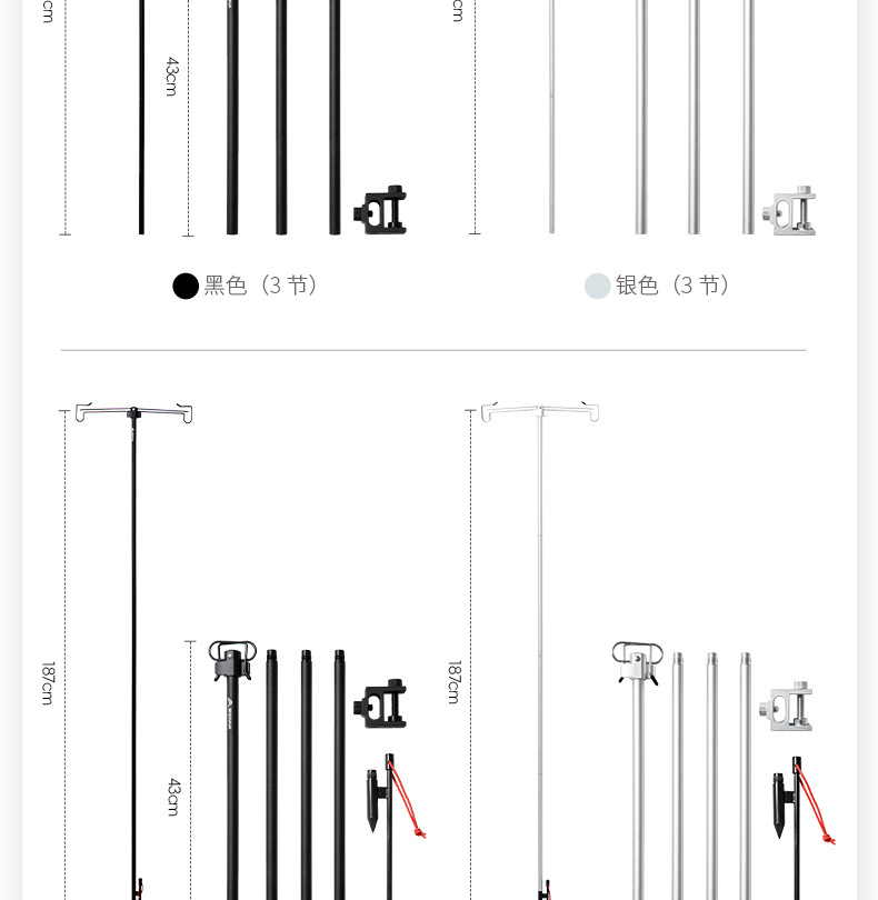 Beishanlang 야외 캠핑 접이식 조명 스탠드 알루미늄 합금 휴대용 라이트 폴 브래킷 캠프 라이트 야간 낚시 라이트