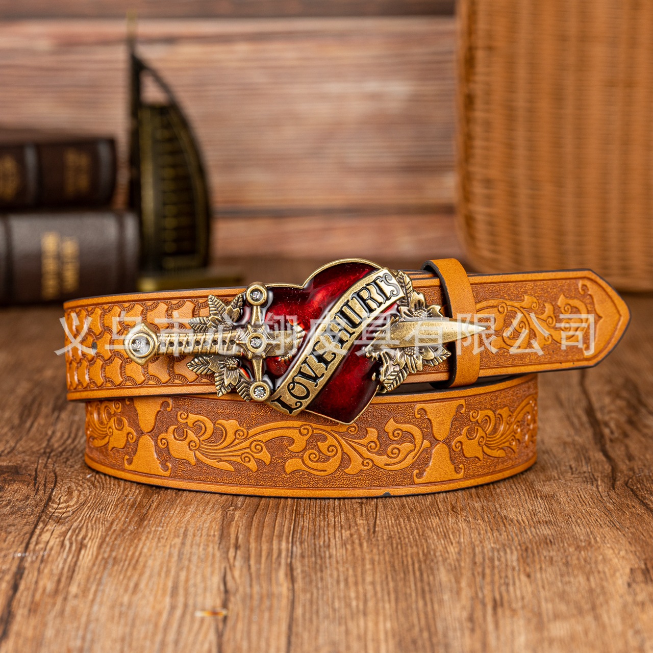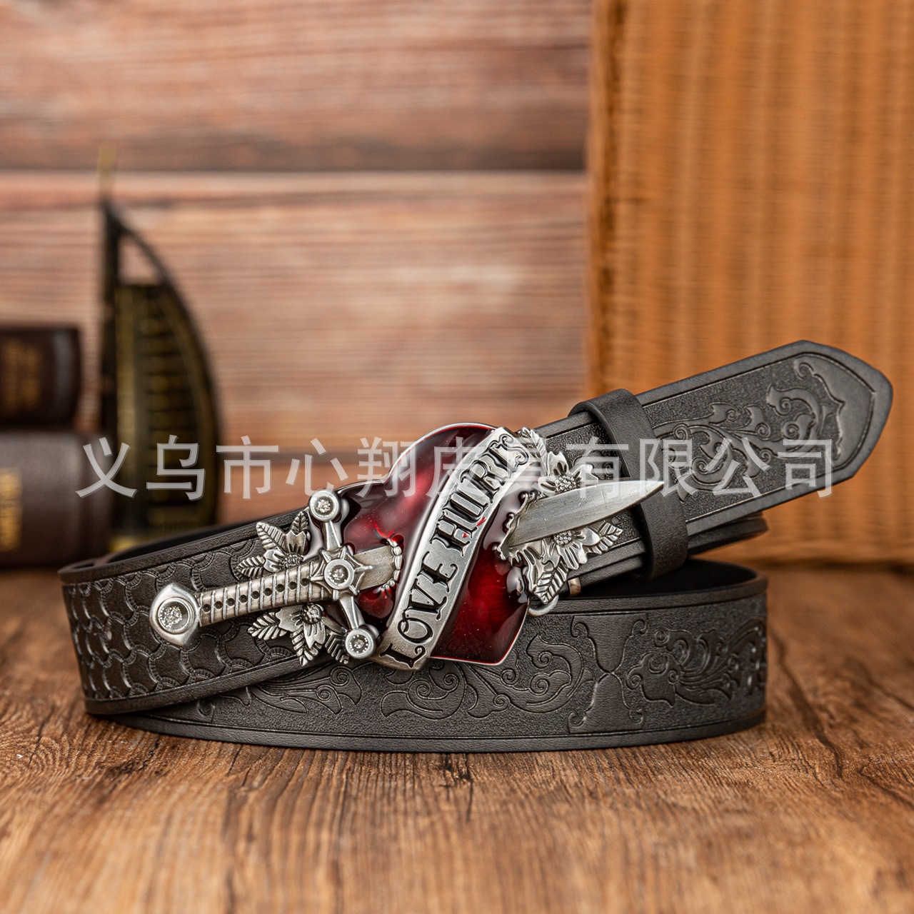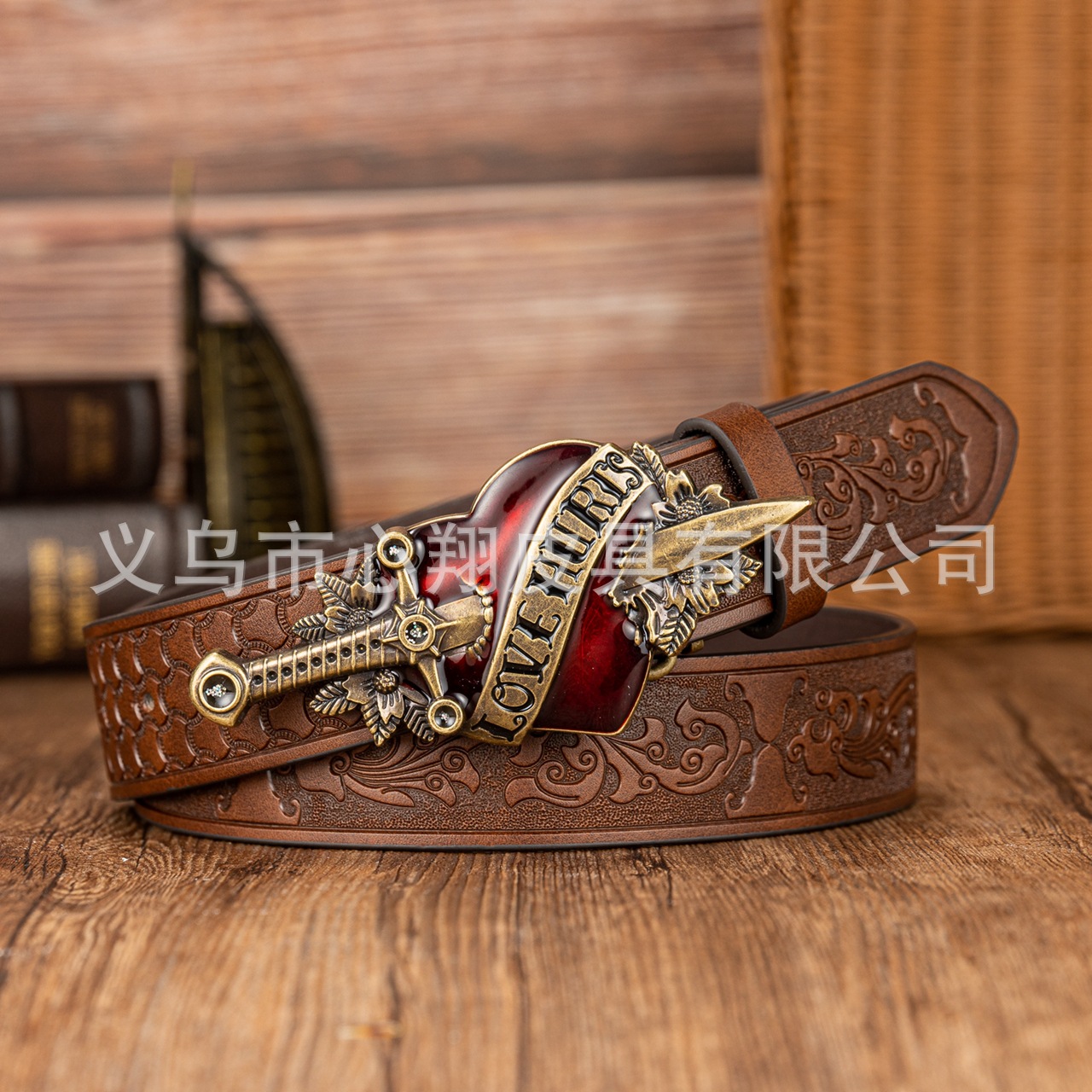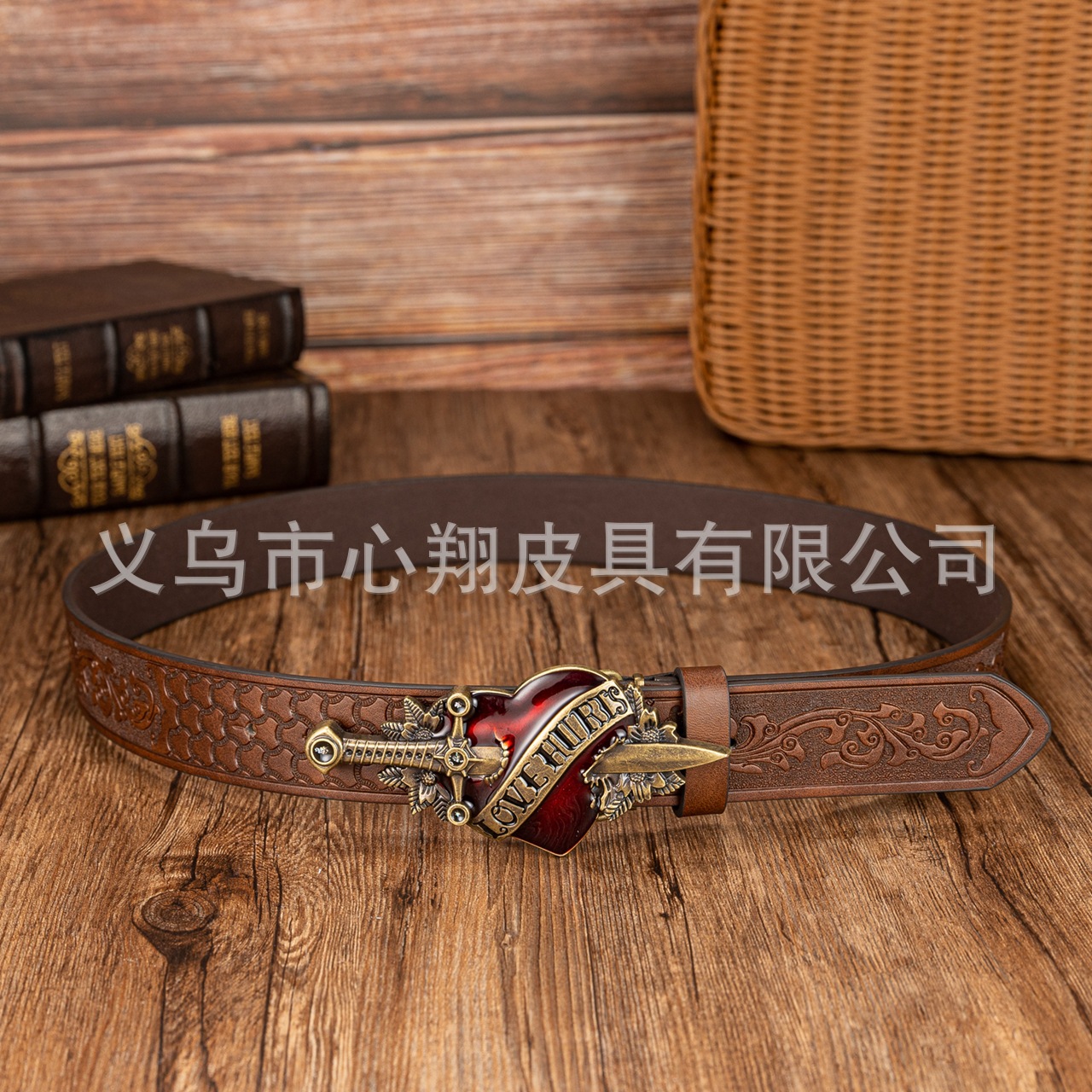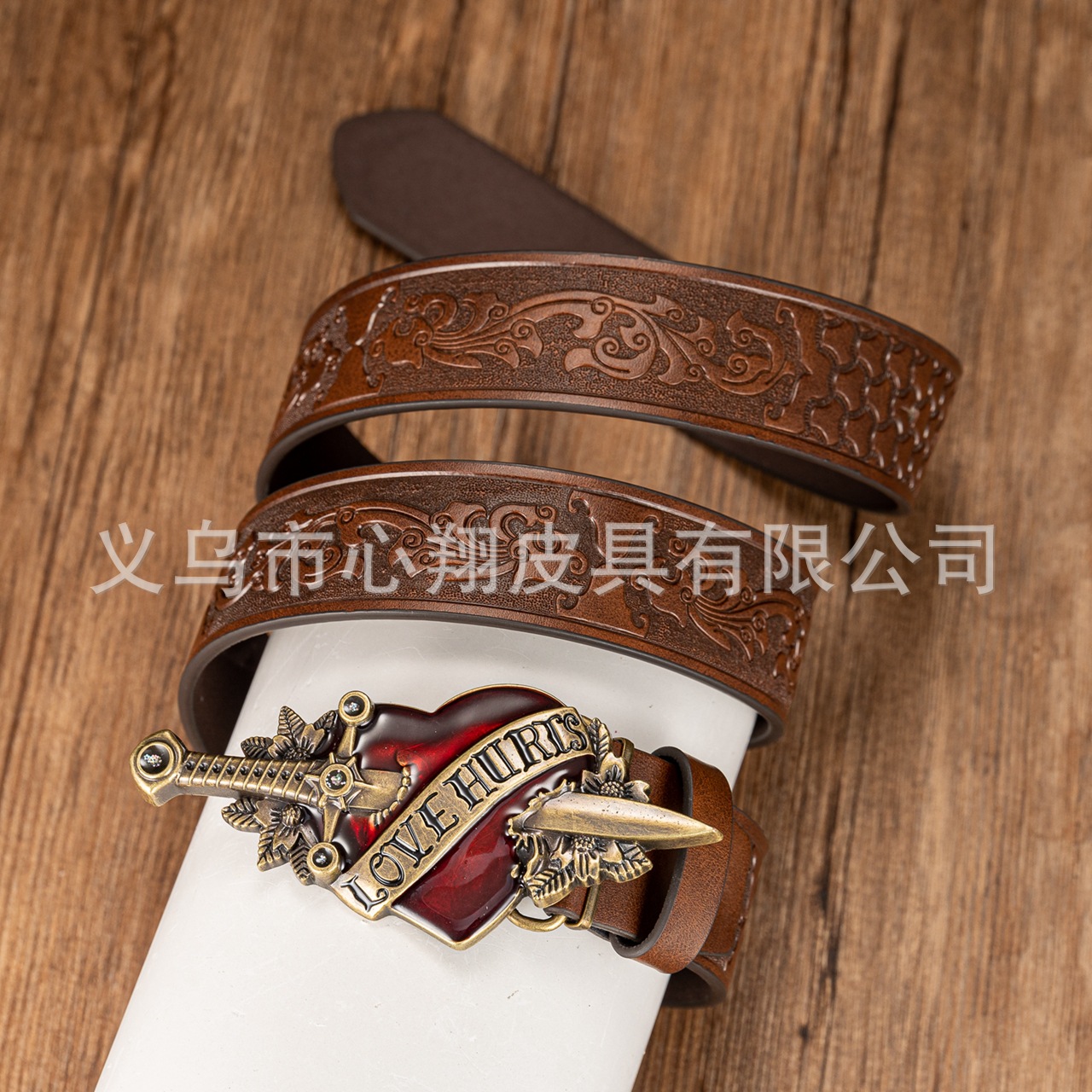 크로스보더 레트로 원세이브 하트 패널 버클 장식 벨트 벨트 데님 유럽과 미국의 스트리트 PU 가죽 엠보싱 벨트스토어 가기