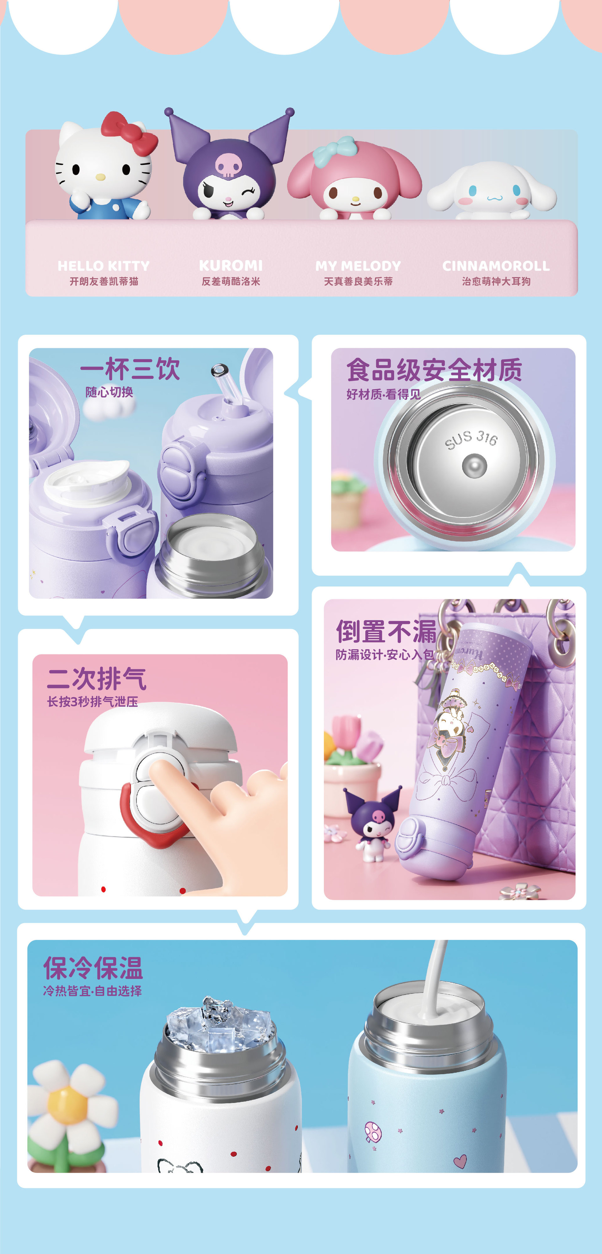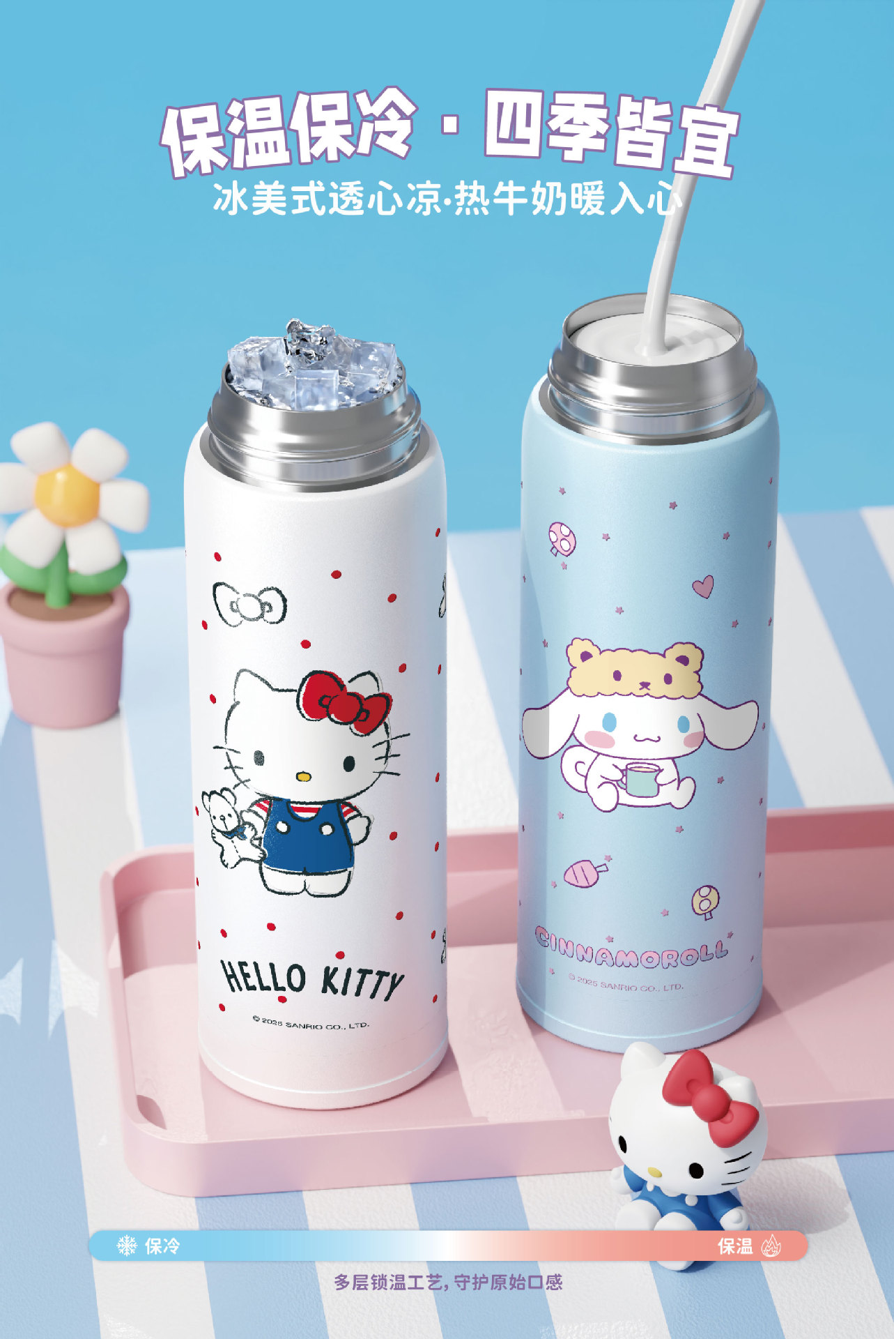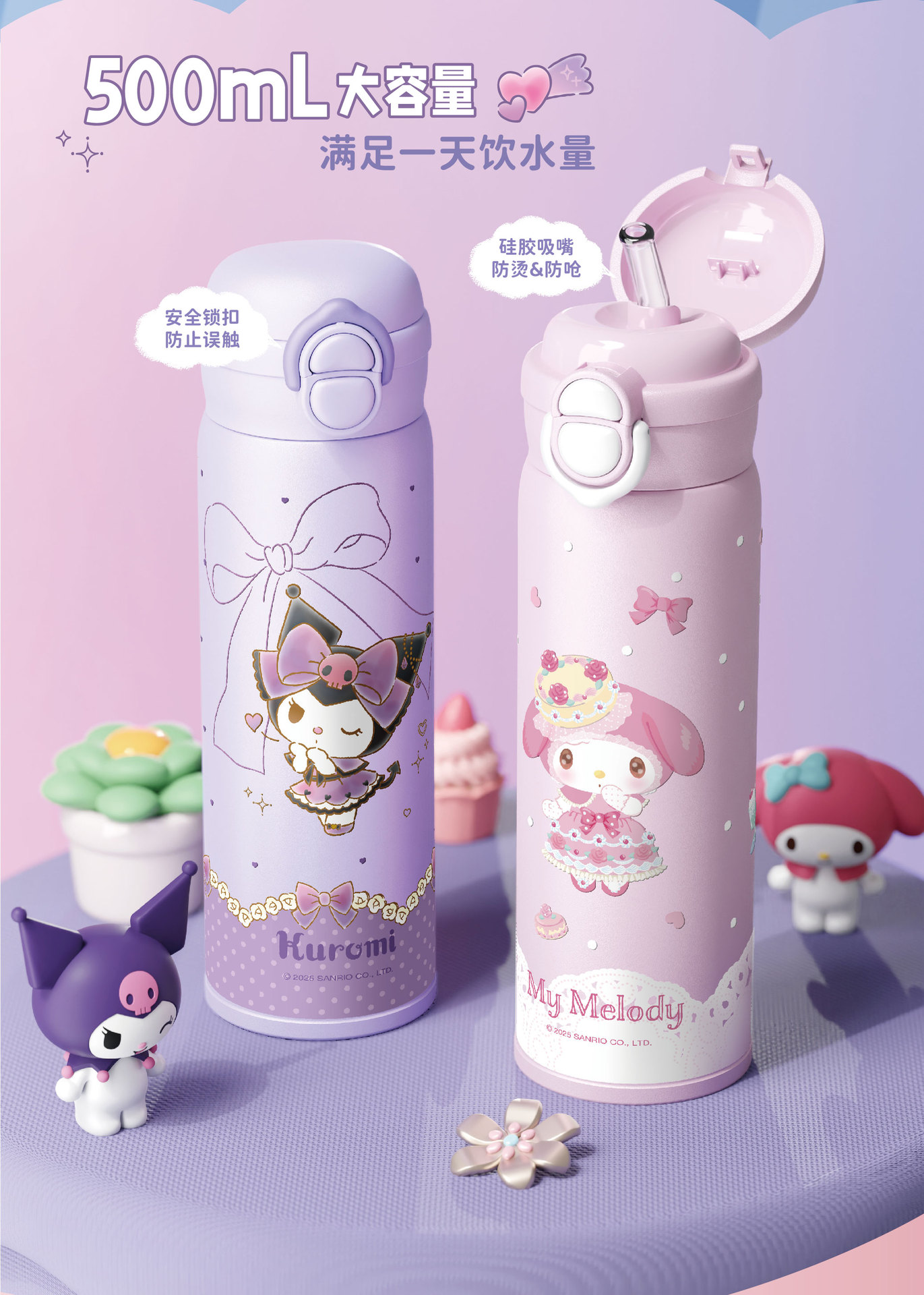 Sanrio Kuromi 헬로 키티 어린이 보온병 컵 316 식품 등급 초등학생 소녀 더블 마시는 밀짚 컵