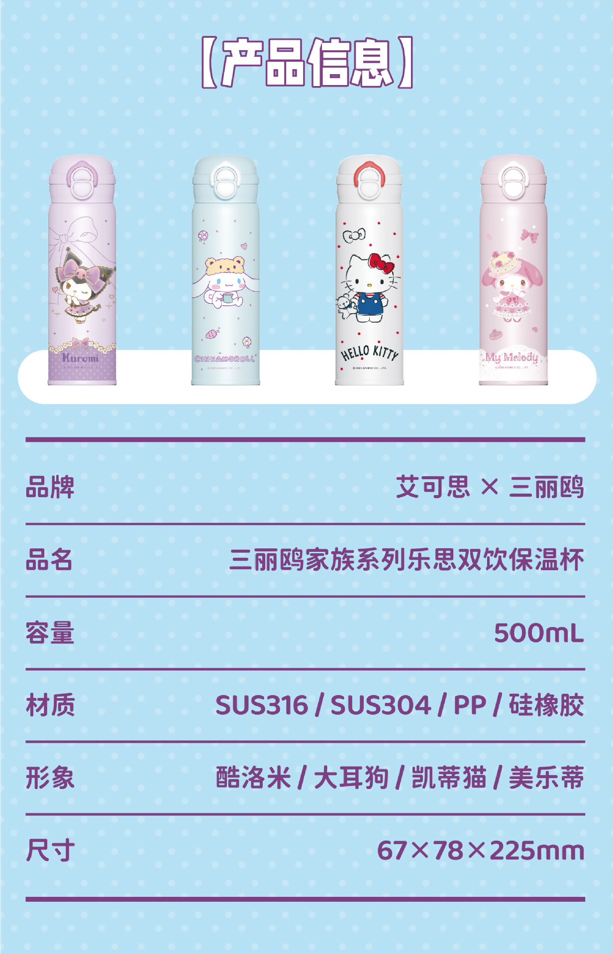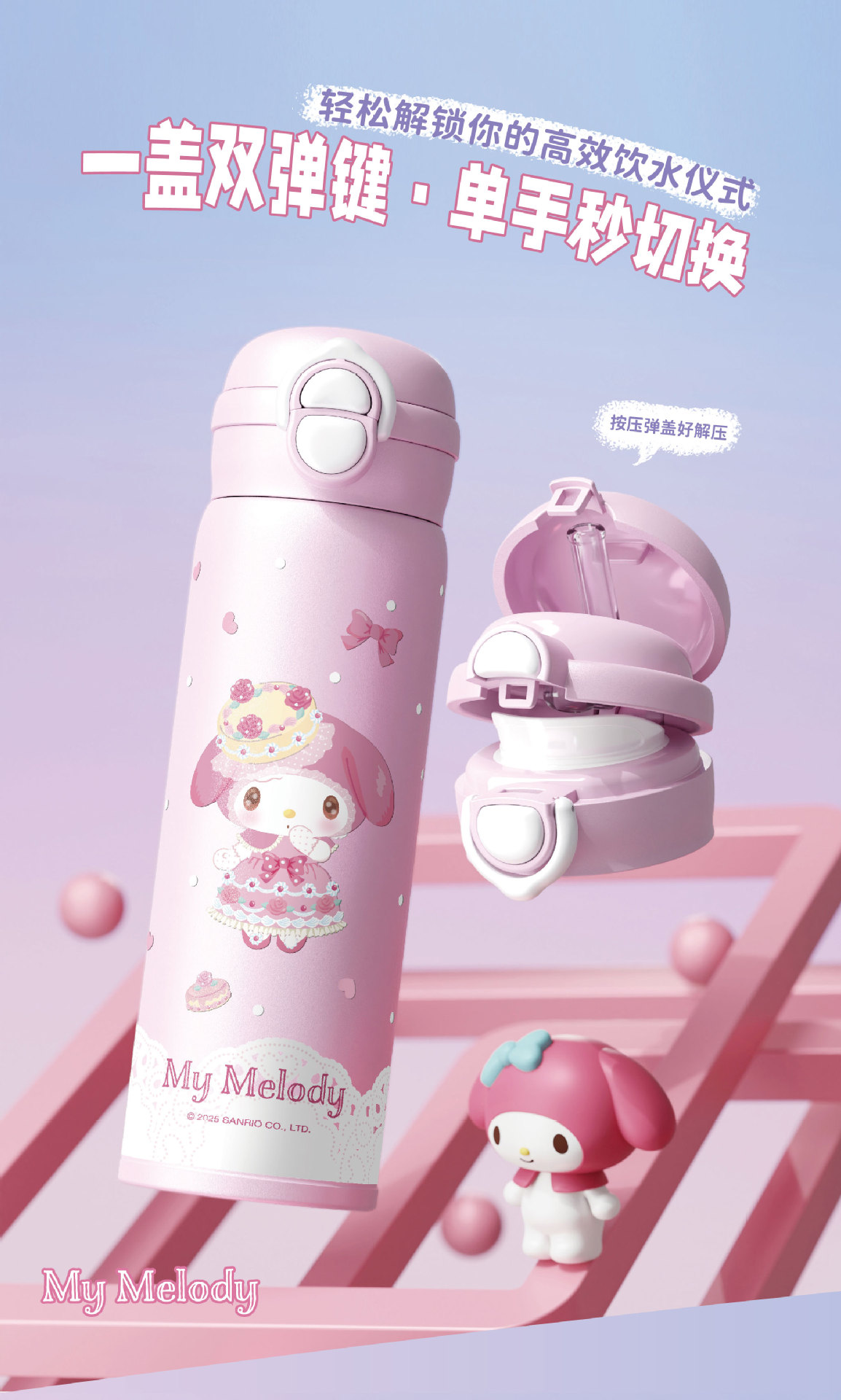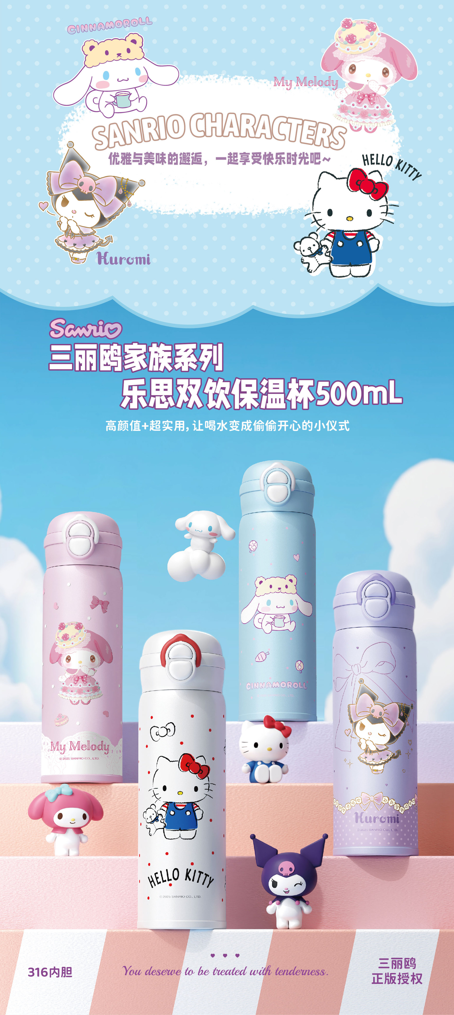 Sanrio Kuromi 헬로 키티 어린이 보온병 컵 316 식품 등급 초등학생 소녀 더블 마시는 밀짚 컵