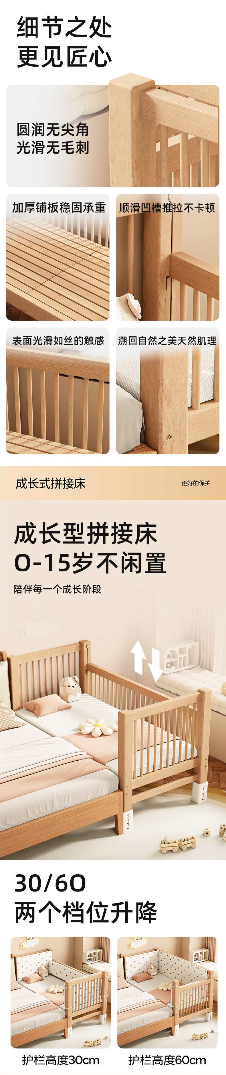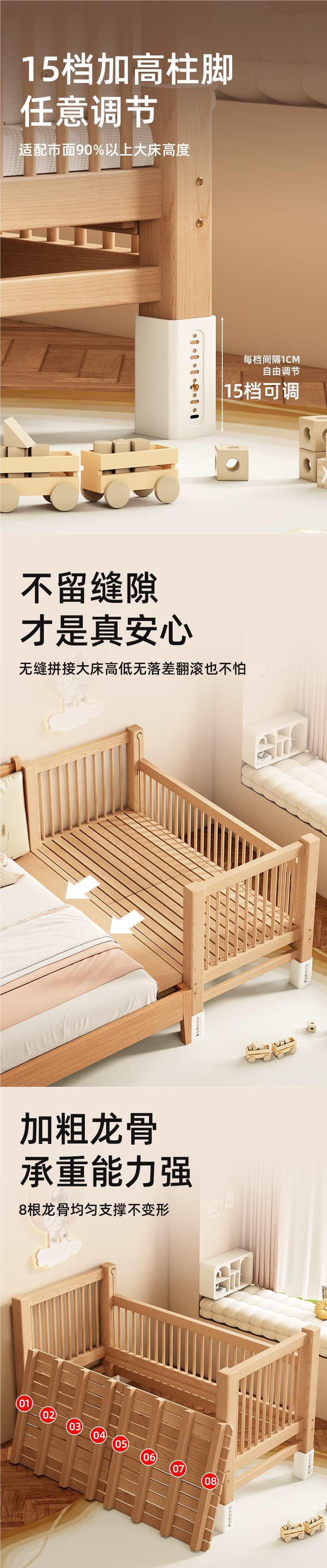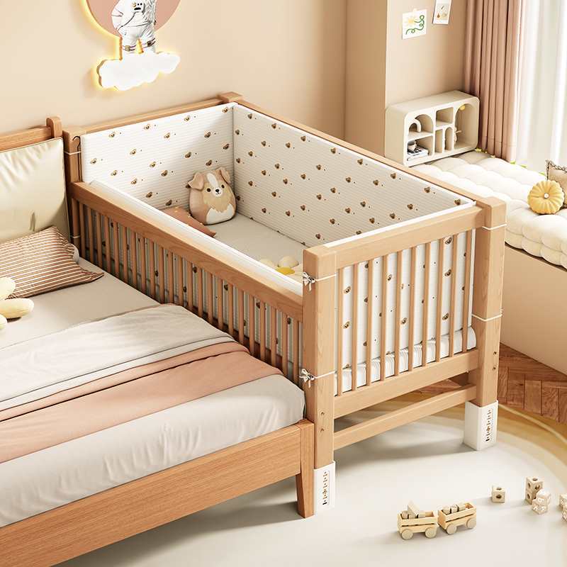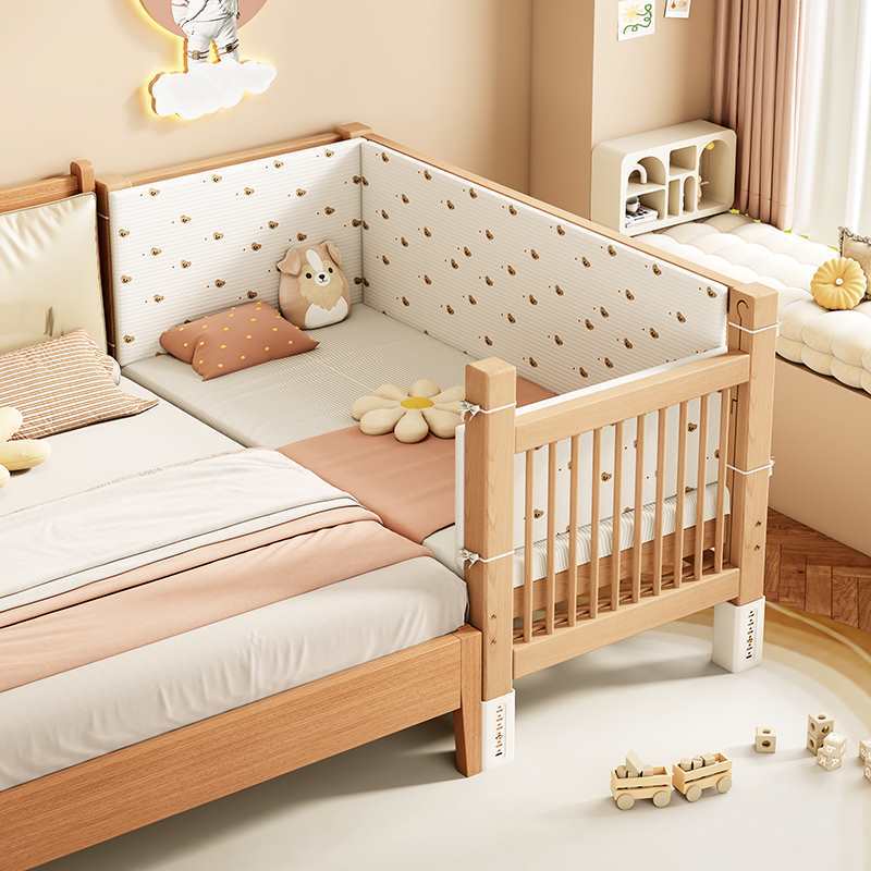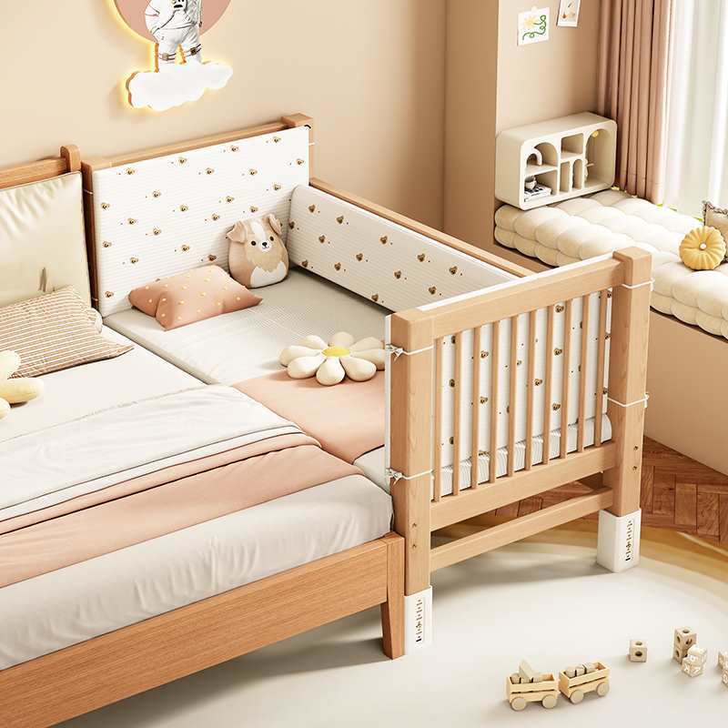 가드레일이 있는 높낮이 조절 가능한 너도밤나무 어린이 접합 침대, 침대 접합 침대 옆에 넓어진 아기 유아용 침대, 단단한 나무 유아용 침대