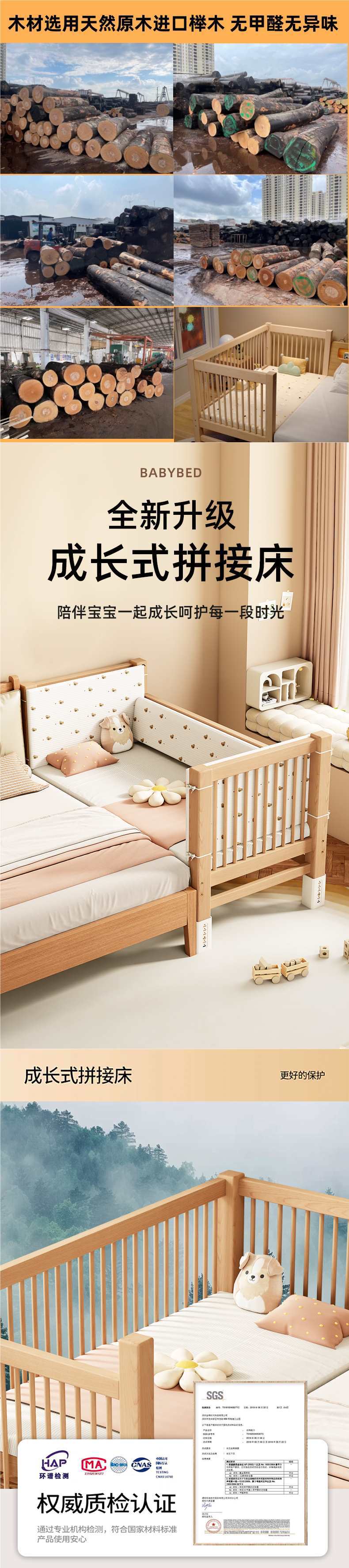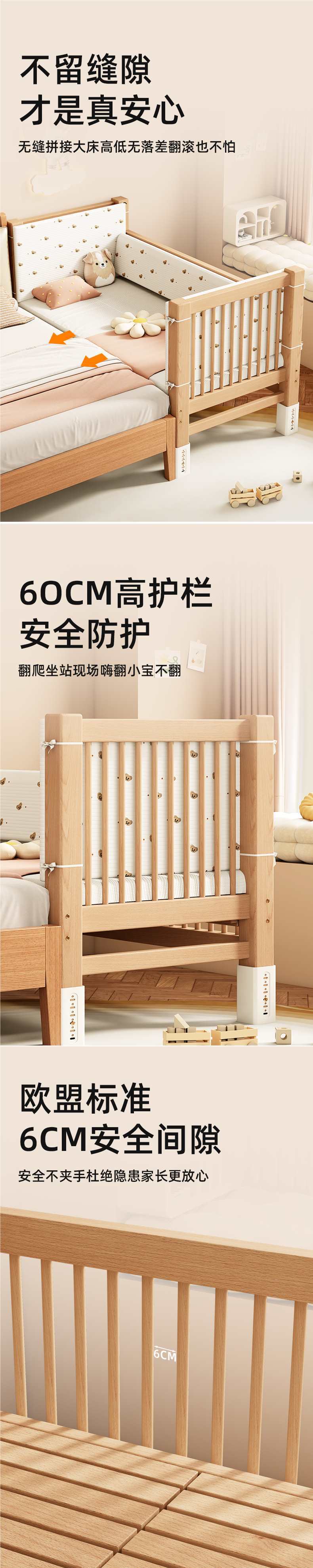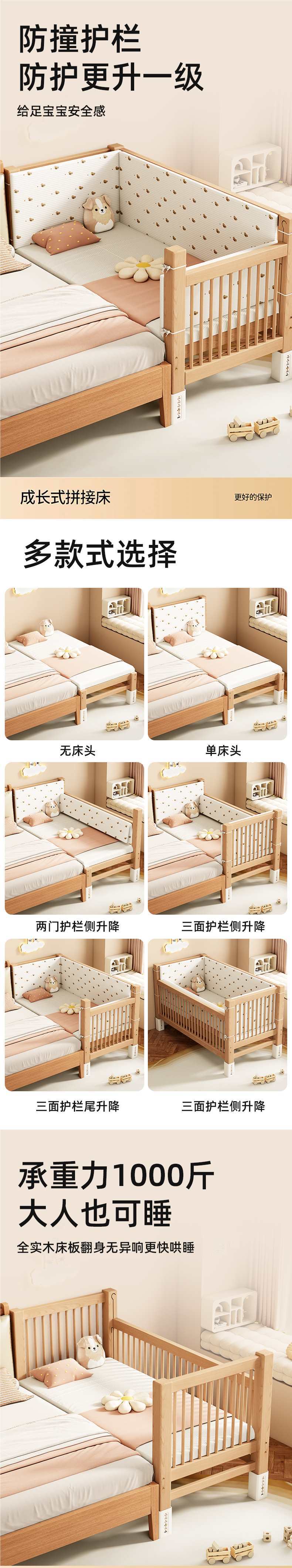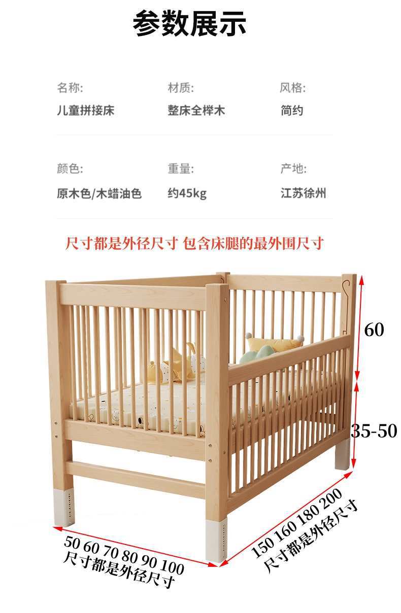 가드레일이 있는 높낮이 조절 가능한 너도밤나무 어린이 접합 침대, 침대 접합 침대 옆에 넓어진 아기 유아용 침대, 단단한 나무 유아용 침대