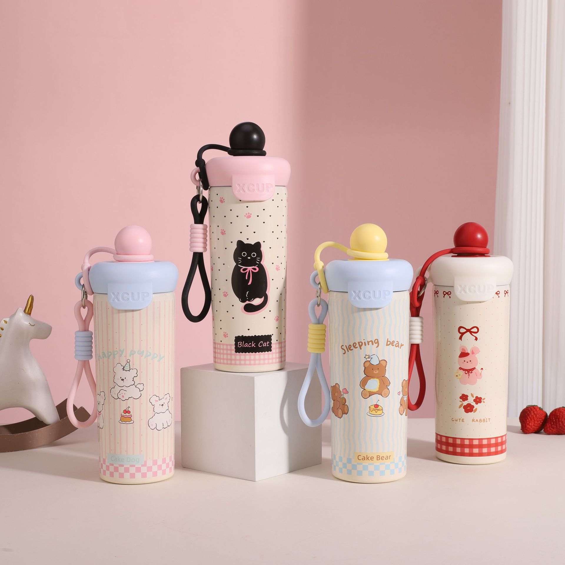 2025년 신형 스테인리스 고급스러운 만화 물컵 학생용 야외 휴대용 빨대 귀여운 동물 보온병스토어 가기