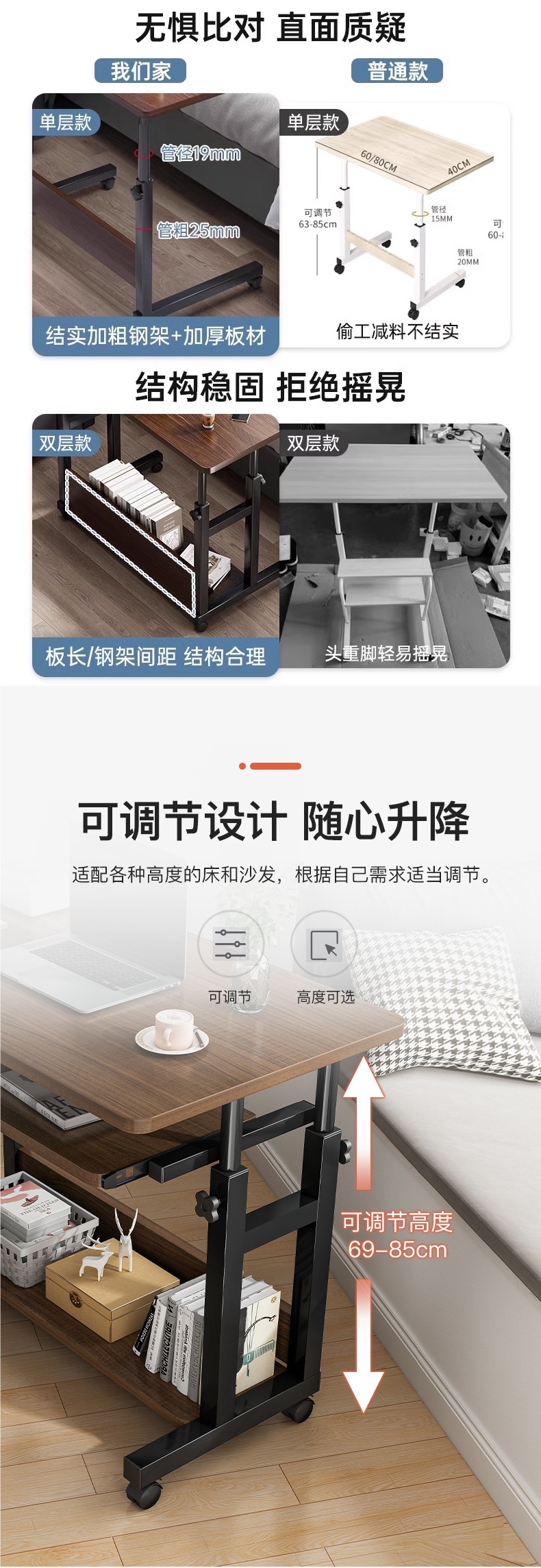 침대 옆 테이블 이동식 리프팅 컴퓨터 테이블 간단한 학생 책상 침실 기숙사 집 학습 간단한 작은 테이블스토어 가기