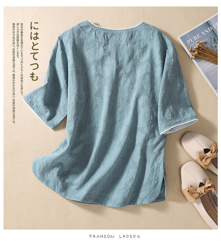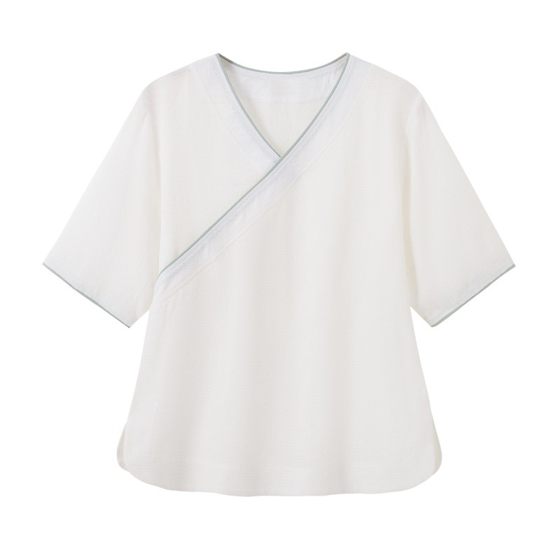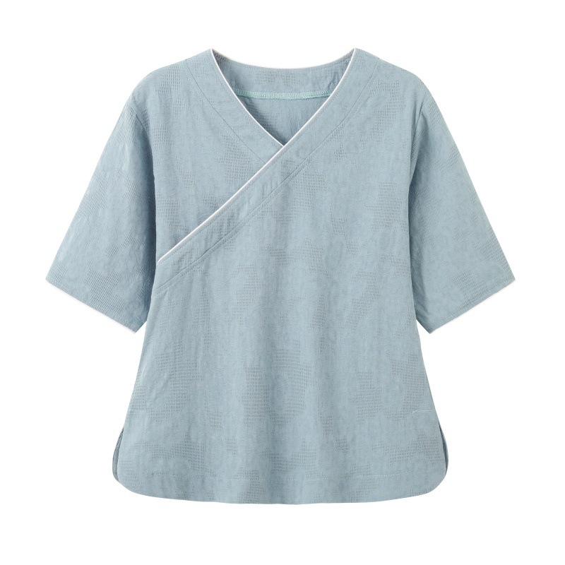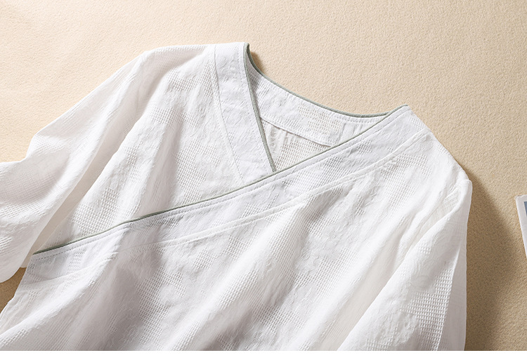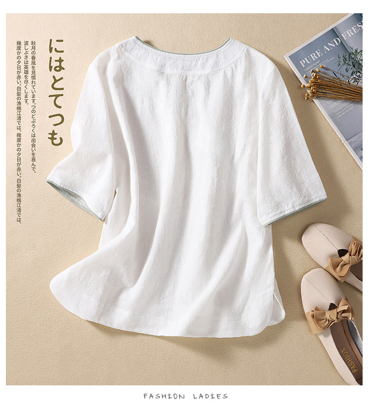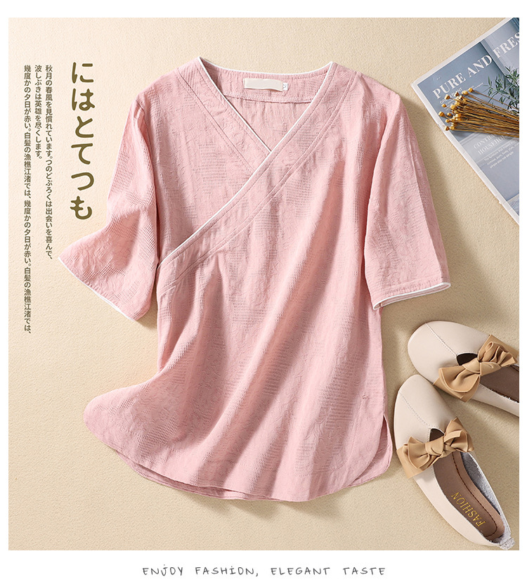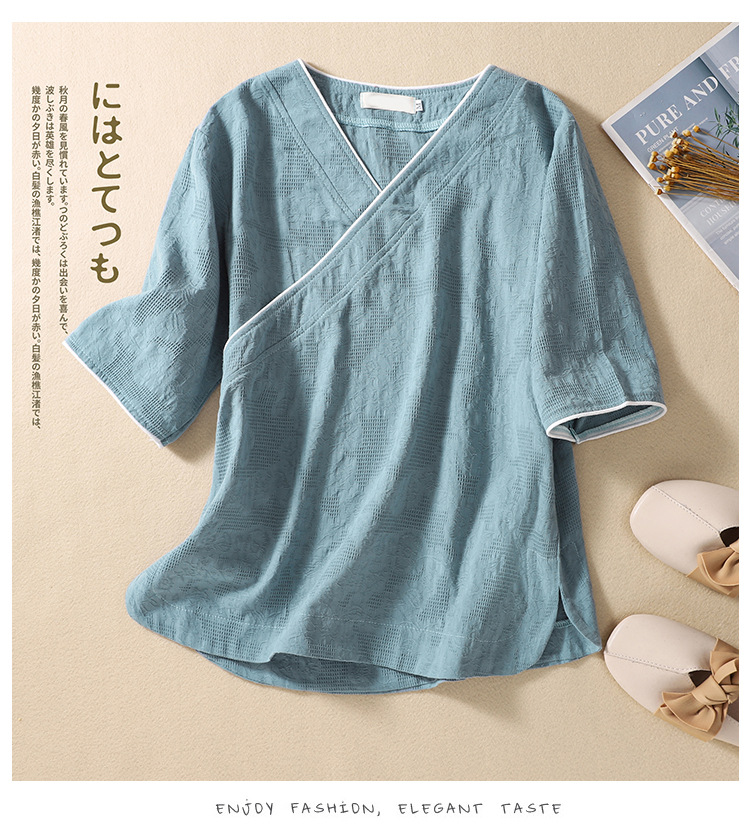 여름 새로운 중국 스타일 여성 의류 예술적 복고풍 코튼 린넨 v 넥 반팔 탑 캐주얼 선 스님 차 정장 세트스토어 가기