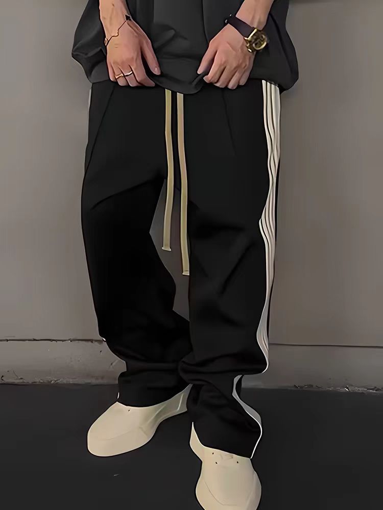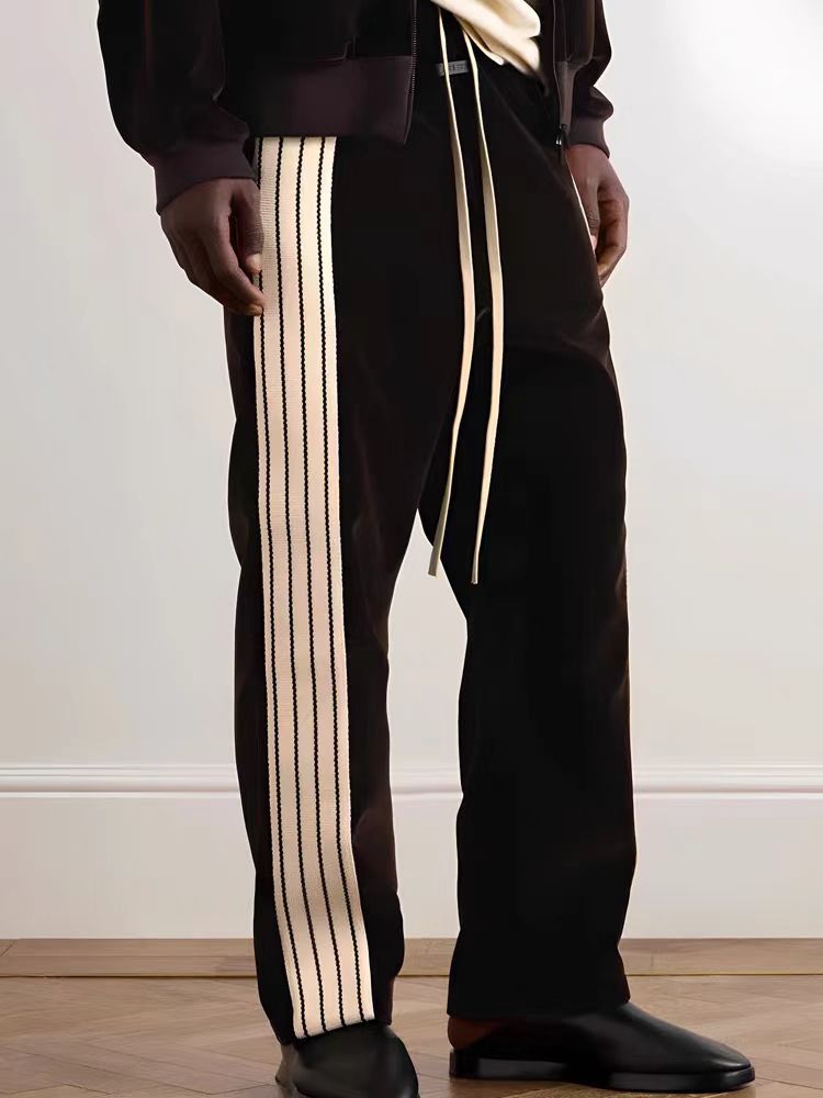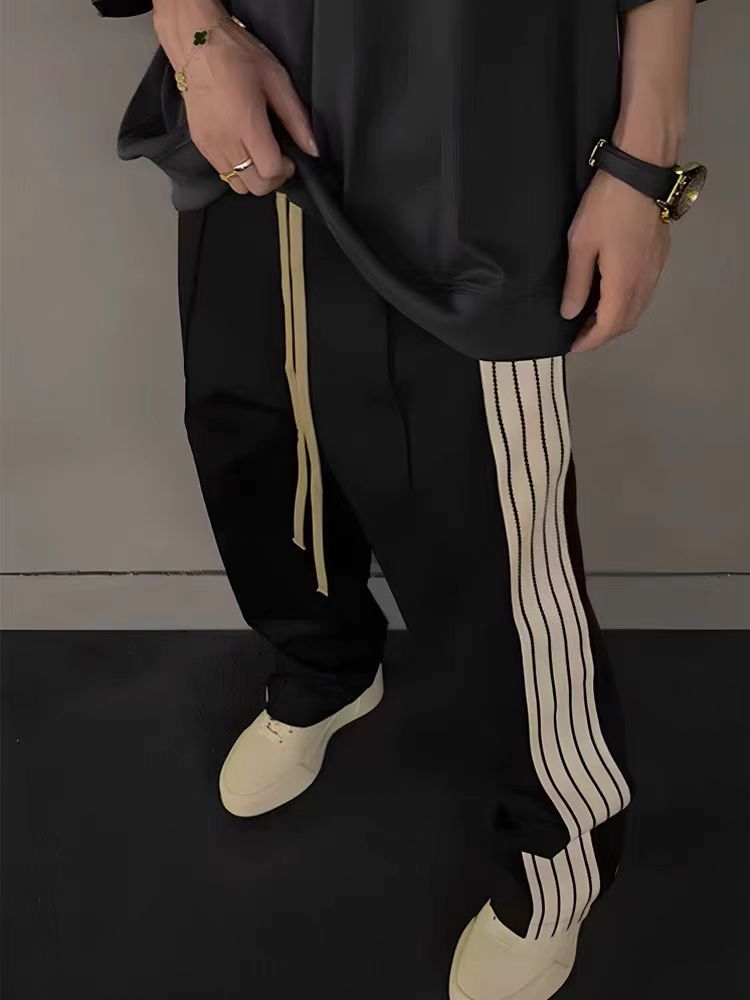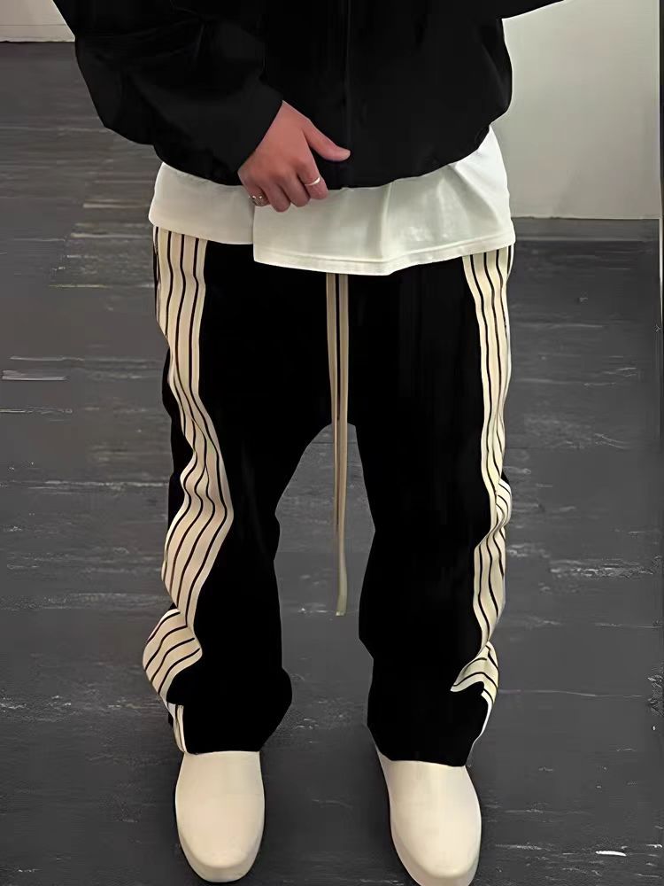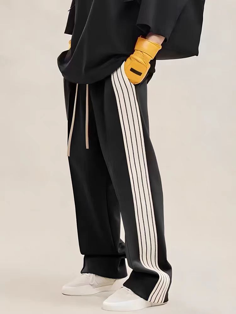 신상품 브랜드 콜라보레이션 삼선 아메리칸 스타일 틈새 트렌드 브랜드 봄 가을 루즈핏 캐주얼 스트레이트 롱 팬츠 기모 안감 남성용스토어 가기