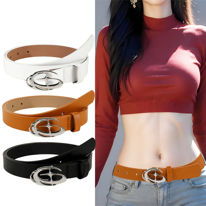트렌디한 새로운 추상 입체 크로스 스타 디자인 버클 벨트 청바지 스커트 액세서리 세련되고 다재다능한 벨트스토어 가기