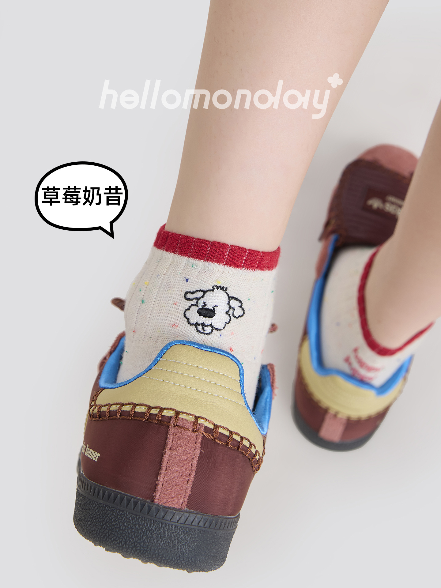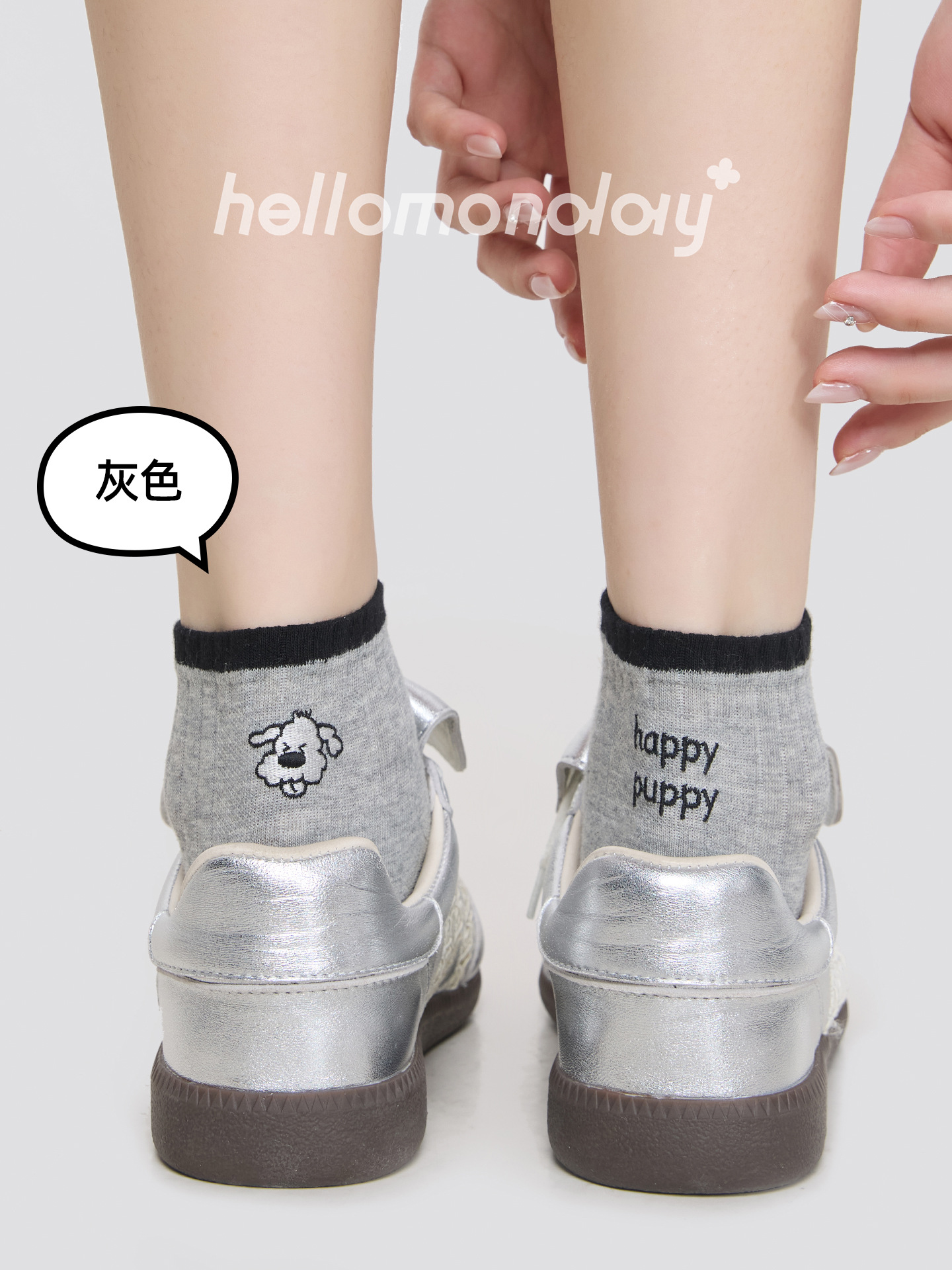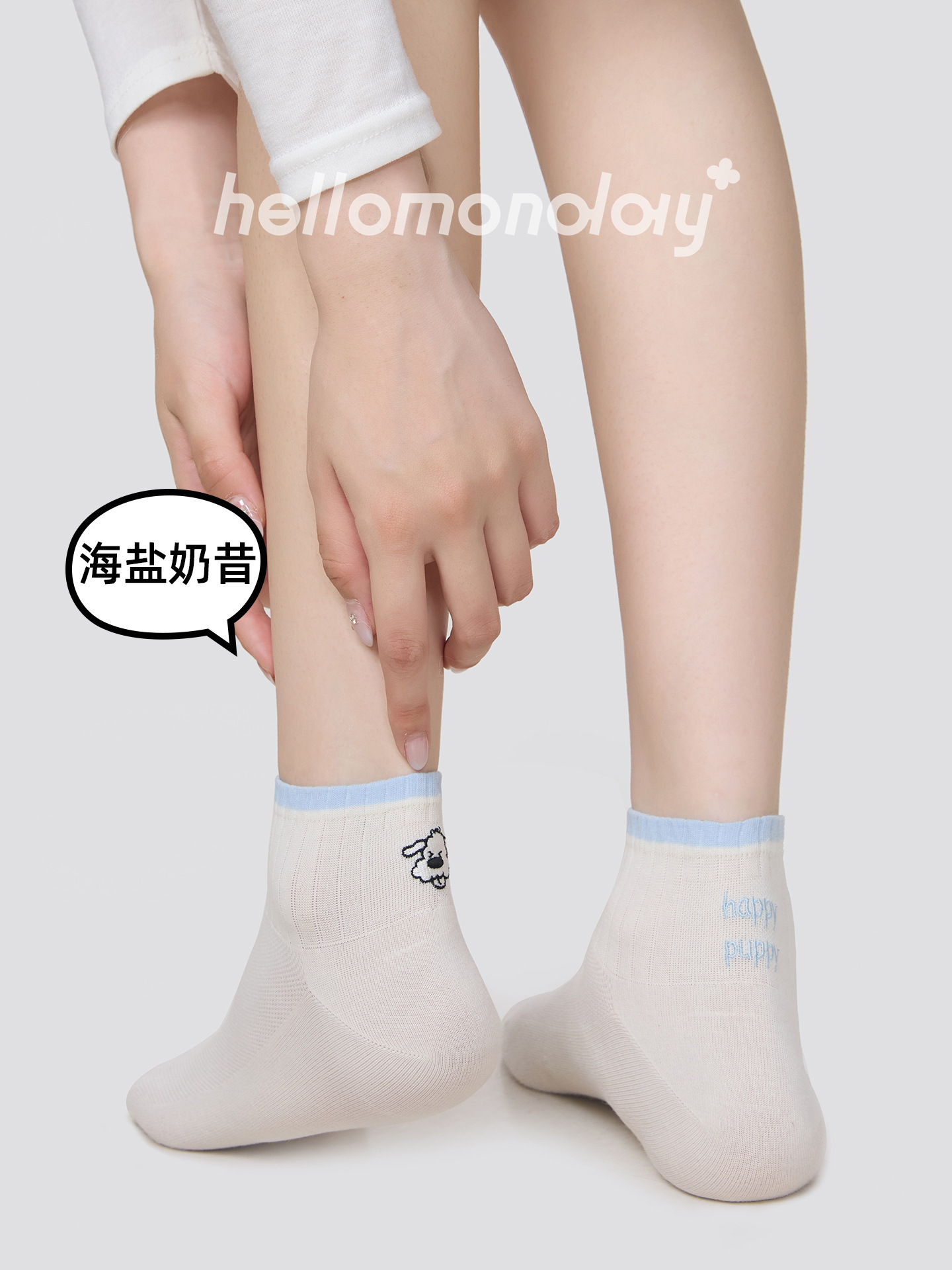 85806 양말 여성 여름 얇은 뼈없는 양말 아이디어 원사 자수 강아지 통기성 귀여운 짧은 양말 대비 색상
