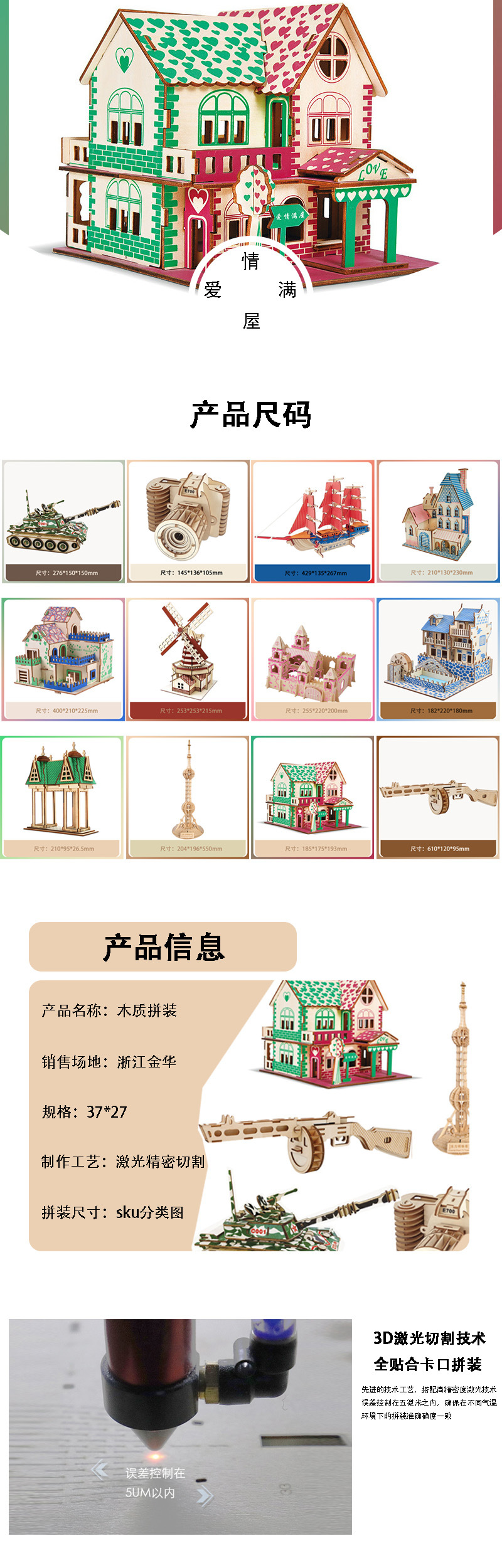 3D 입체 퍼즐 나무 수제 선물 휴일 대형 소년과 소녀 비행기 탱크 캐빈 빌딩 블록 교육 장난감스토어 가기