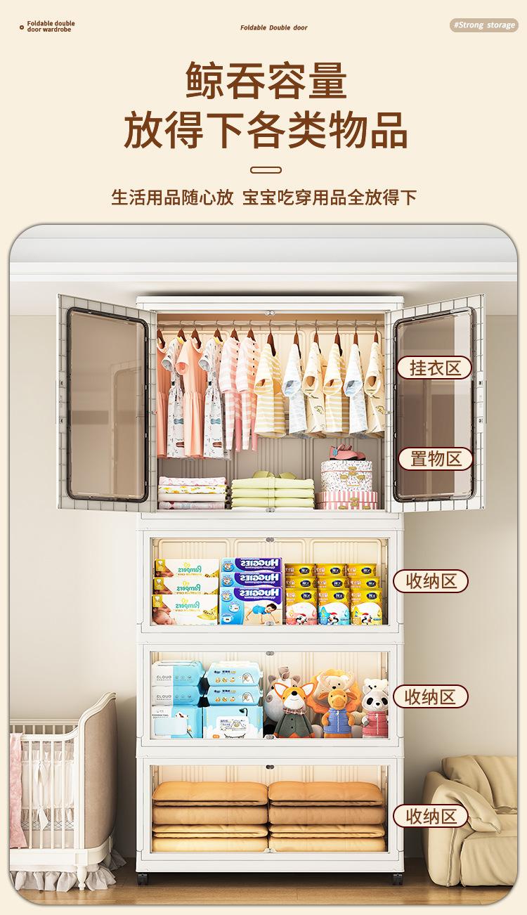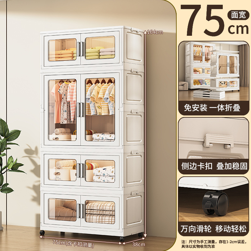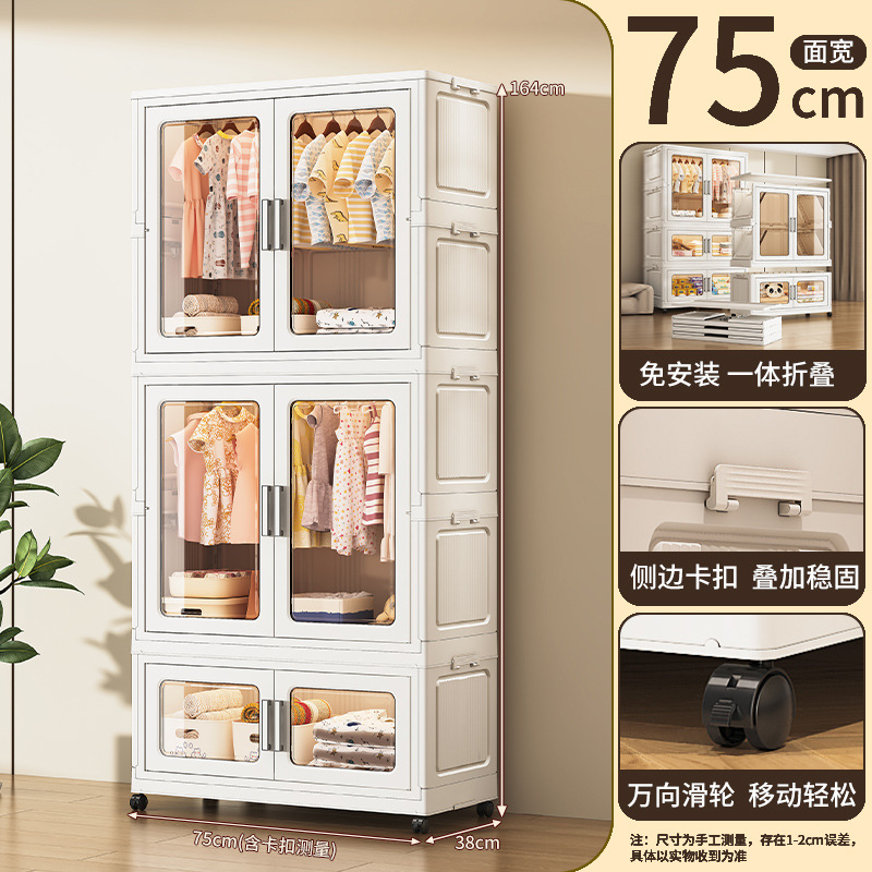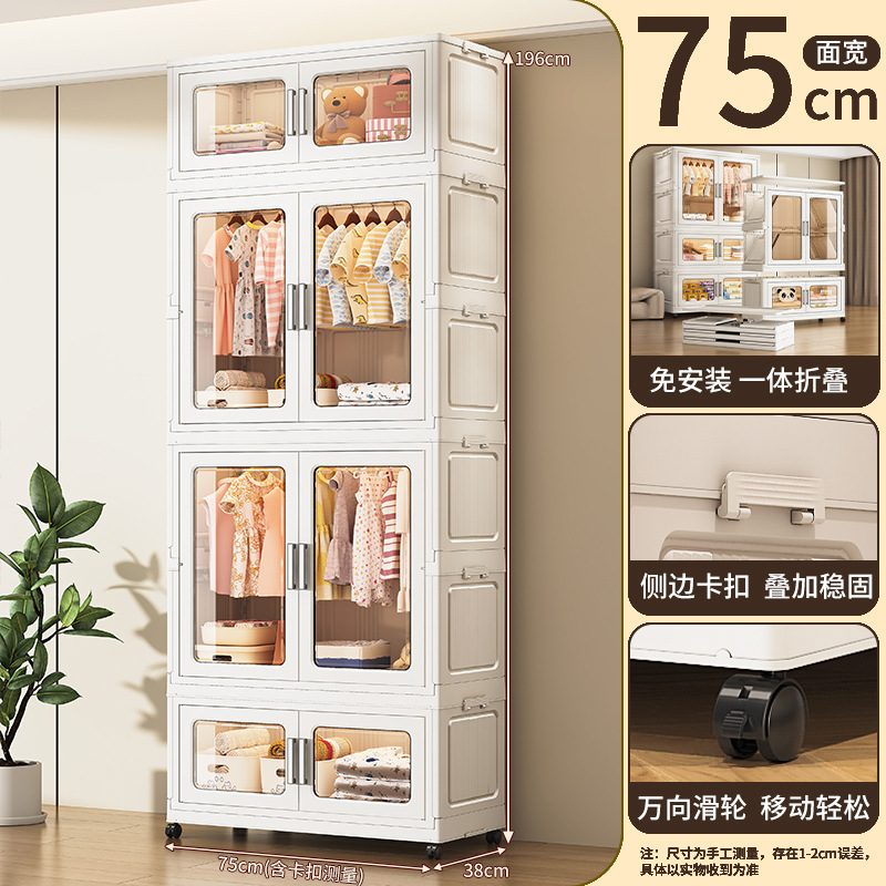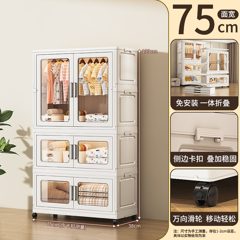 75cm 폭의 수납 캐비닛, 플라스틱 아기 옷장, 접이식 아기 수납 캐비닛, 가정용 다층 캐비닛