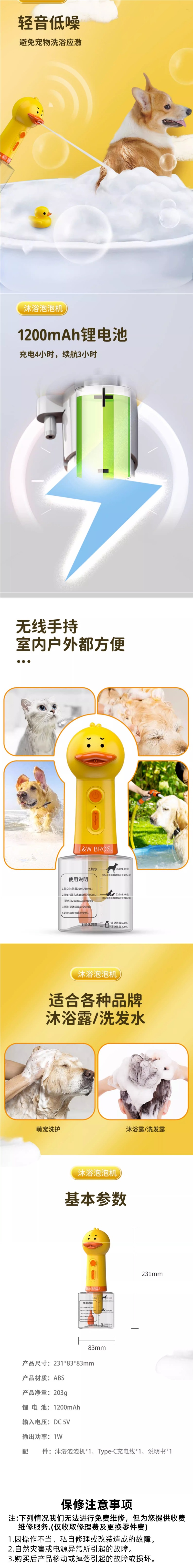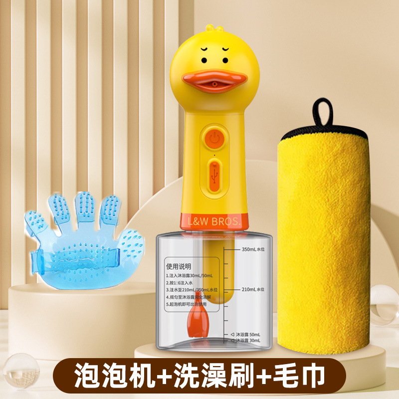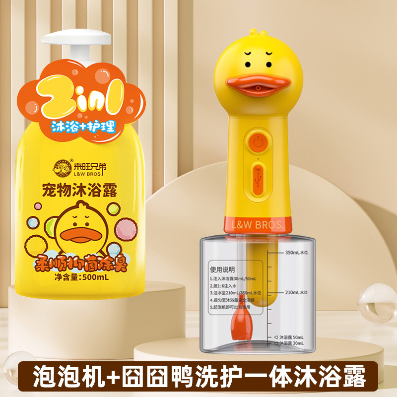 Laiwang Brothers 애완견 샤워 젤 버블 메이커 고양이 목욕 버블 메이커 희석 병 작은 노란색 오리 버블 메이커