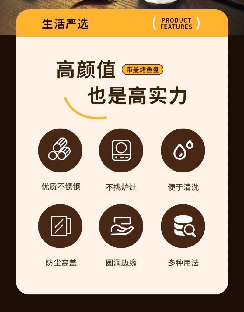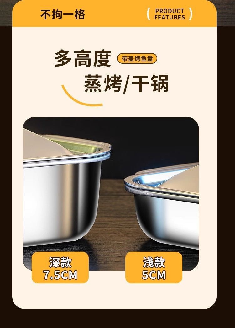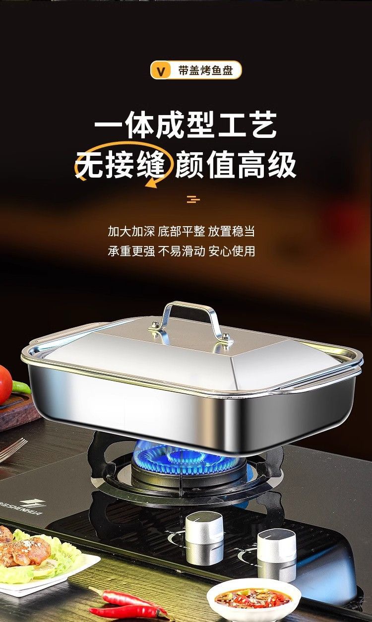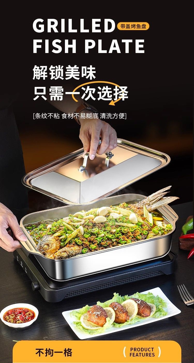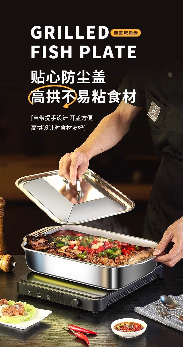 뚜껑이 있는 식품등급 스테인리스 생선구이 접시, 바비큐 접시 트레이, 사각 접시, 해산물 접시, 캠핑 피크닉 접시, 전골 접시스토어 가기
