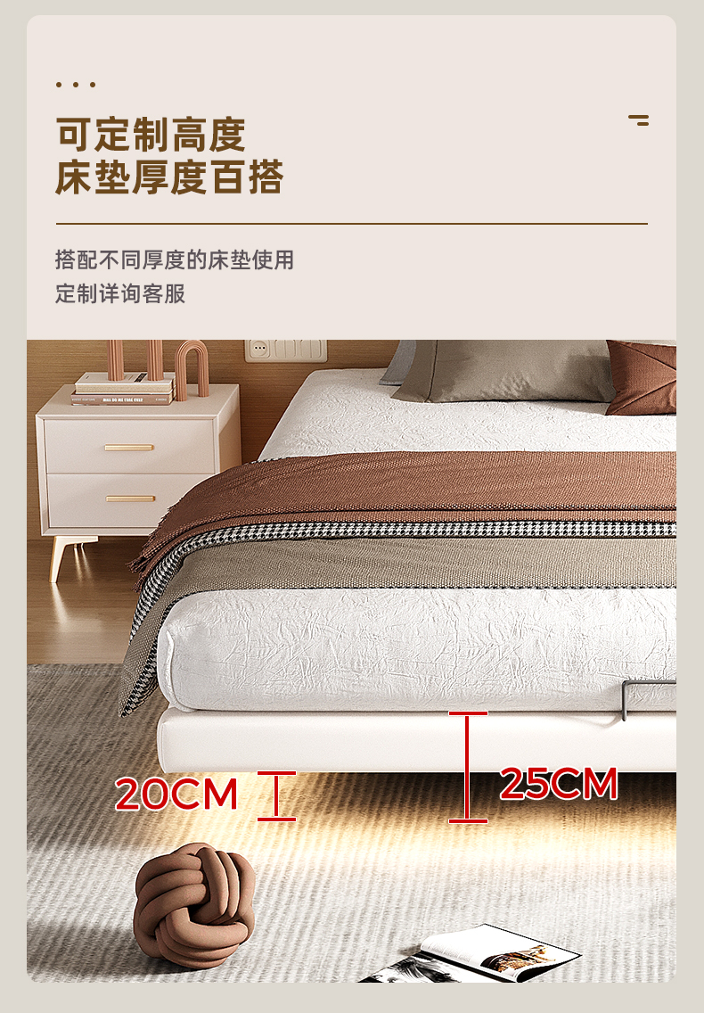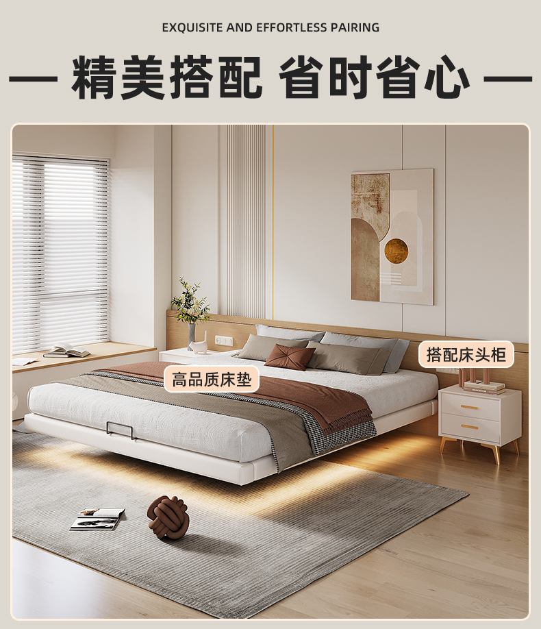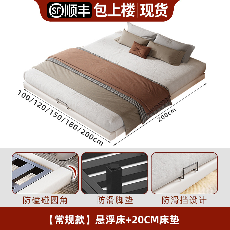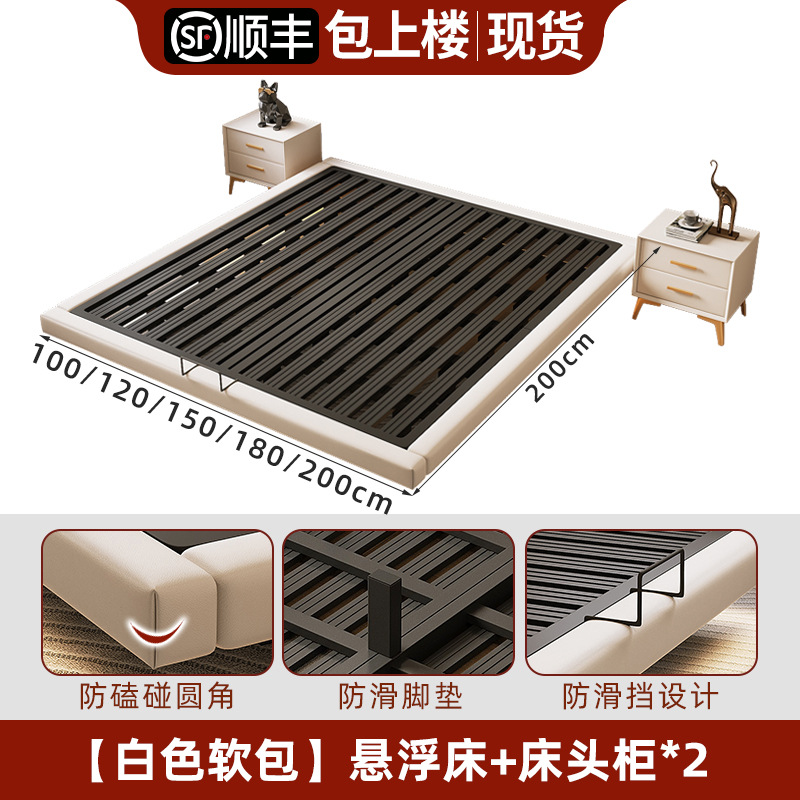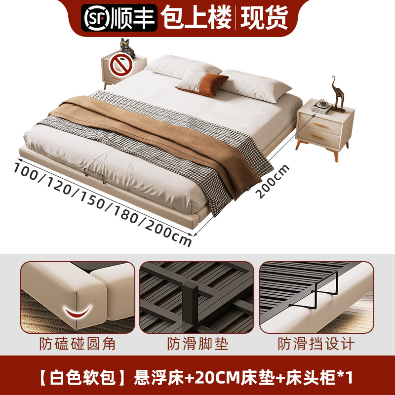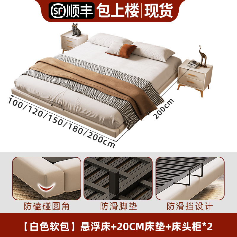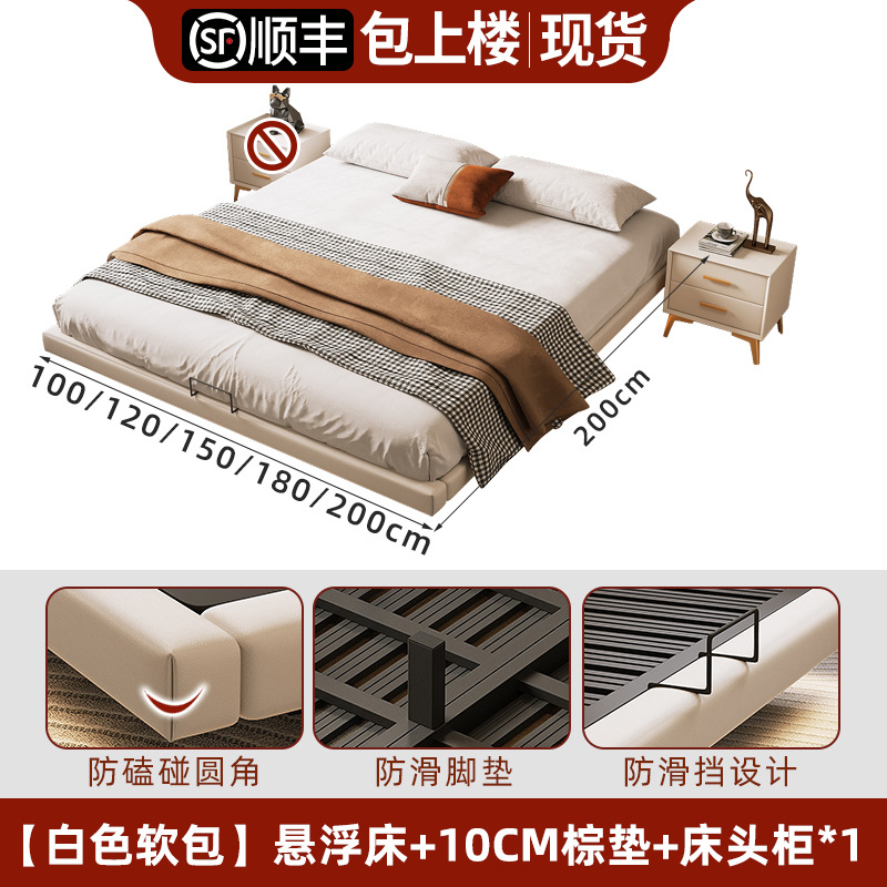 • 업그레이드된 화이트 소프트 패키지: 플로팅 침대 + 침대 옆 탁자 1개 + [ 20cm 라텍스 스프링 코코넛 야자 매트리스 ]