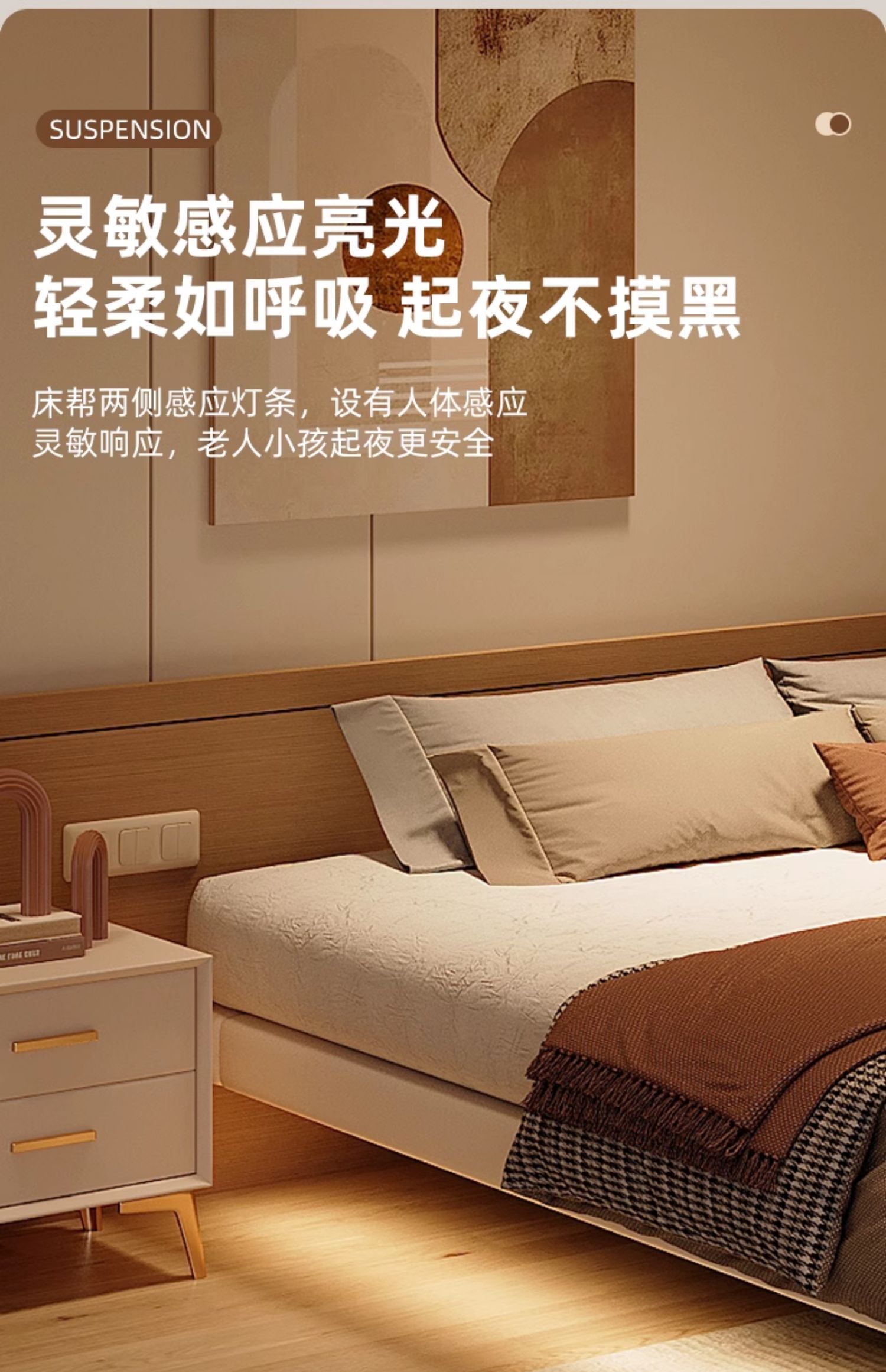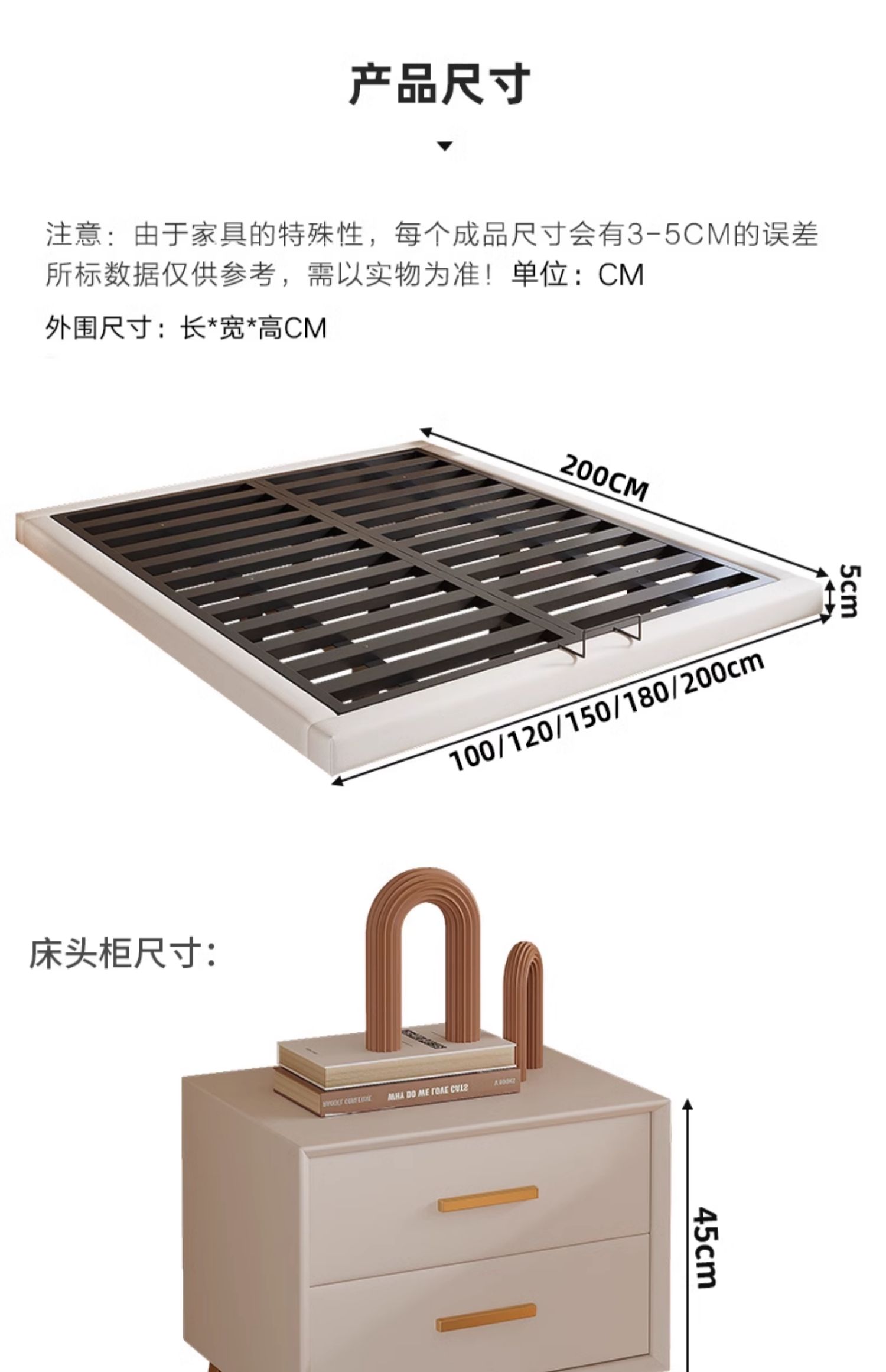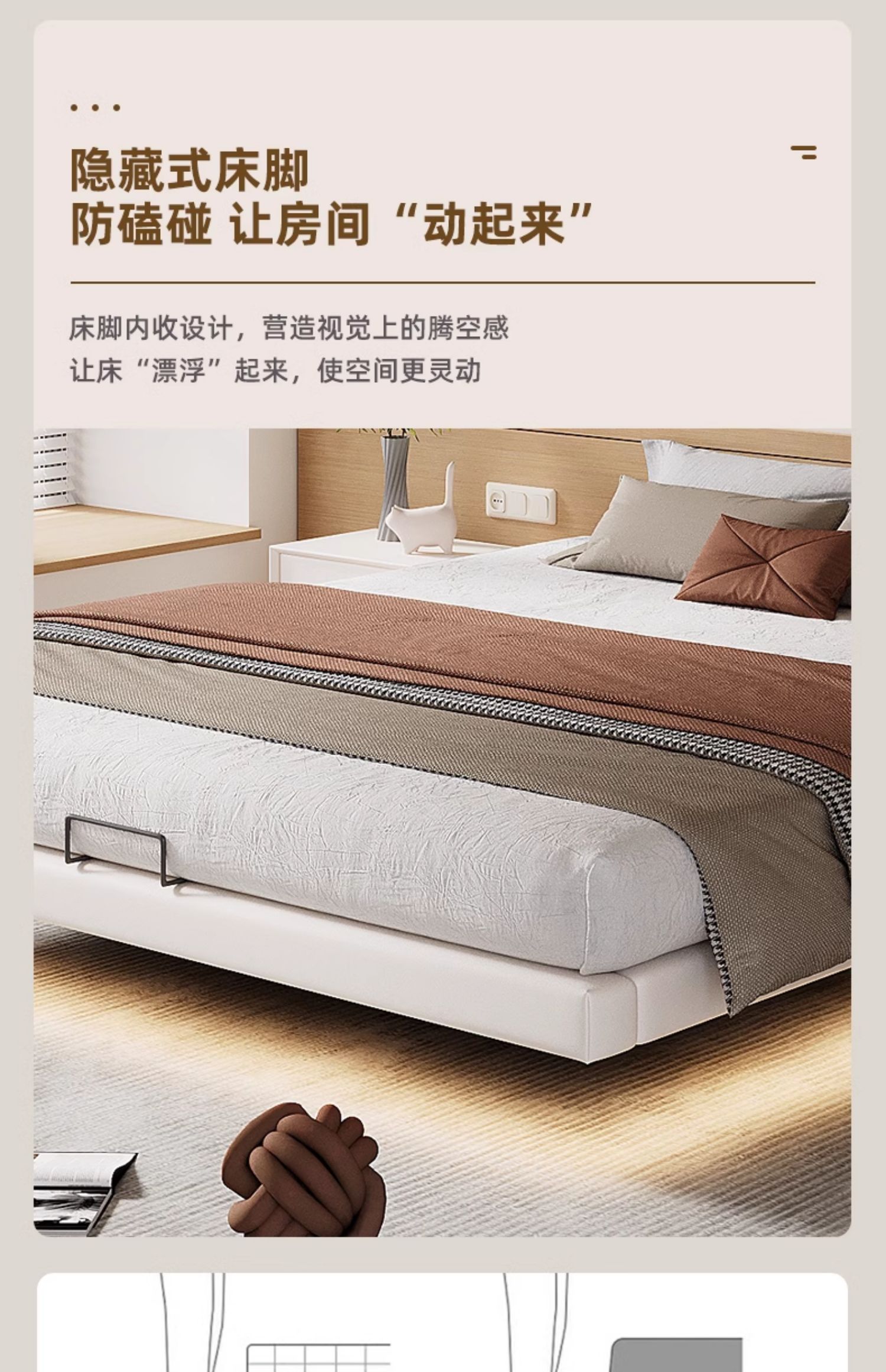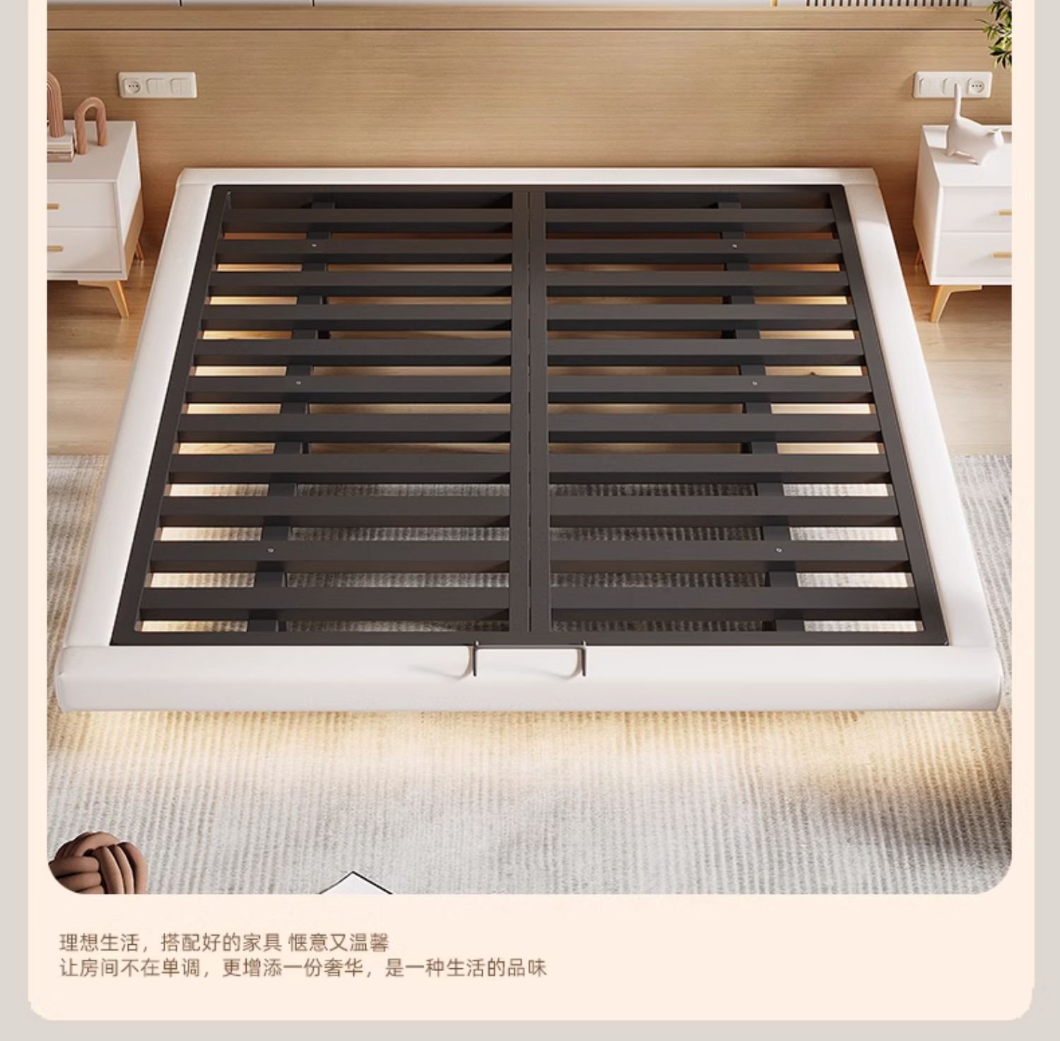 • 업그레이드된 화이트 소프트 패키지: 플로팅 침대 + 침대 옆 탁자 1개 + [ 20cm 라텍스 스프링 코코넛 야자 매트리스 ]