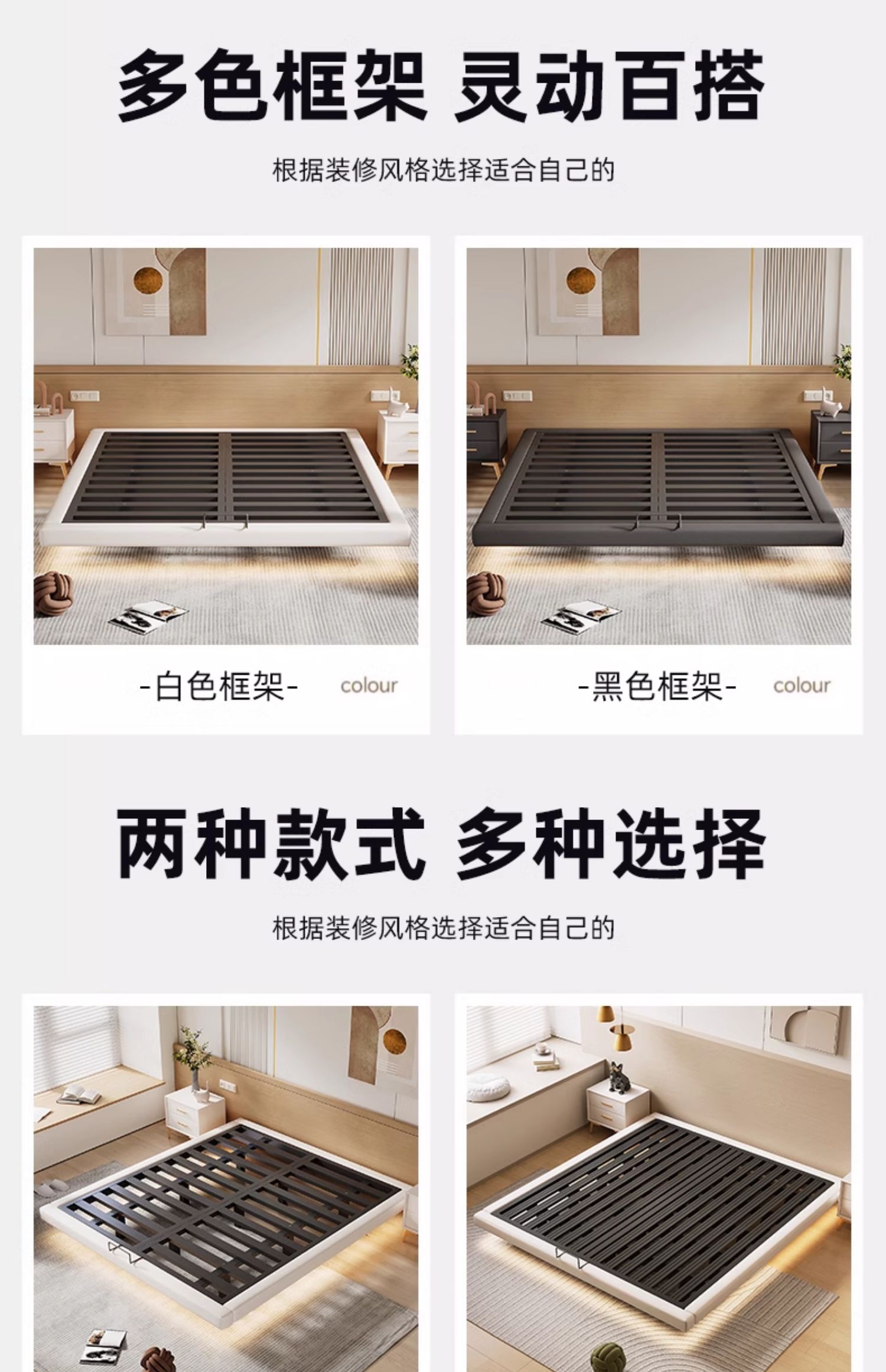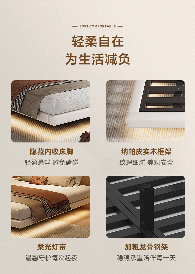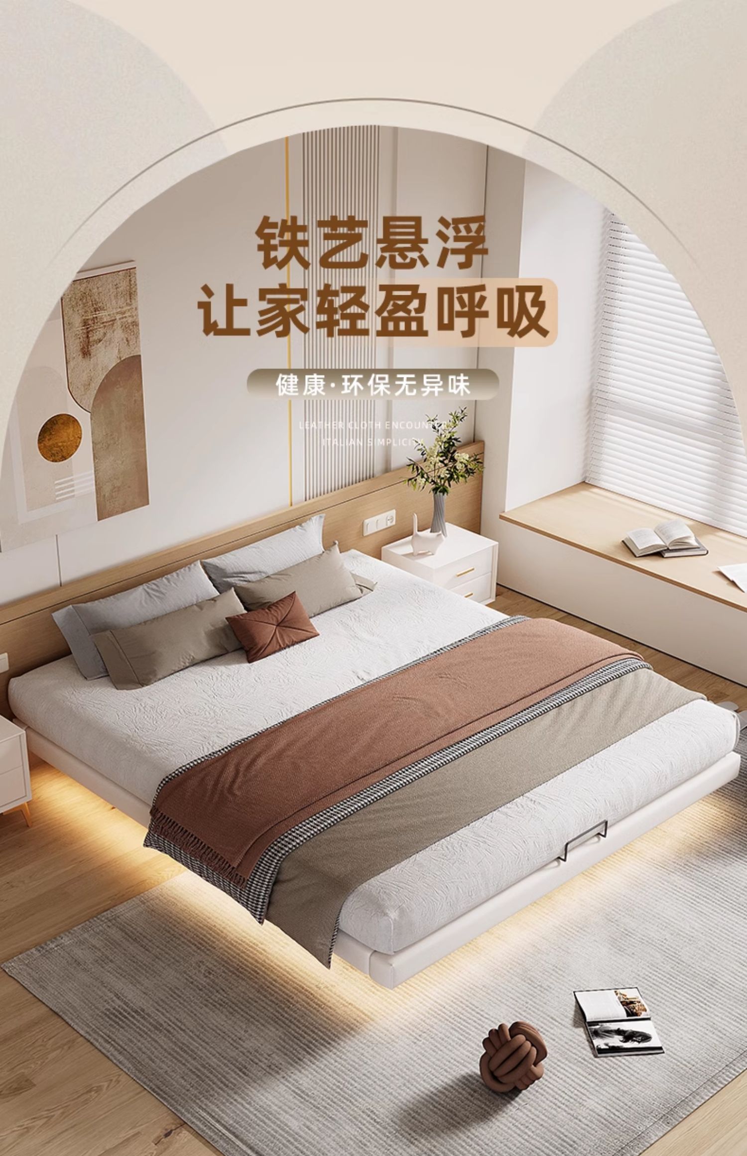 • 업그레이드된 화이트 소프트 패키지: 플로팅 침대 + 매트리스 [ 20cm 라텍스 스프링 코코넛 팜 매트리스 ]