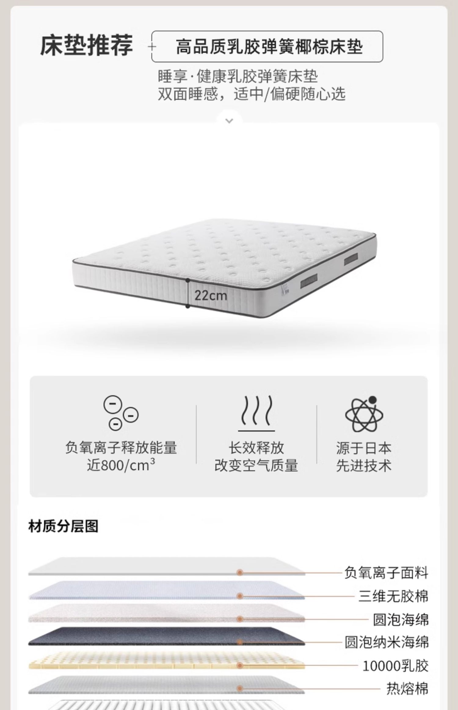 • 흰색 소프트 패키지: 매달린 침대 + 매트리스 [ 20cm 라텍스 스프링 코코넛 야자 매트리스 ]