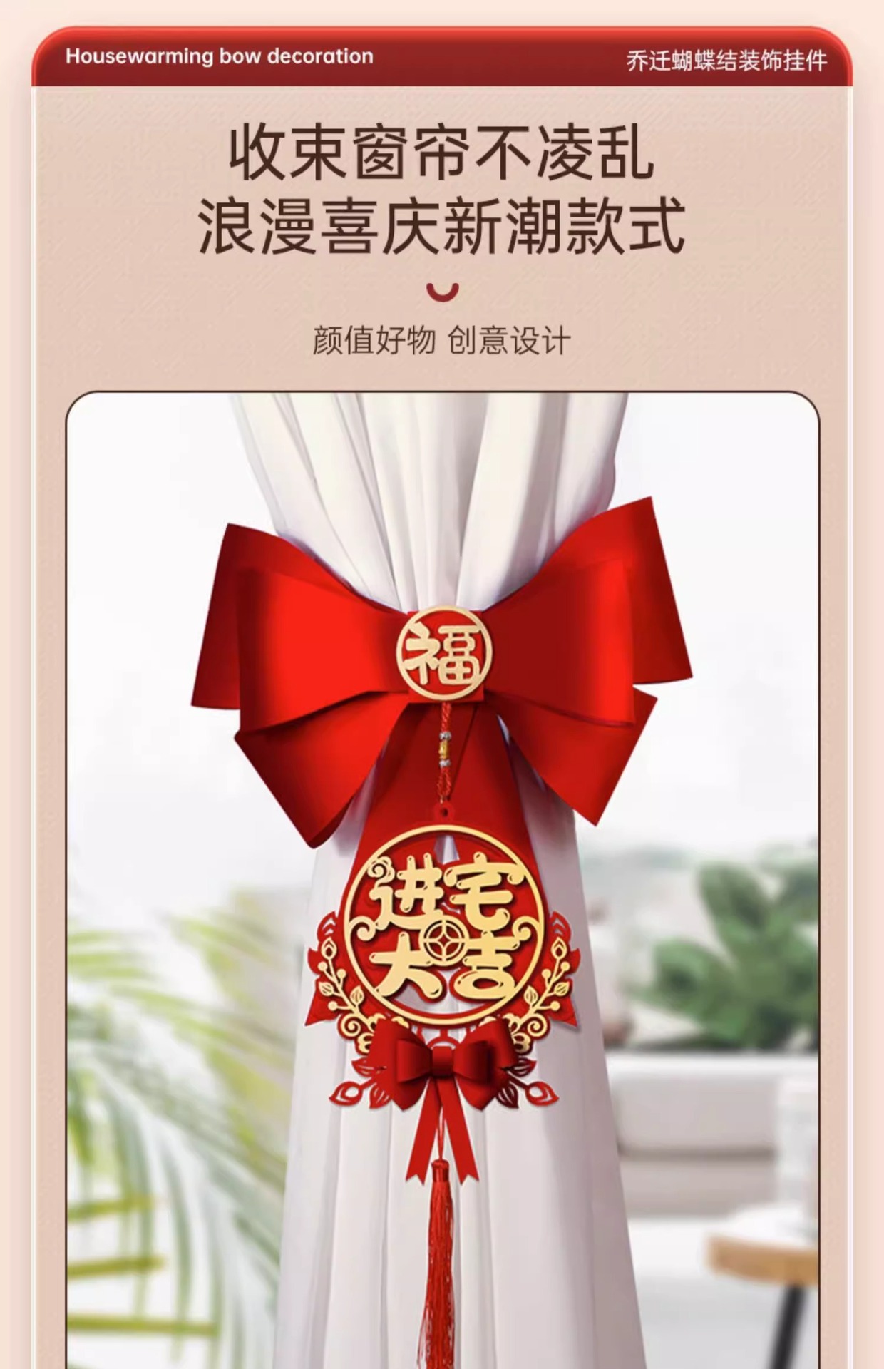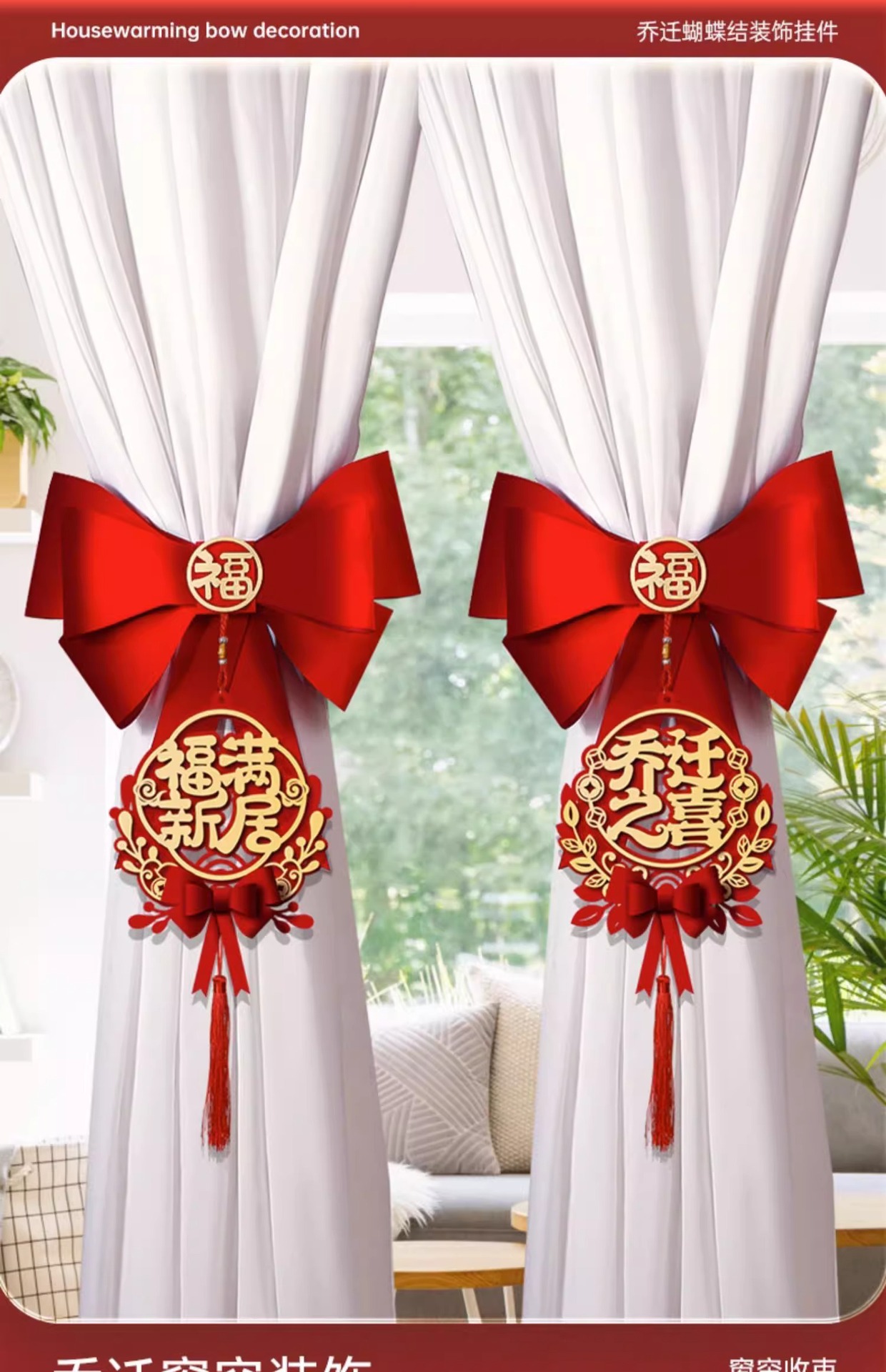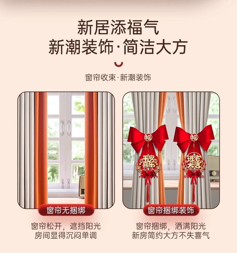 乔迁之喜窗帘装饰绑带新居新房搬家进宅入伙仪式布置挂件礼物用品乔迁之喜装饰摆件