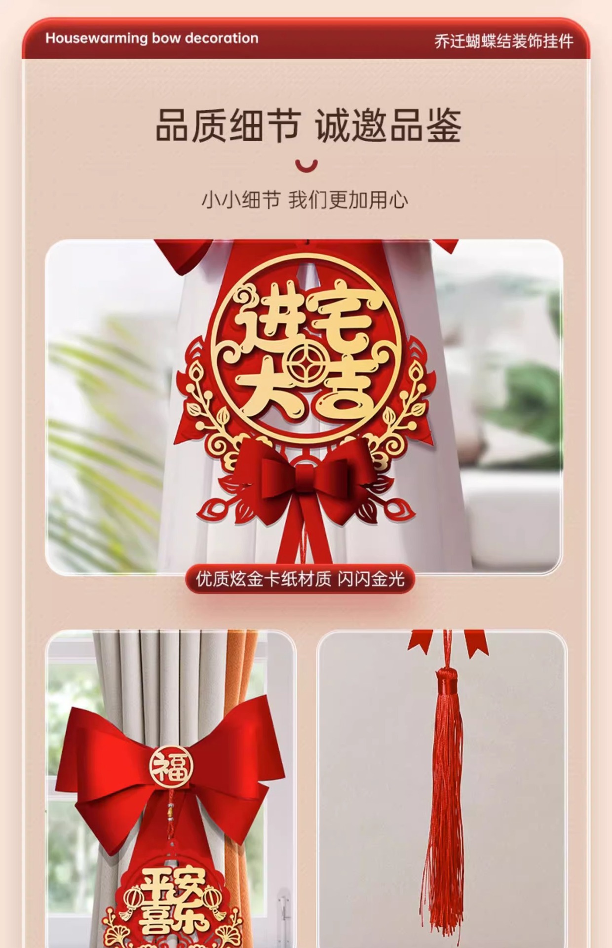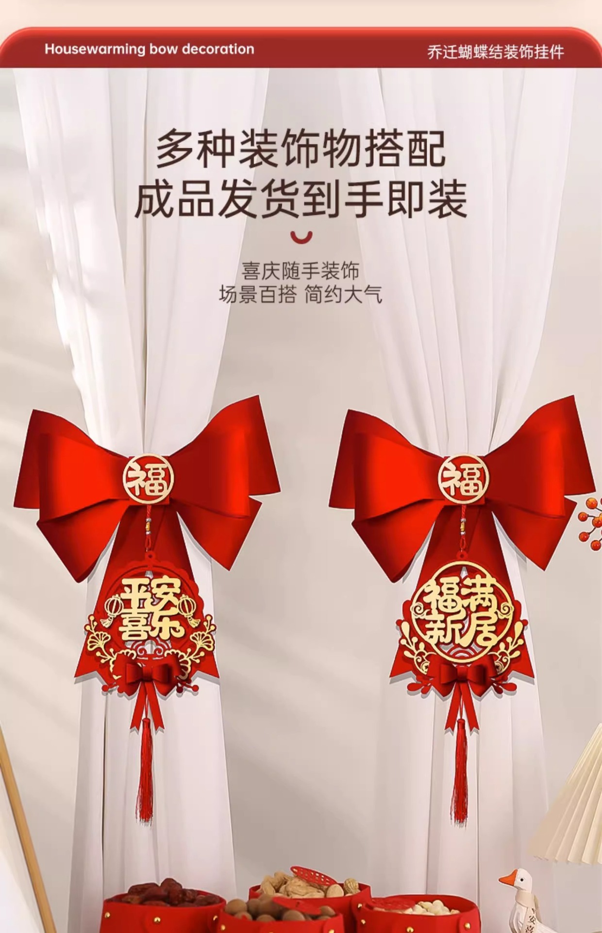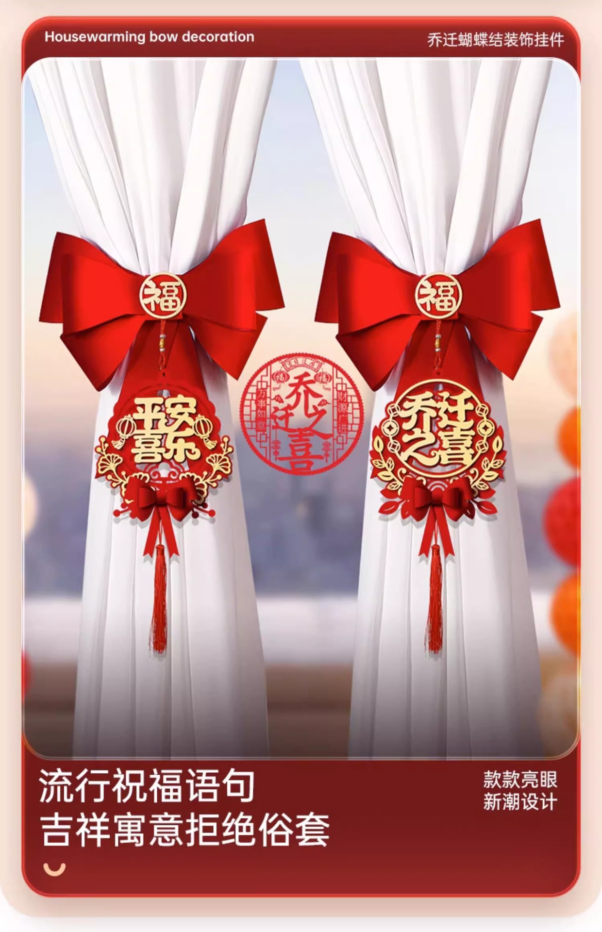 乔迁之喜窗帘装饰绑带新居新房搬家进宅入伙仪式布置挂件礼物用品乔迁之喜装饰摆件
