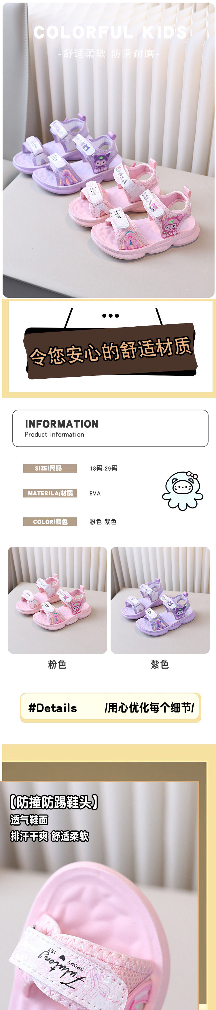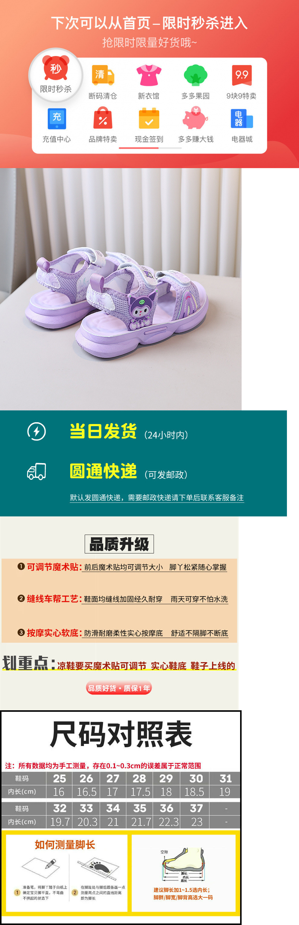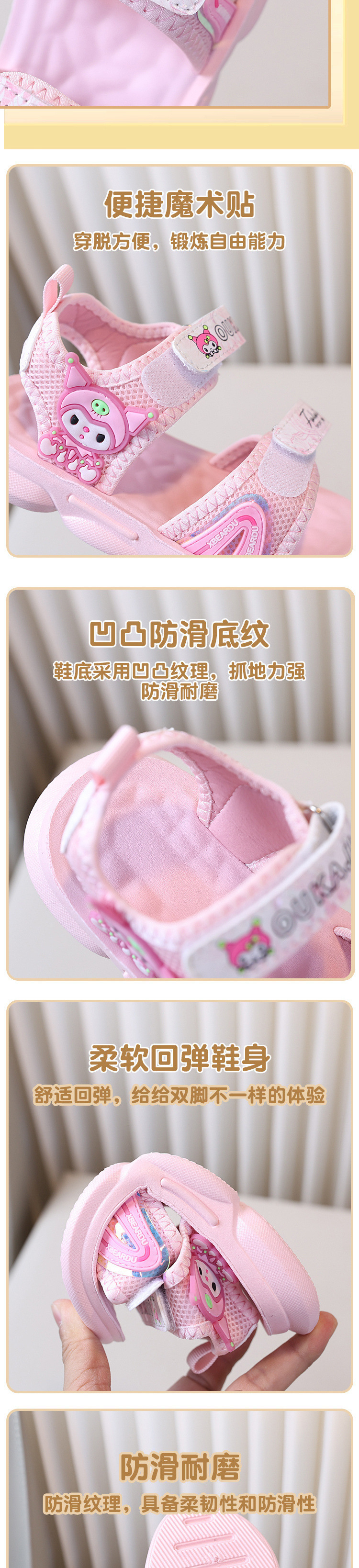 Kuromi 어린이 샌들 소녀 2025 새로운 미끄럼 방지 중대형 어린이 해변 신발 공주 스타일 패션 소녀 샌들스토어 가기