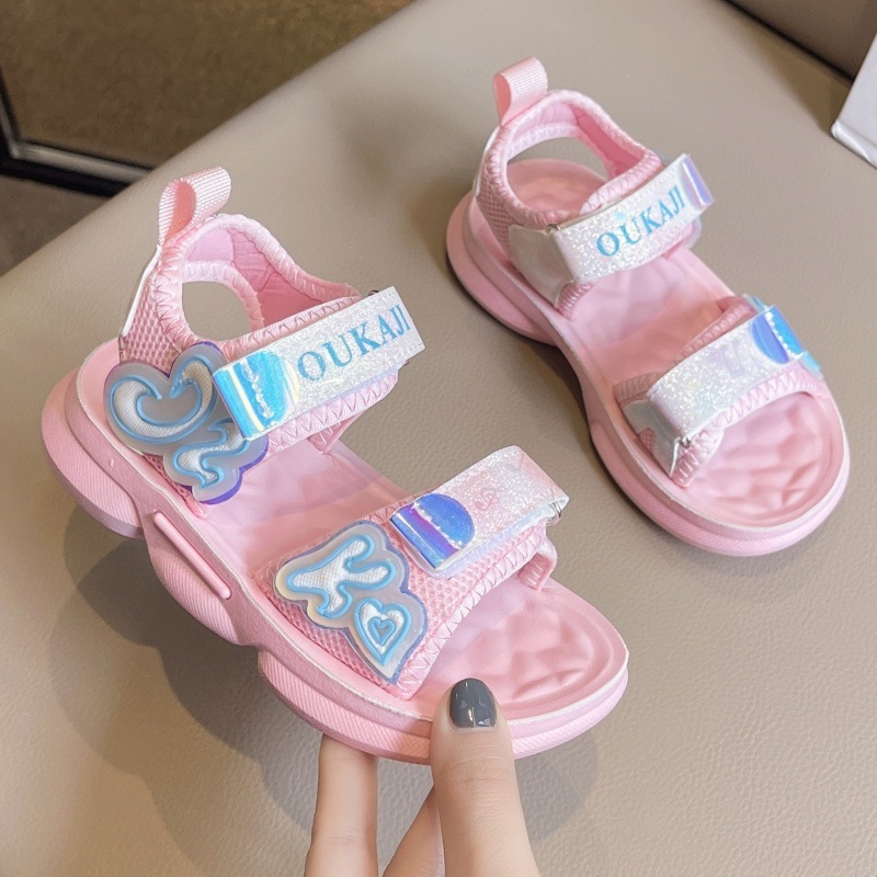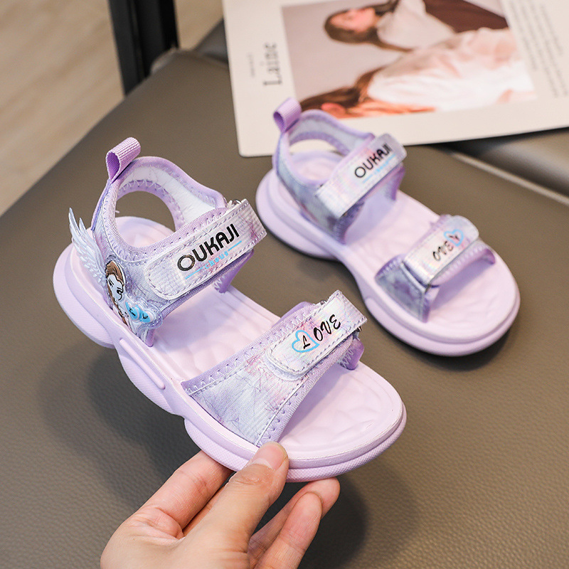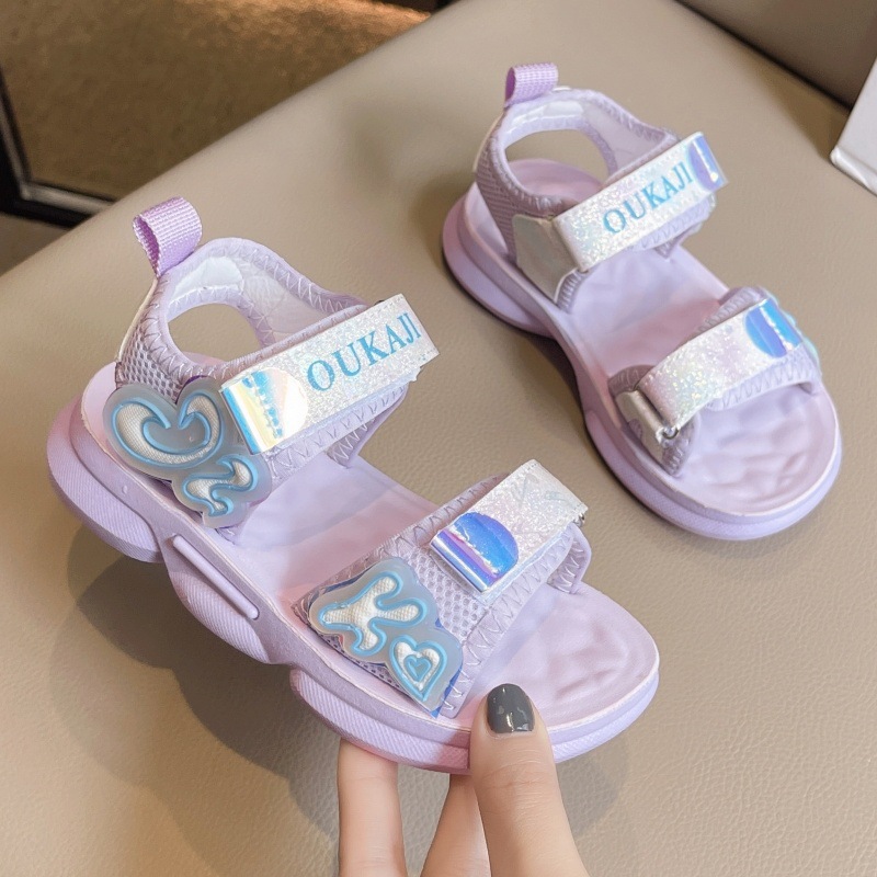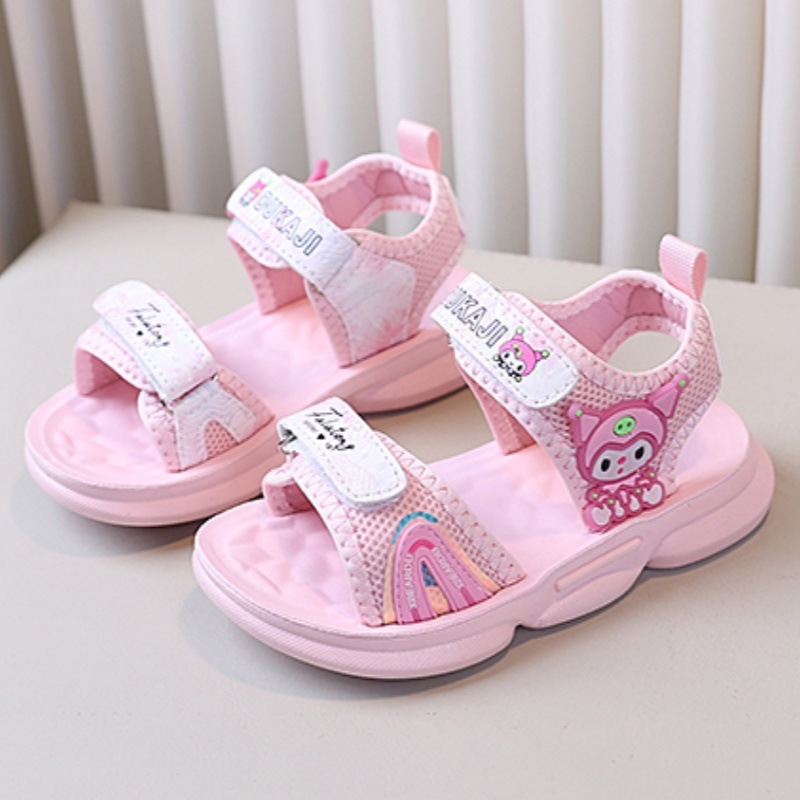 Kuromi 어린이 샌들 소녀 2025 새로운 미끄럼 방지 중대형 어린이 해변 신발 공주 스타일 패션 소녀 샌들