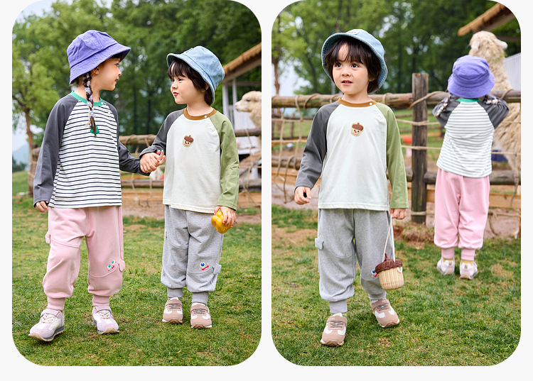 두두가족 아동용 긴팔 티셔츠 봄 신상 남아 래글런 슬리브 상의 봄옷 여아 베이스 레이어 아동복 트렌드