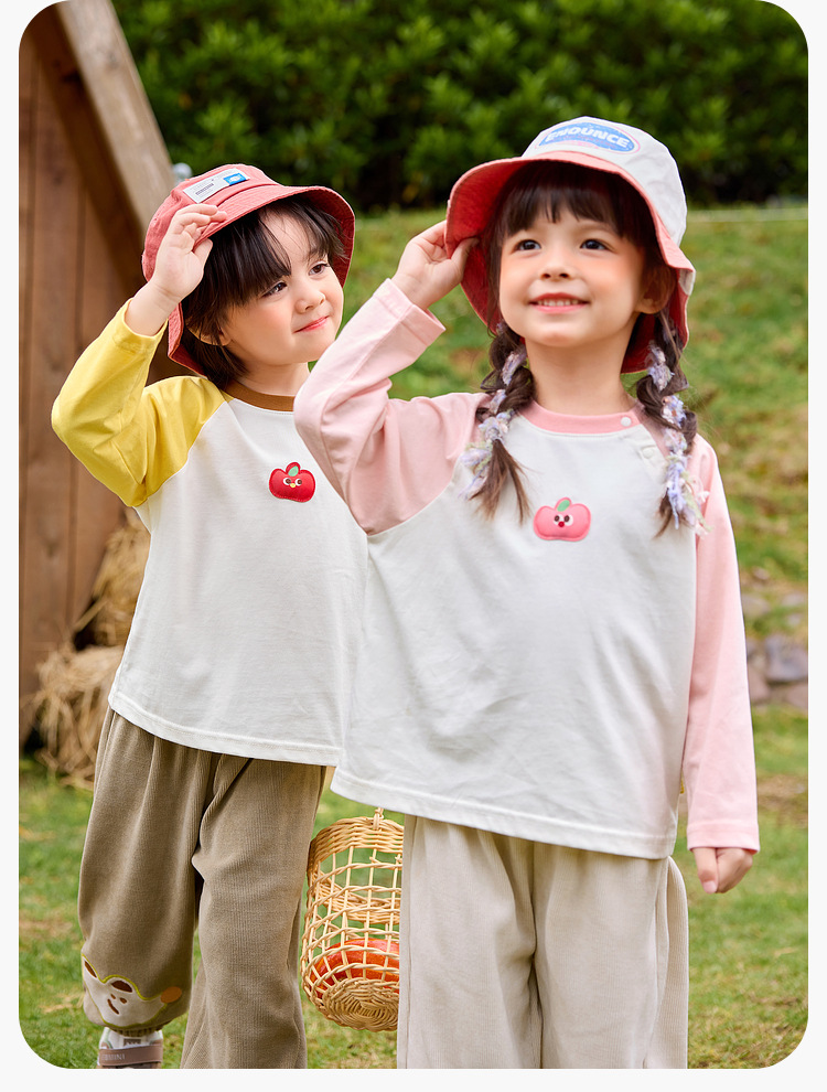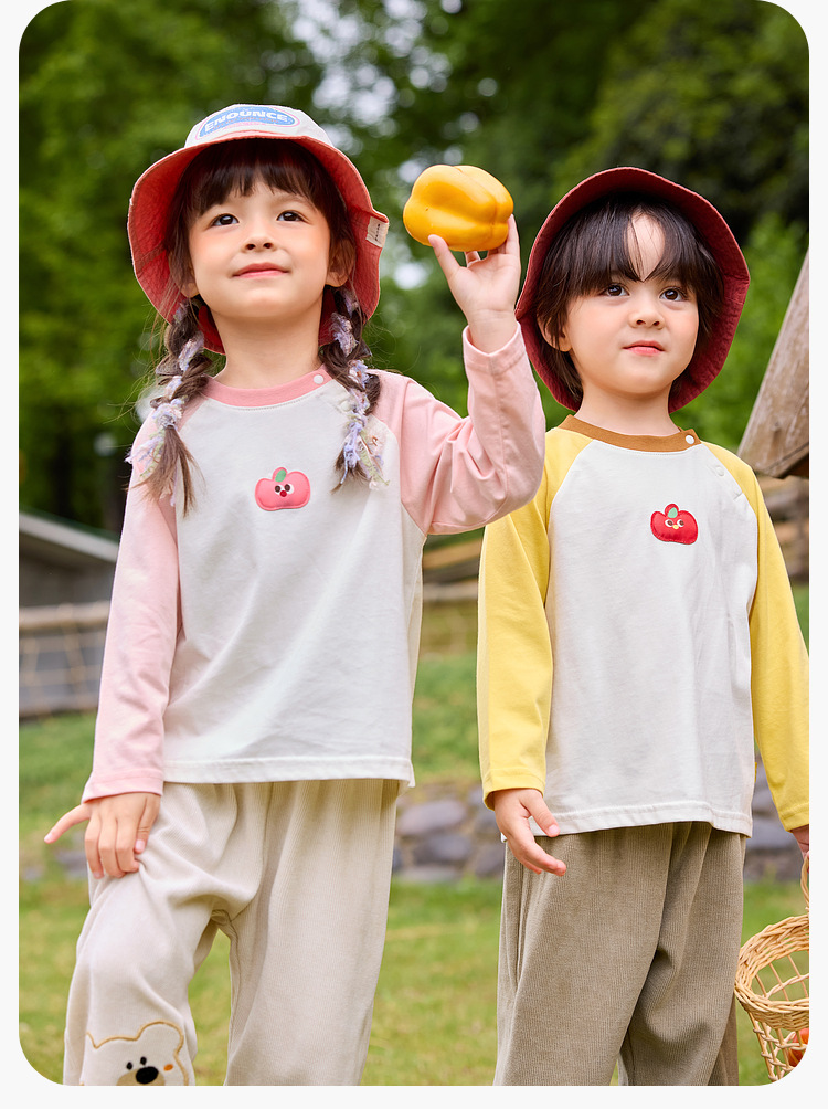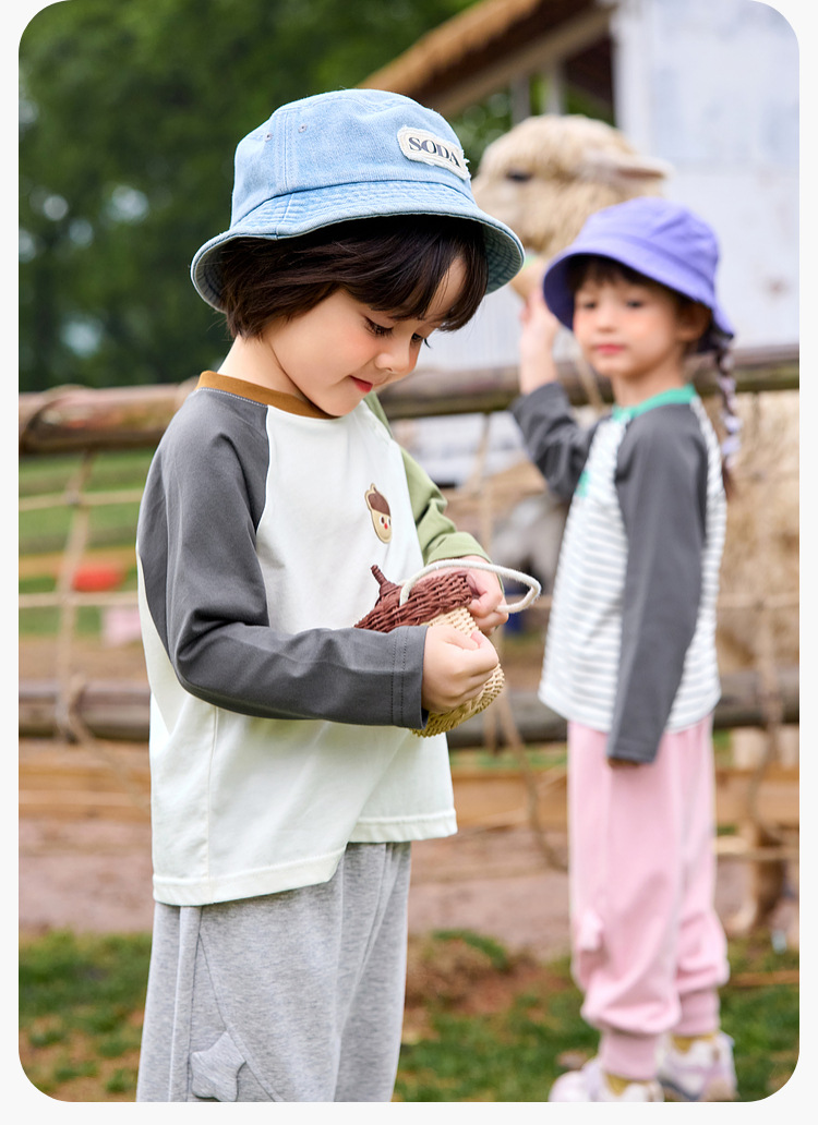 두두가족 아동용 긴팔 티셔츠 봄 신상 남아 래글런 슬리브 상의 봄옷 여아 베이스 레이어 아동복 트렌드스토어 가기
