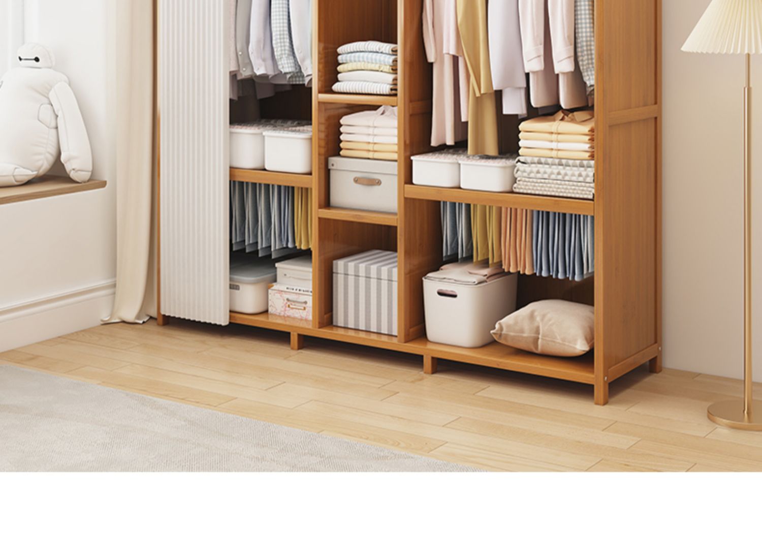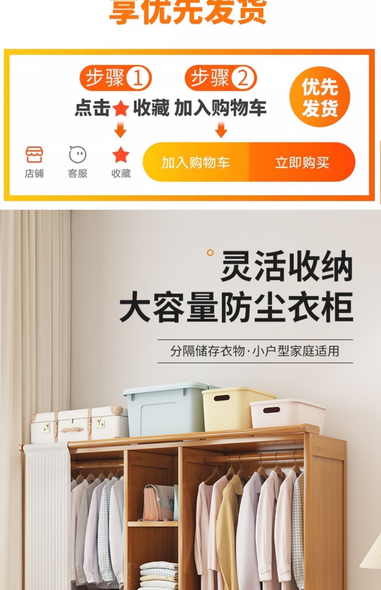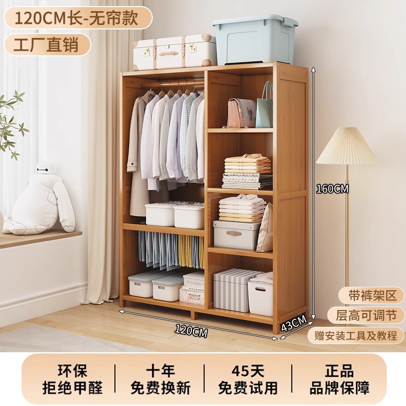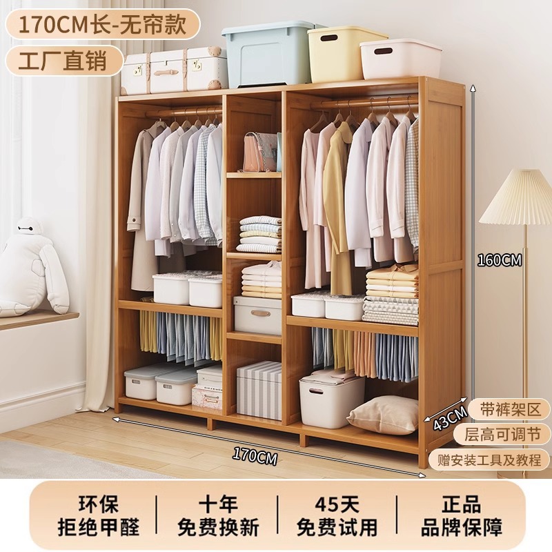 가정용 침실 옷장을 위한 간단한 단단한 나무 옷장 완전히 밀폐된 커튼 천 캐비닛 임대실 조립 두꺼운 코트 랙스토어 가기