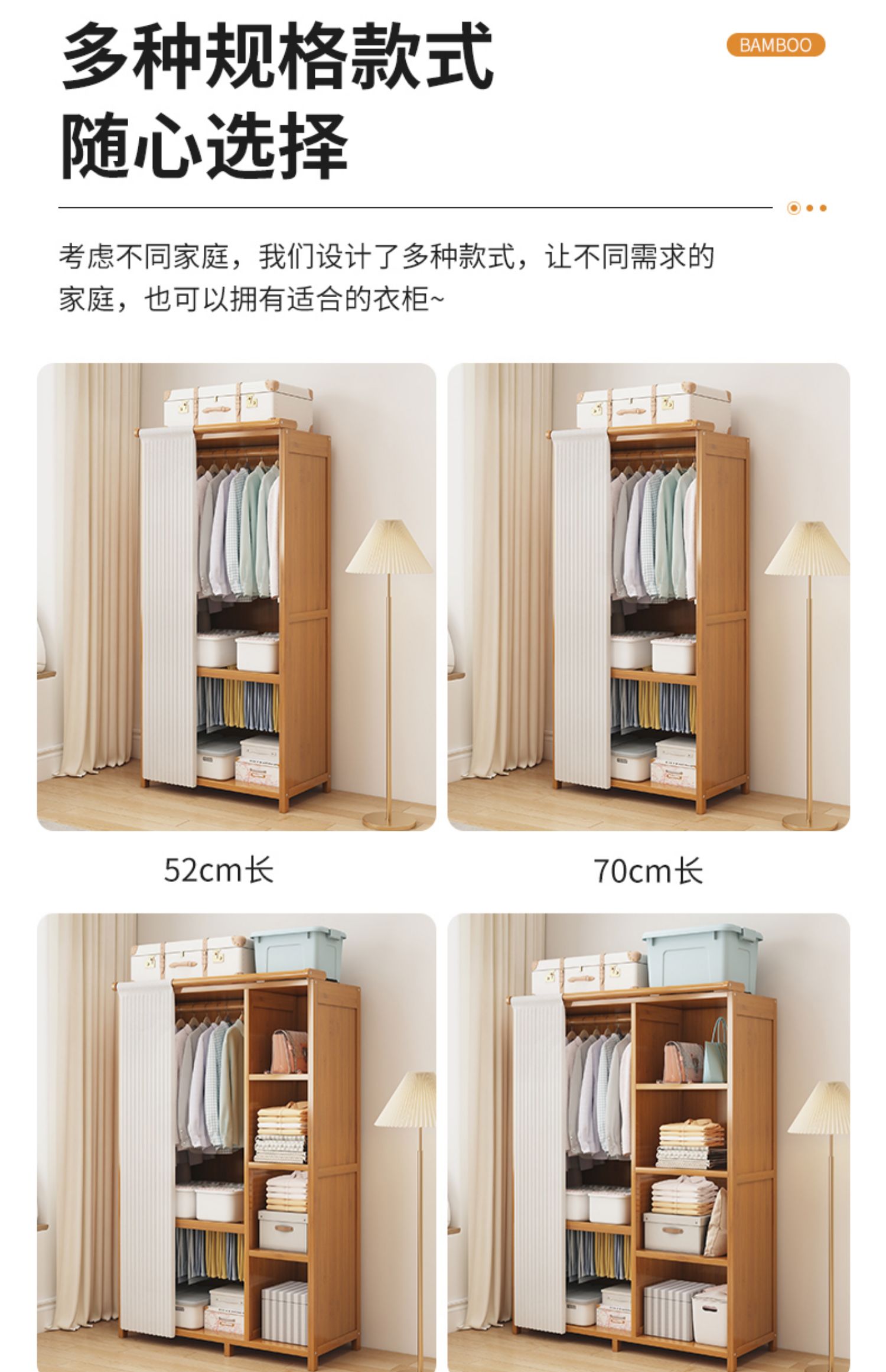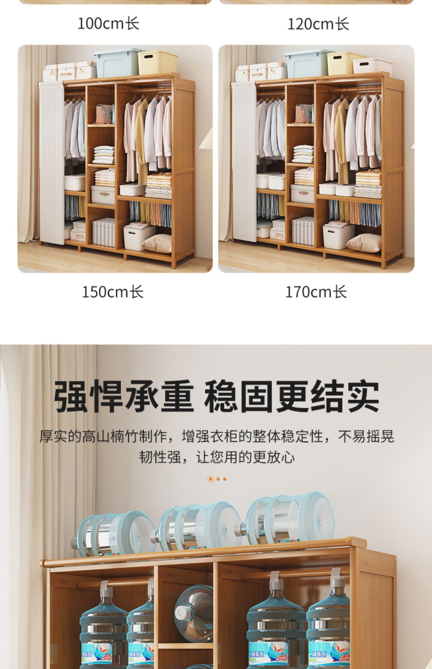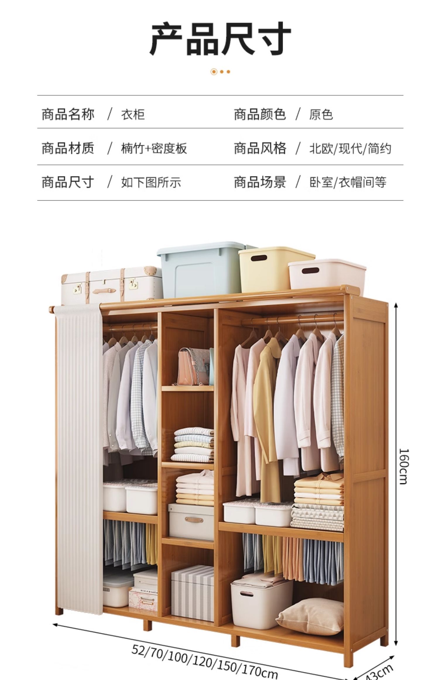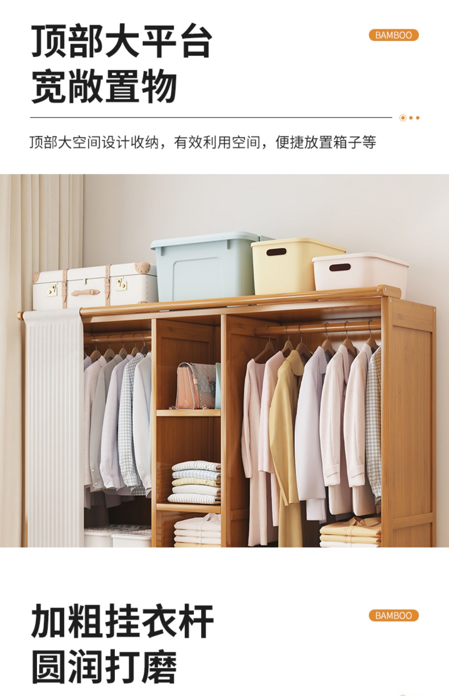 가정용 침실 옷장을 위한 간단한 단단한 나무 옷장 완전히 밀폐된 커튼 천 캐비닛 임대실 조립 두꺼운 코트 랙스토어 가기