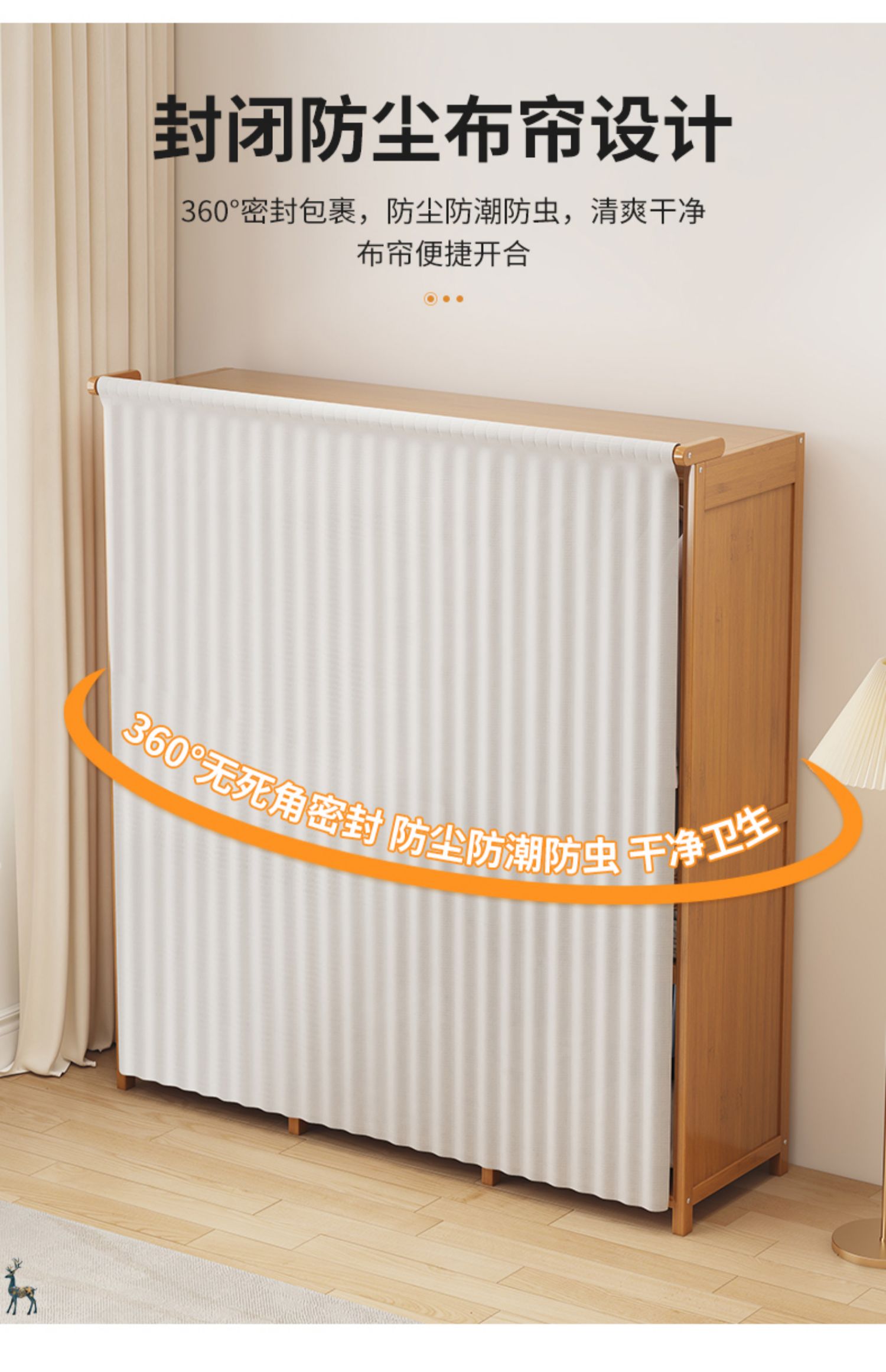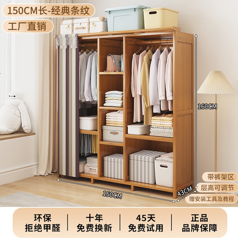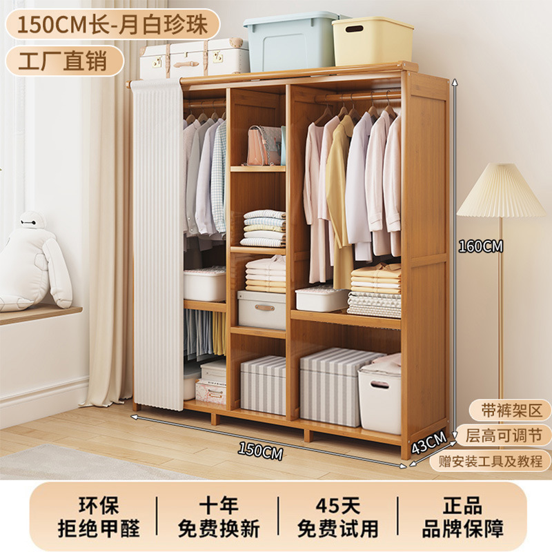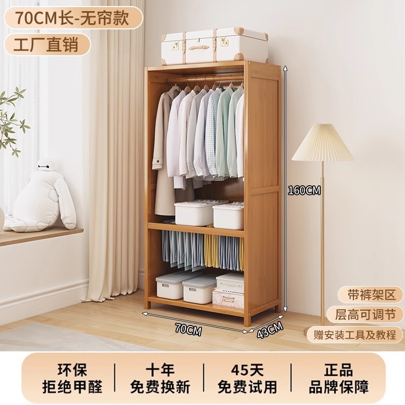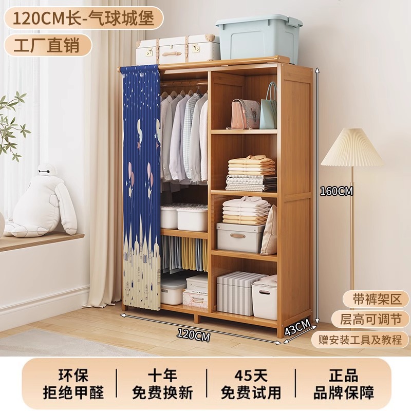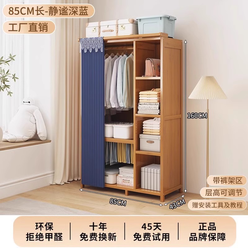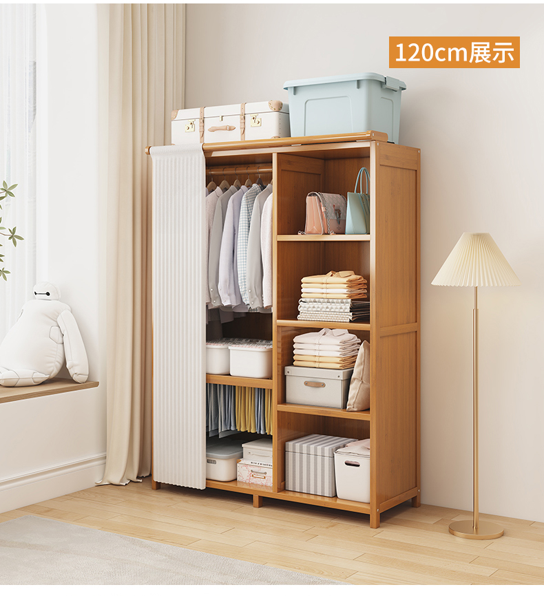 가정용 침실 옷장을 위한 간단한 단단한 나무 옷장 완전히 밀폐된 커튼 천 캐비닛 임대실 조립 두꺼운 코트 랙
