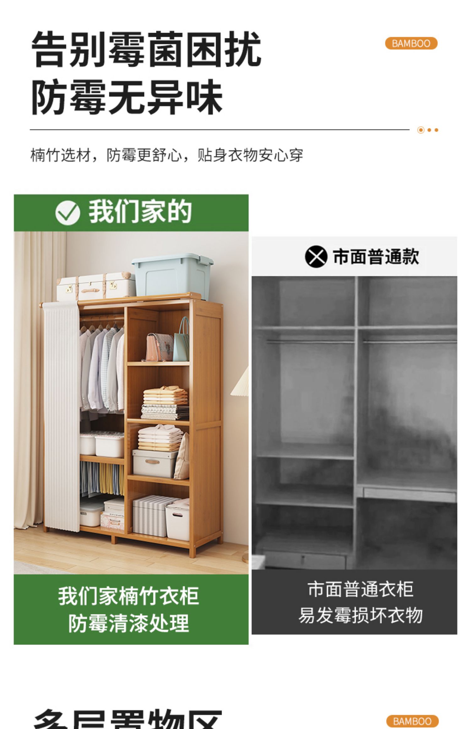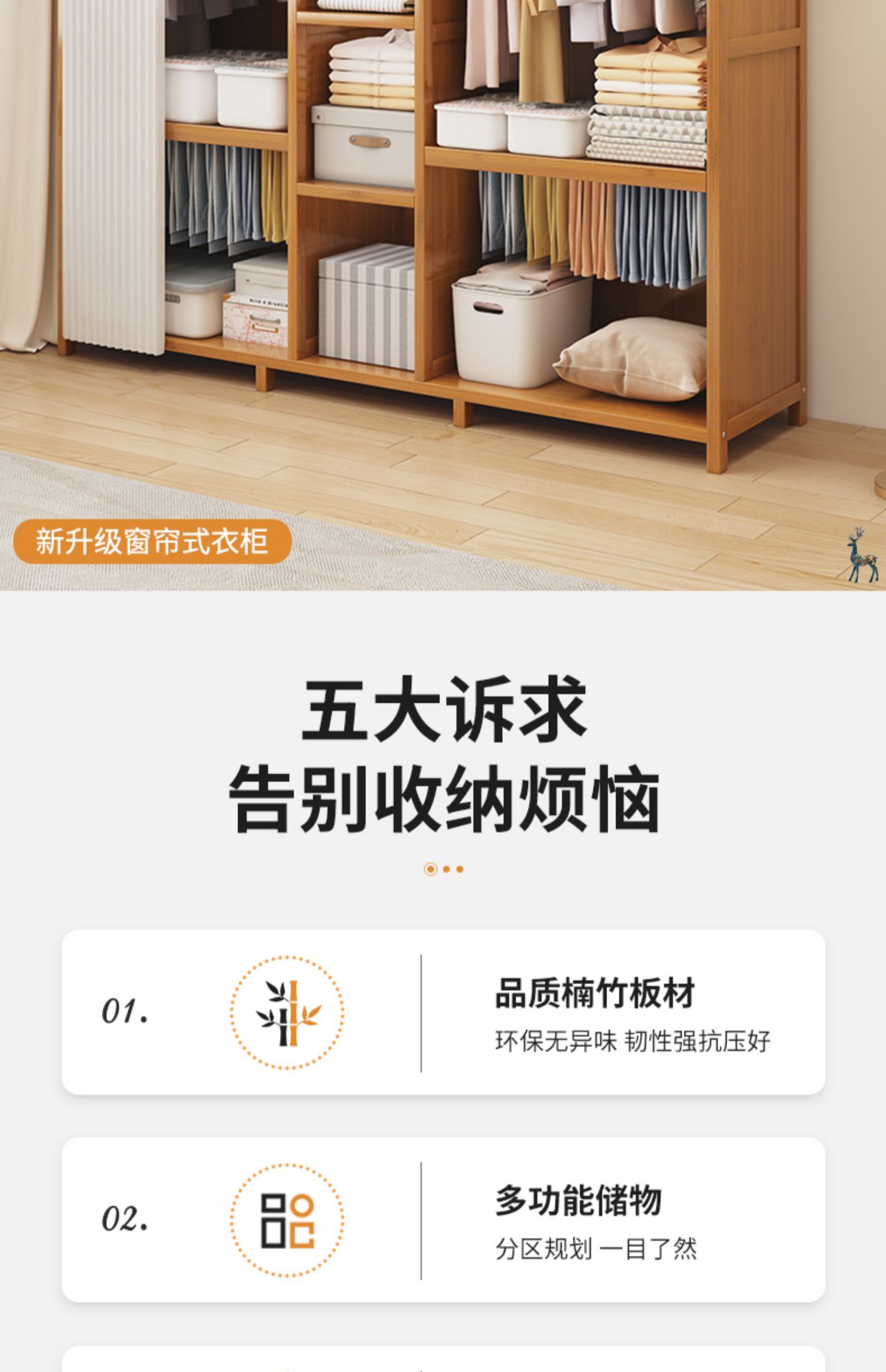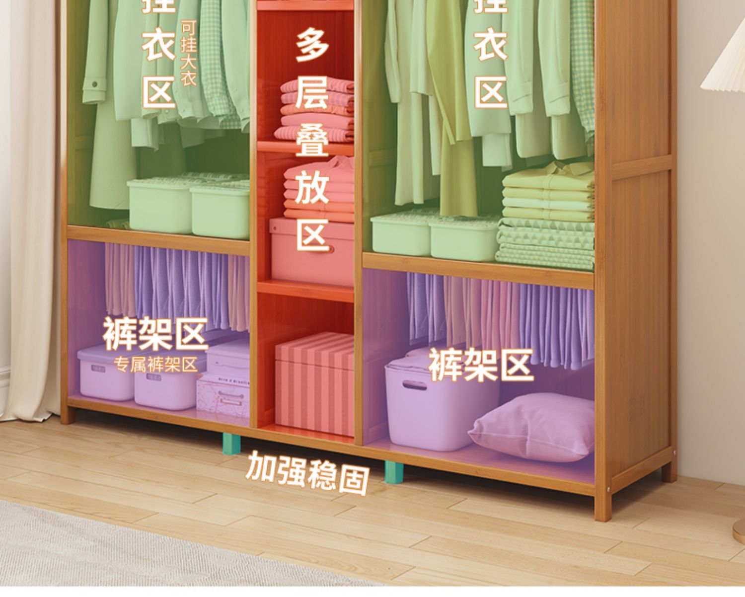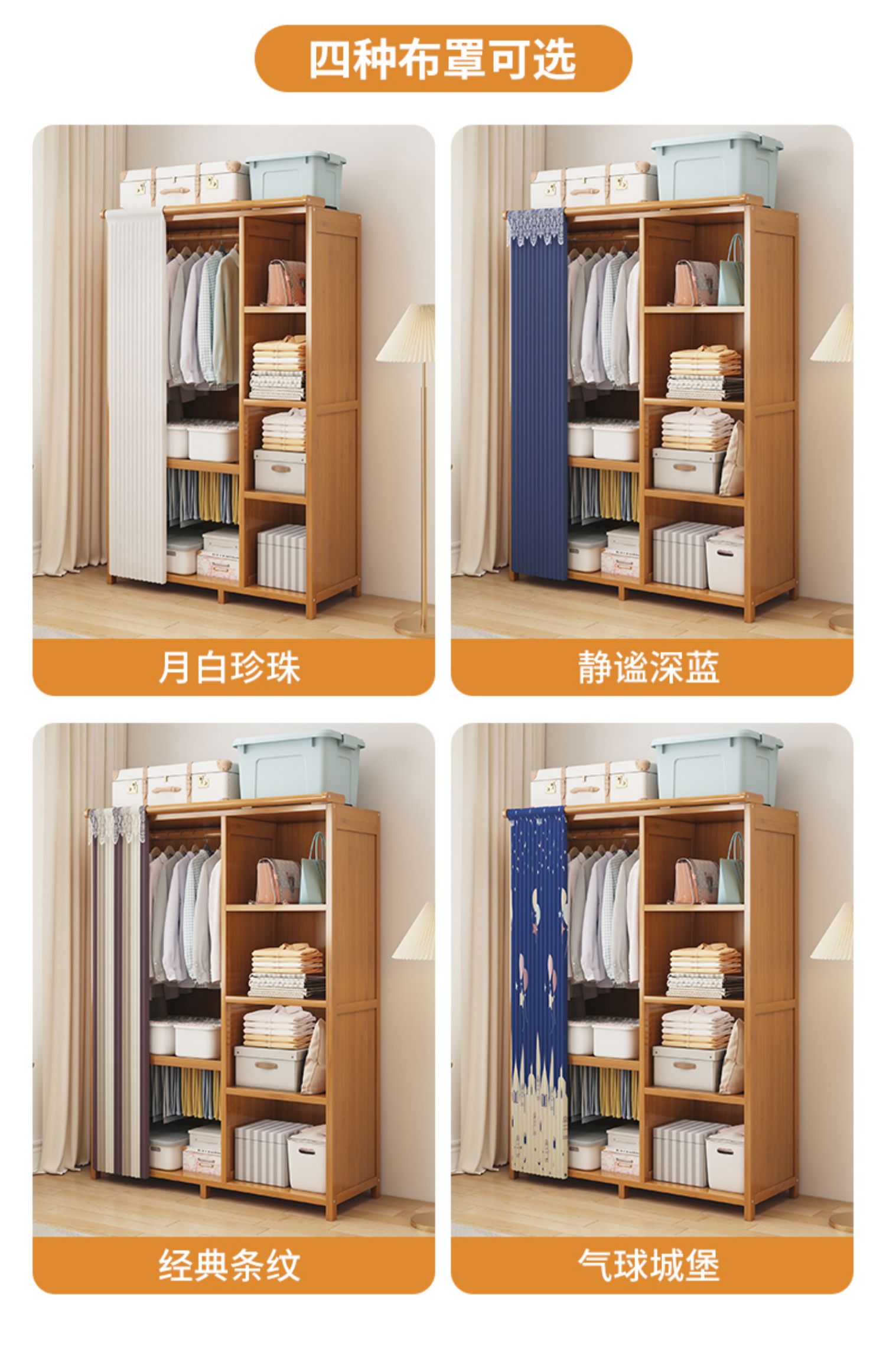 가정용 침실 옷장을 위한 간단한 단단한 나무 옷장 완전히 밀폐된 커튼 천 캐비닛 임대실 조립 두꺼운 코트 랙